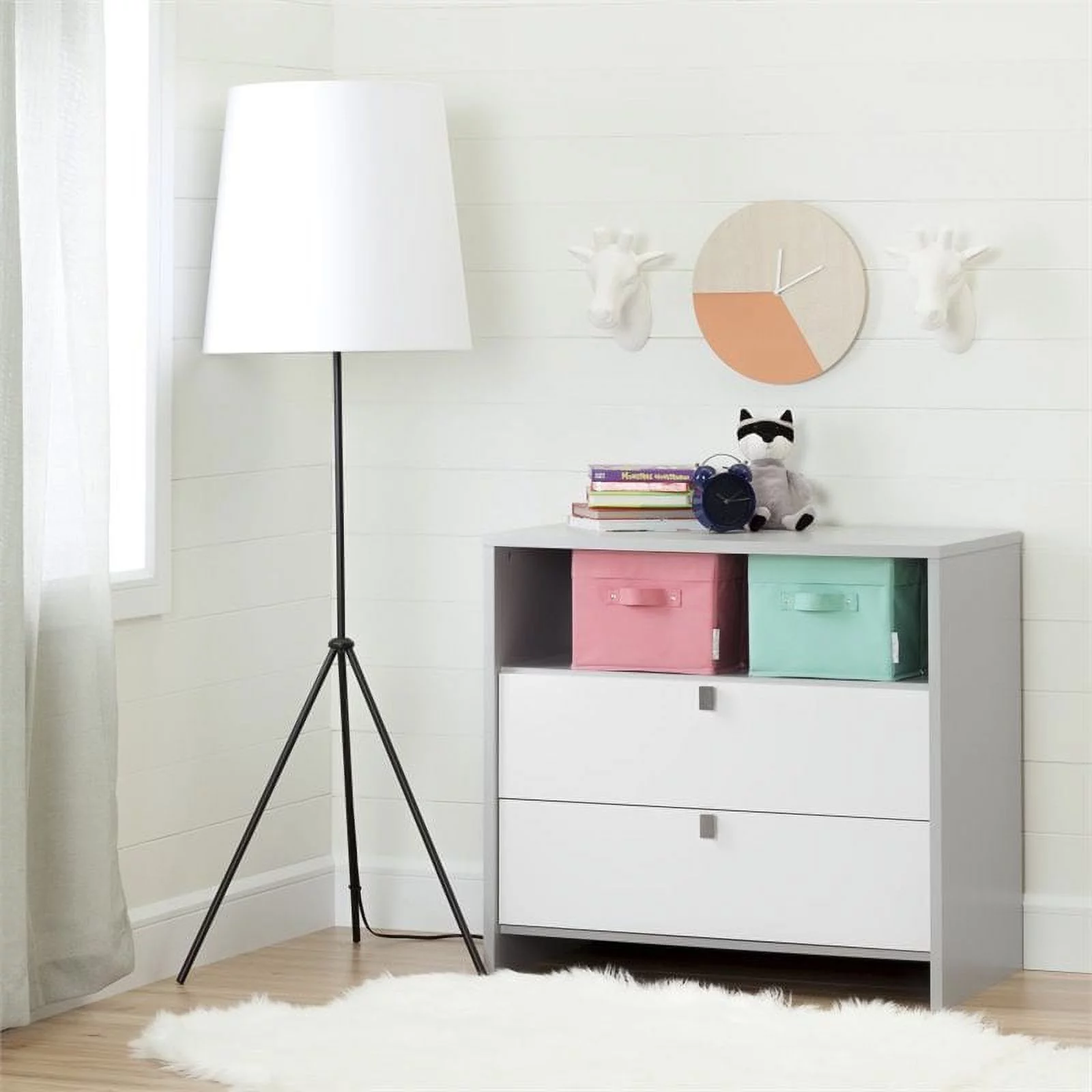 Rosebery Kids Contemporary 2 Drawer Changing Table in Soft Gray and White