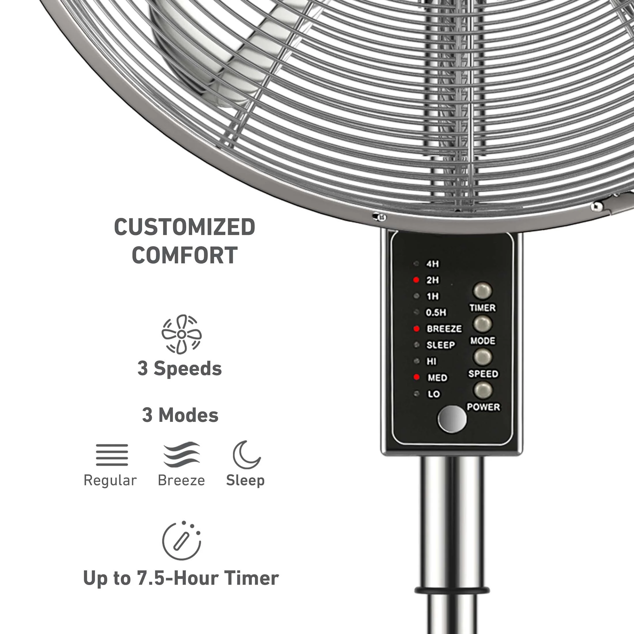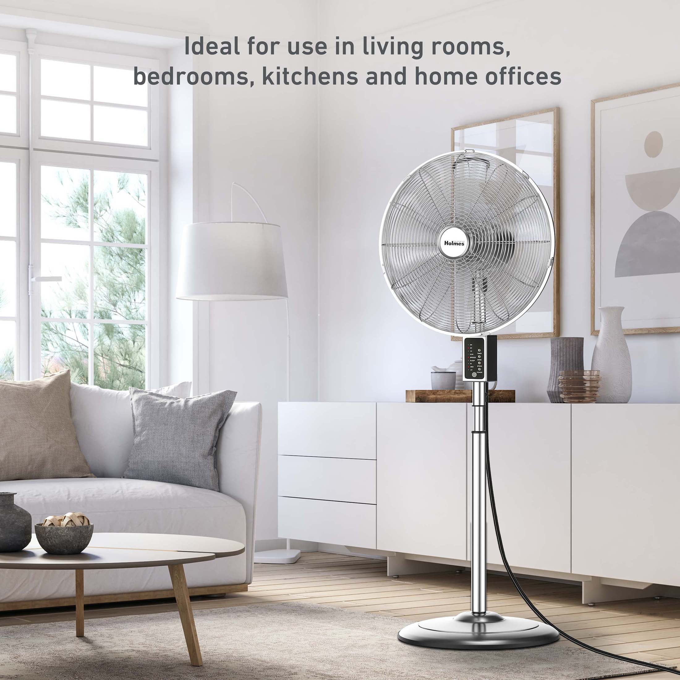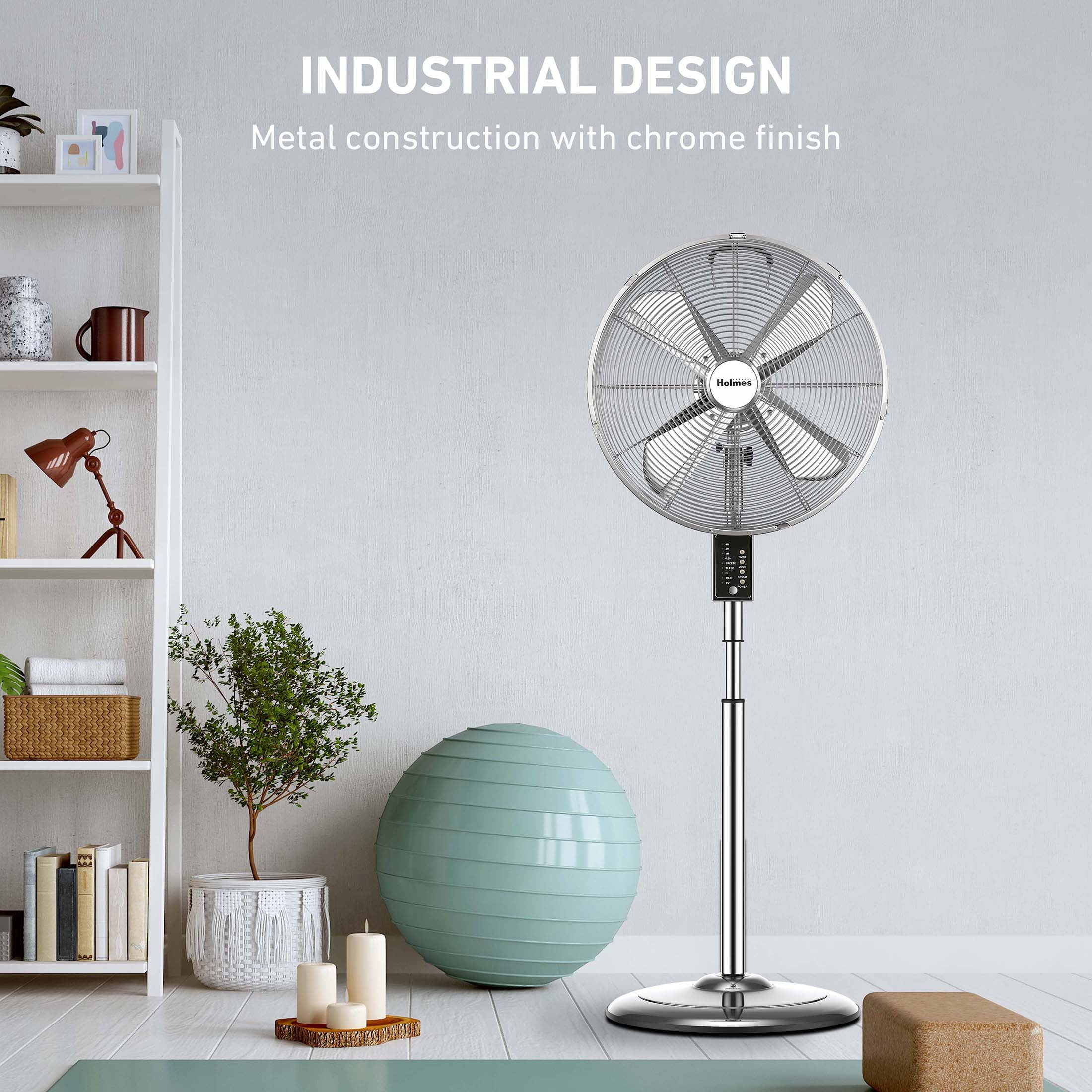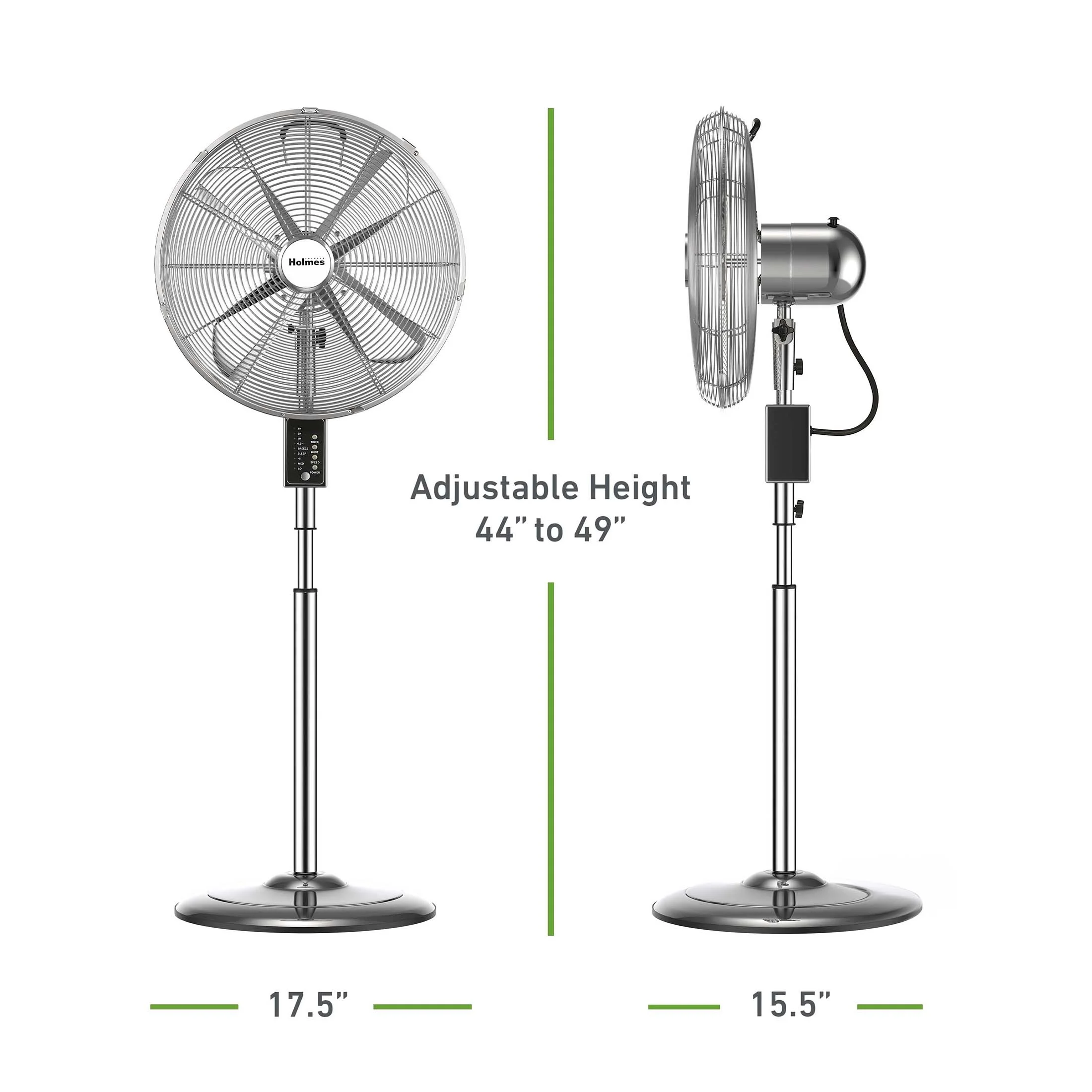 Holmes 16" Digital Oscillating Metal Stand Fan, 3 Speeds, Remote Control, Chrome