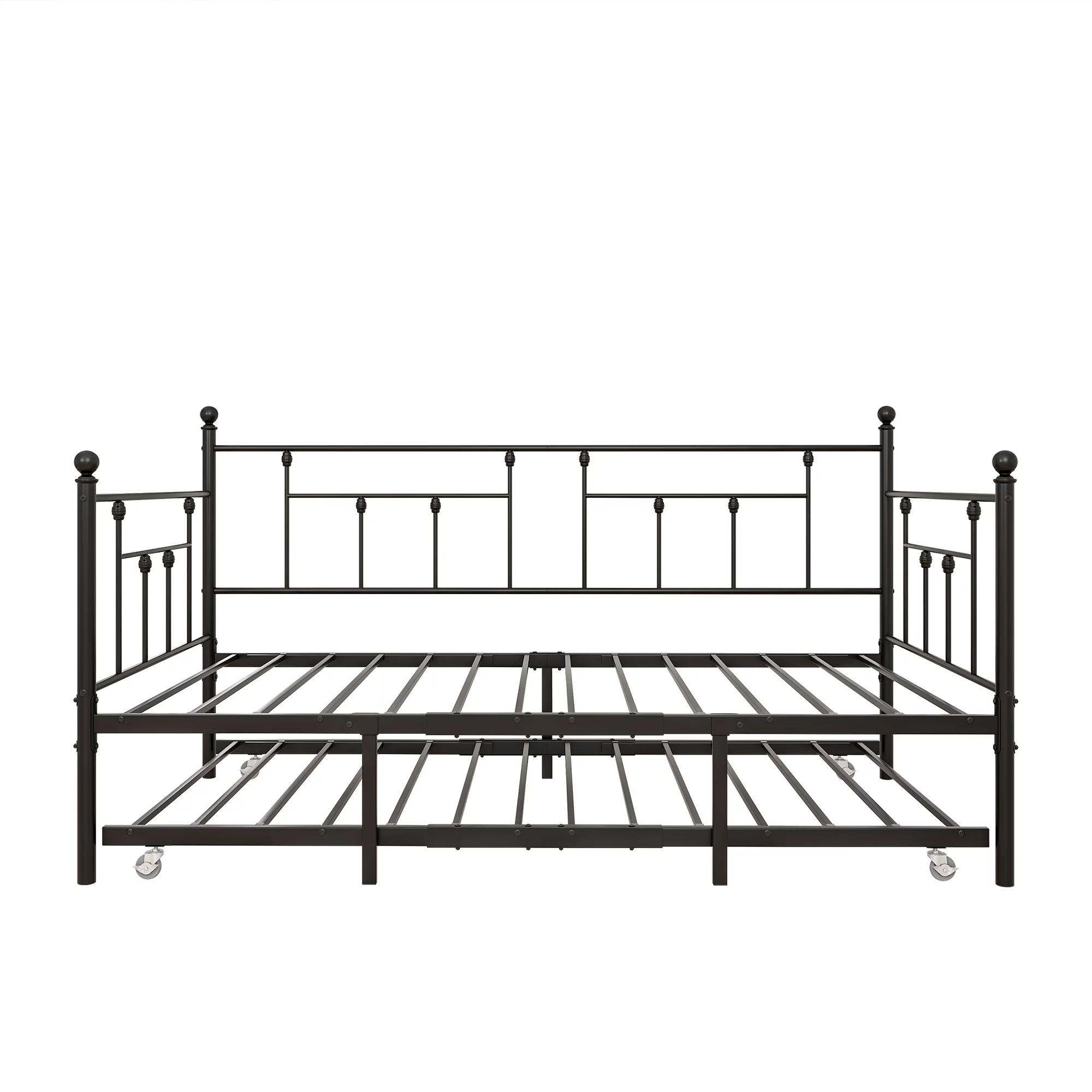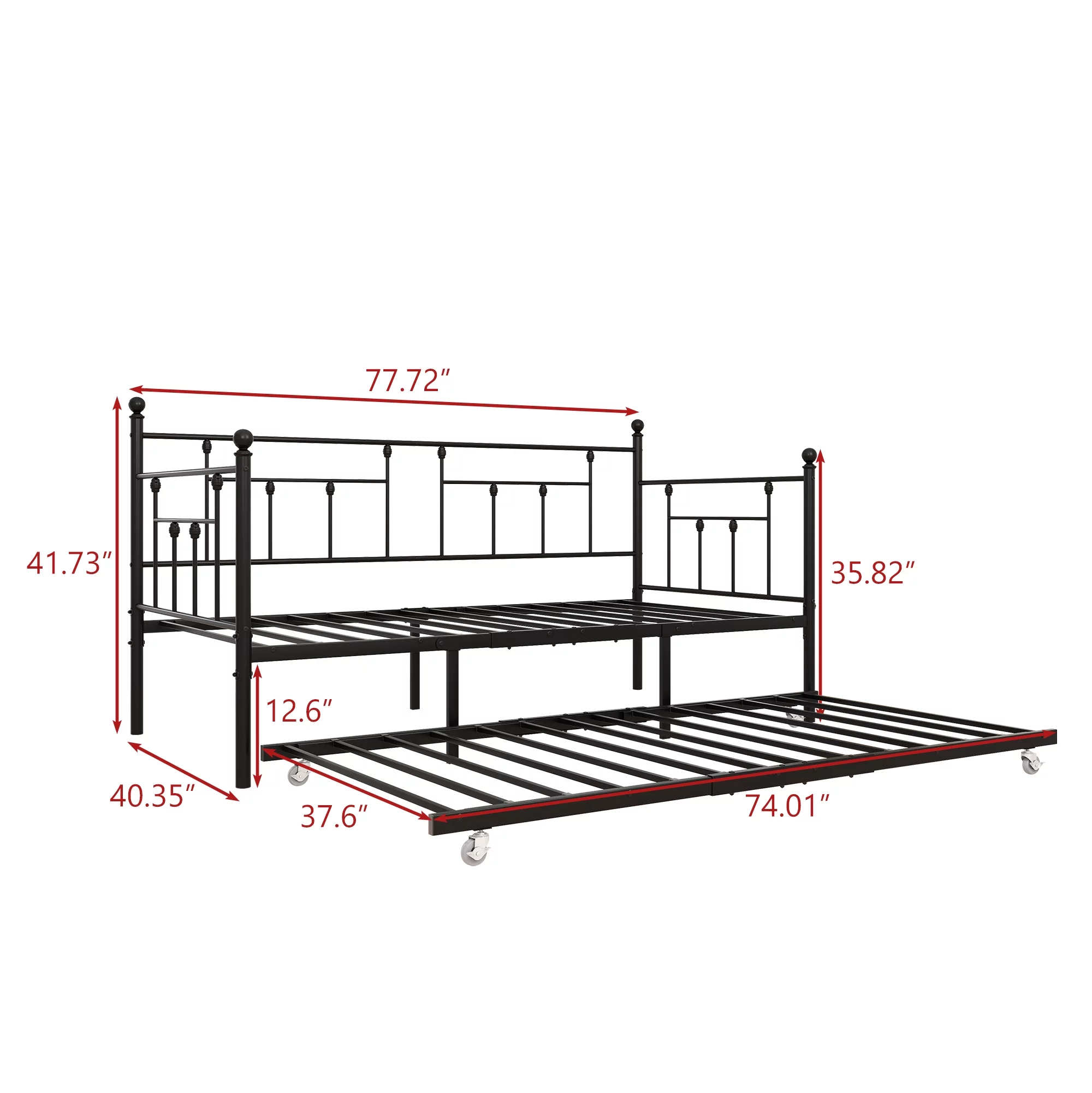 CQSXDA Metal Daybed Frame Twin Size Platform with trundle , No Box Spring Needed Black