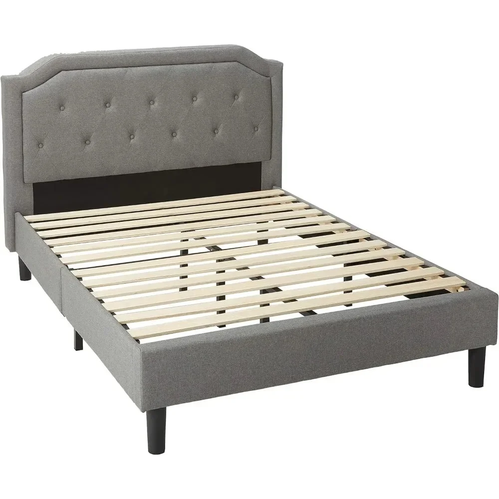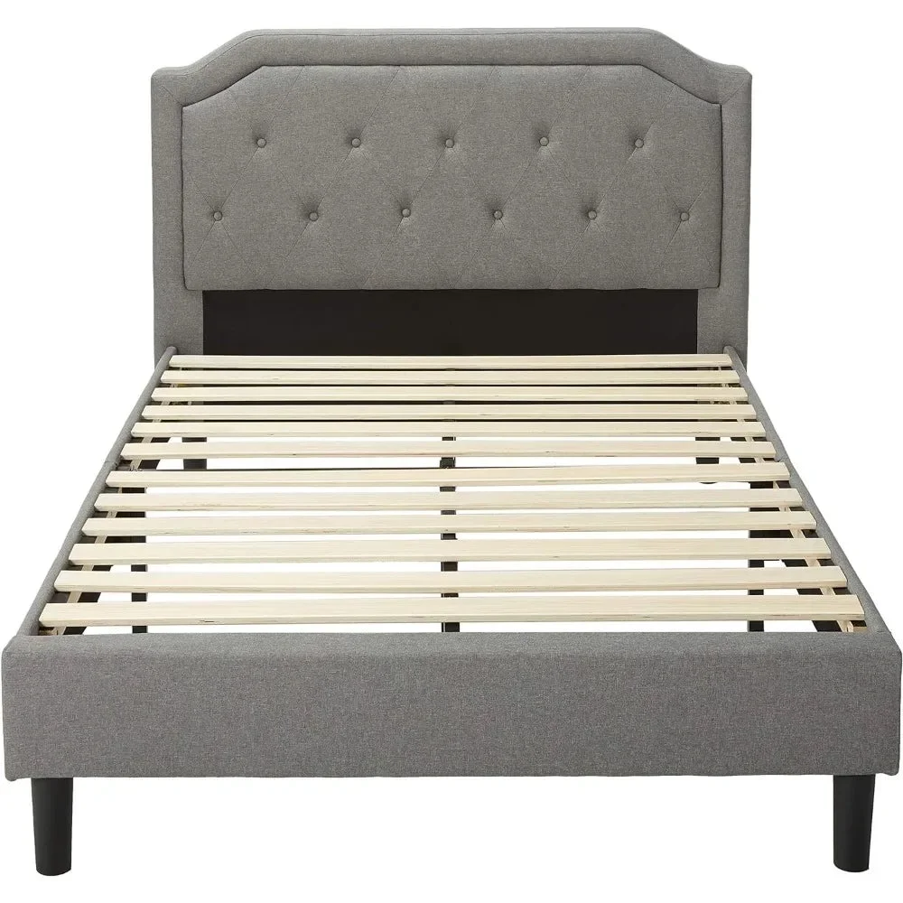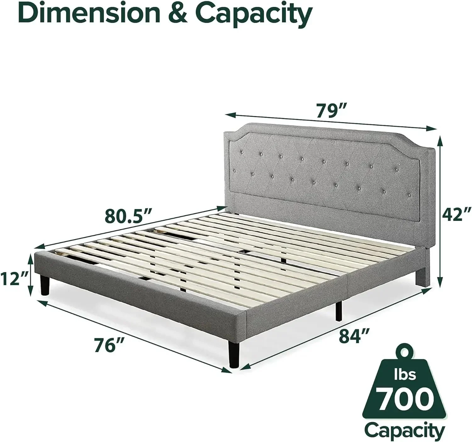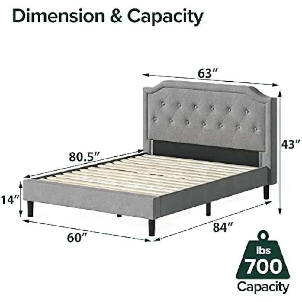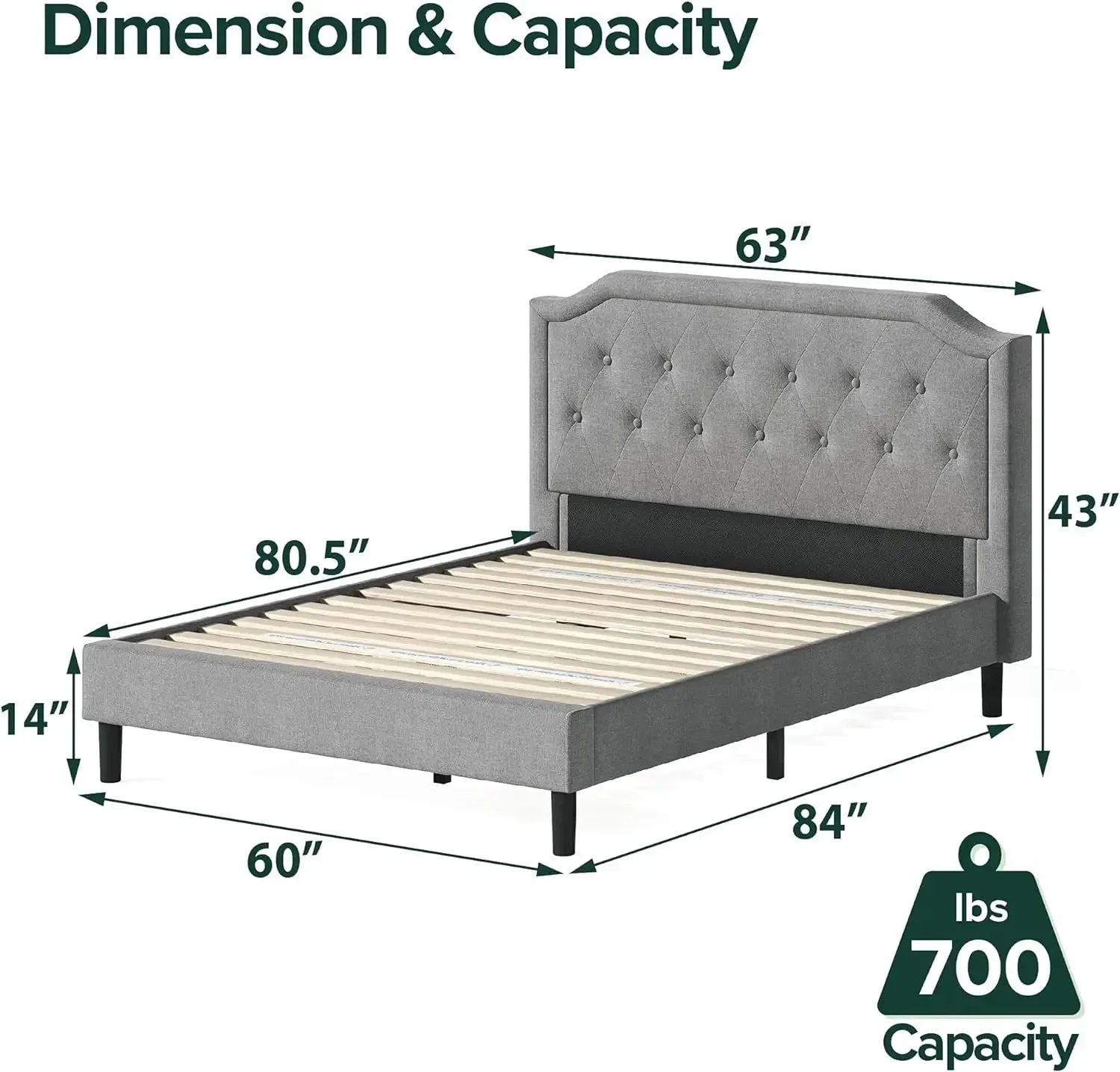 Upholstered Scalloped Platform Bed Frame / Mattress Foundation / Wood Slat Support / No Box Spring Needed / Easy Assembly