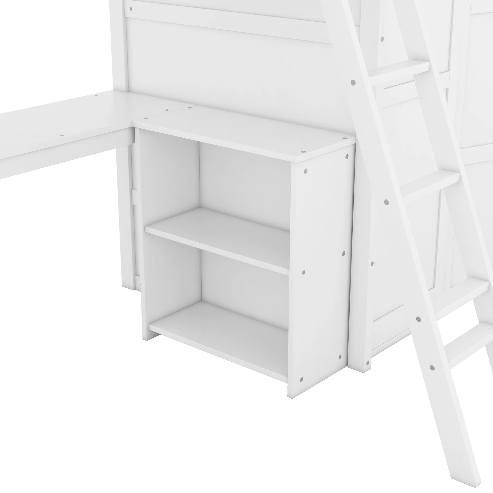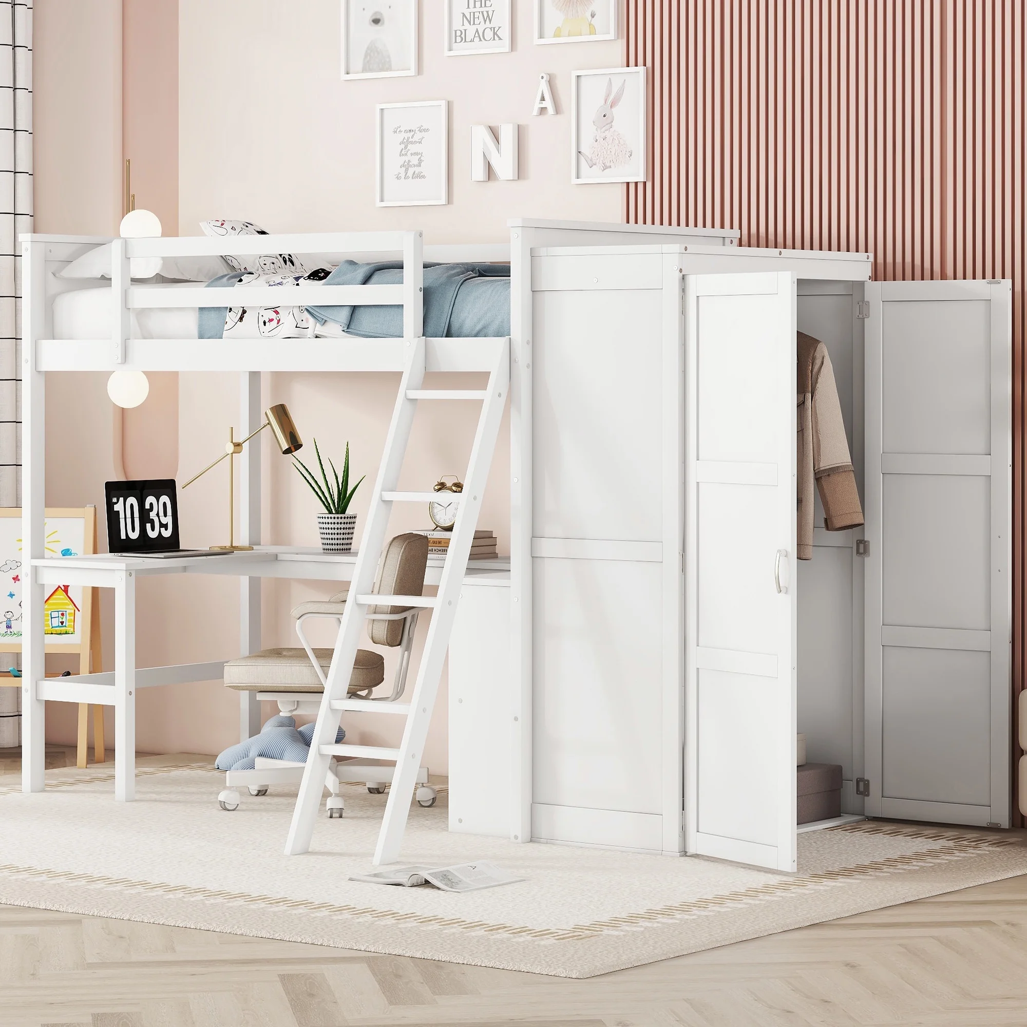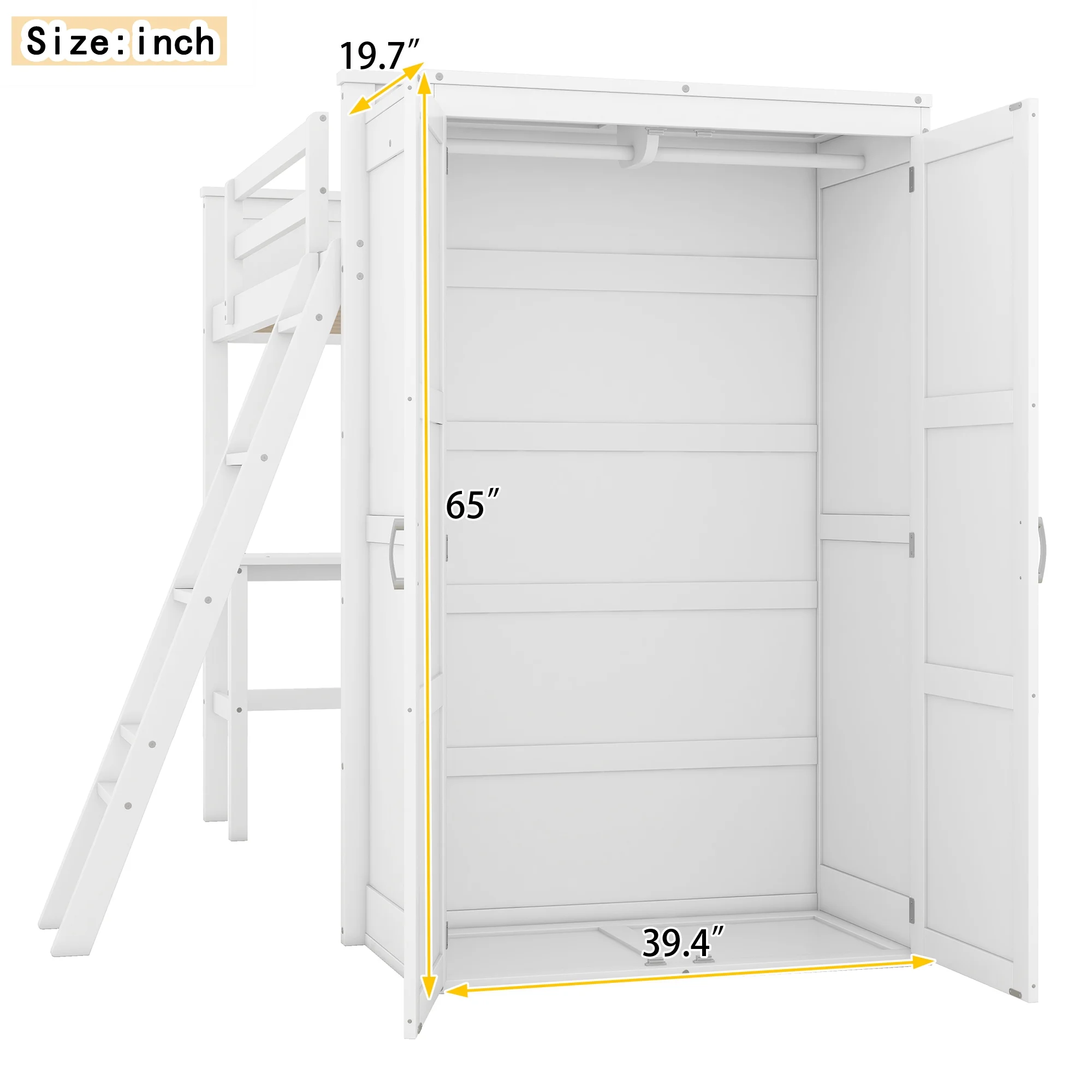 Size Loft Bed With Desk, Woode Loft Bed Frame With Shelves Ad Wardrobe, White