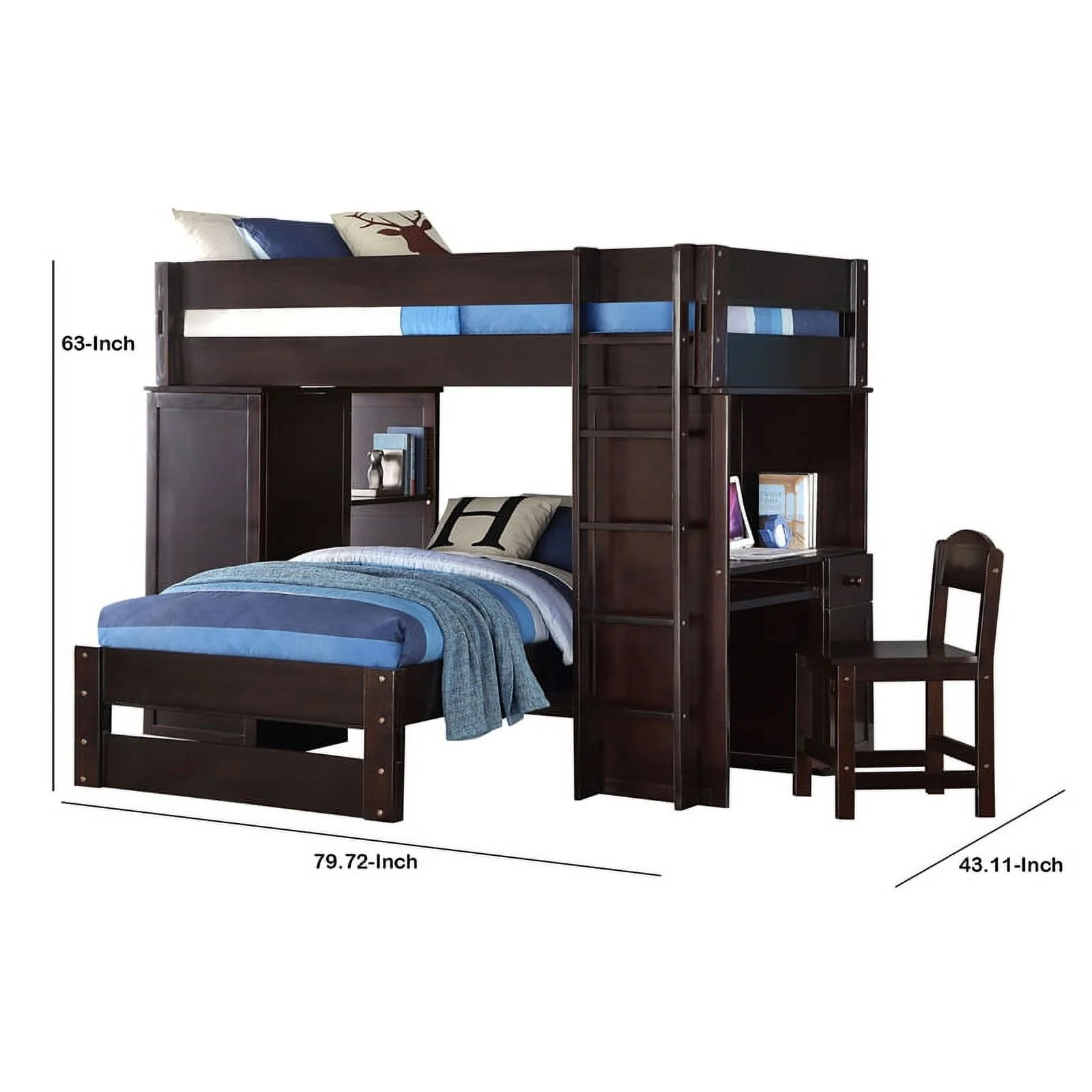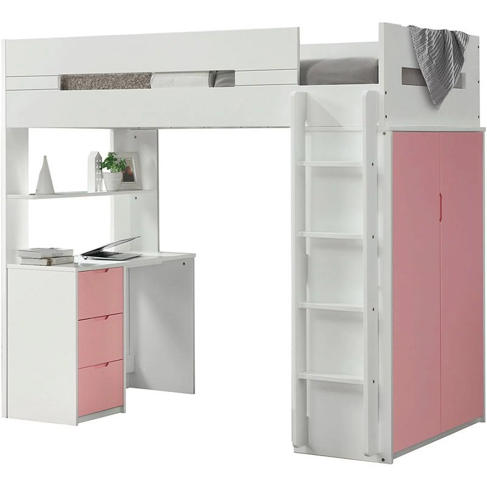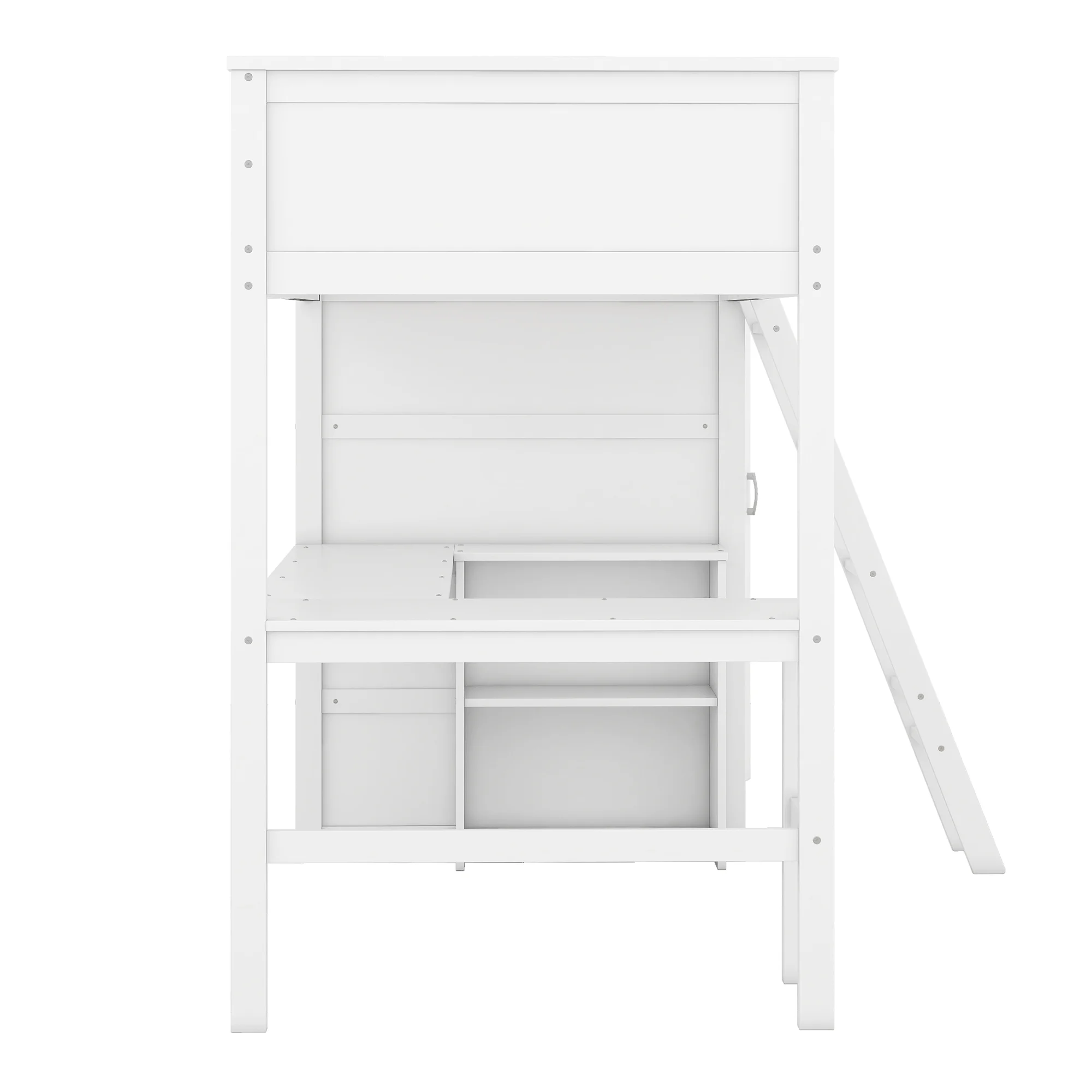 Size Loft Bed With Desk, Woode Loft Bed Frame With Shelves Ad Wardrobe, White