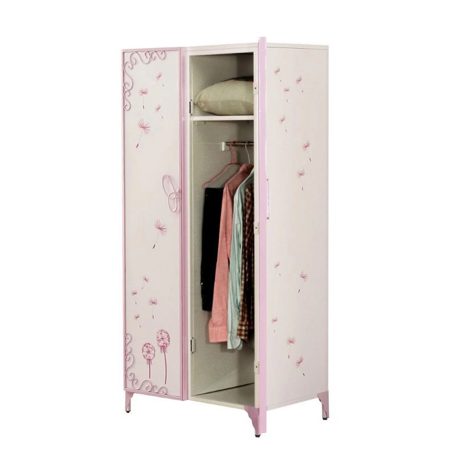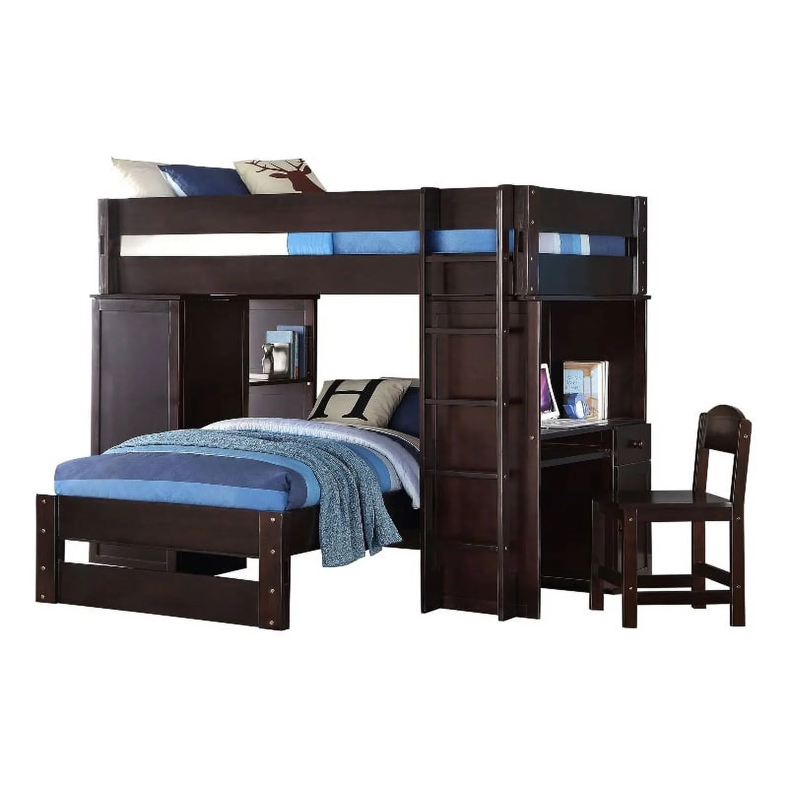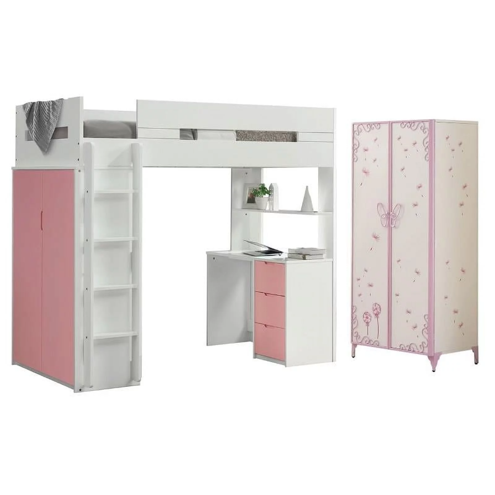 Home Square 2-Piece Set with Kids Wardrobe Armoire and Twin Storage Loft Bed