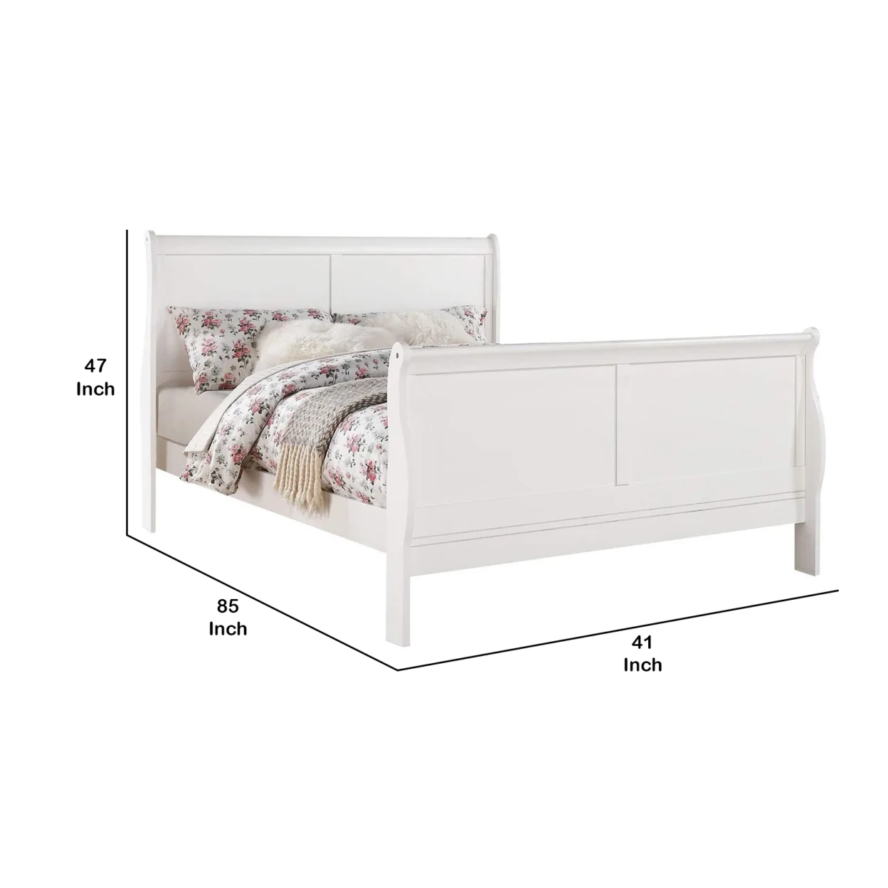 Transitional Panel Design Sleigh Twin Size Bed, White- Saltoro Sherpi