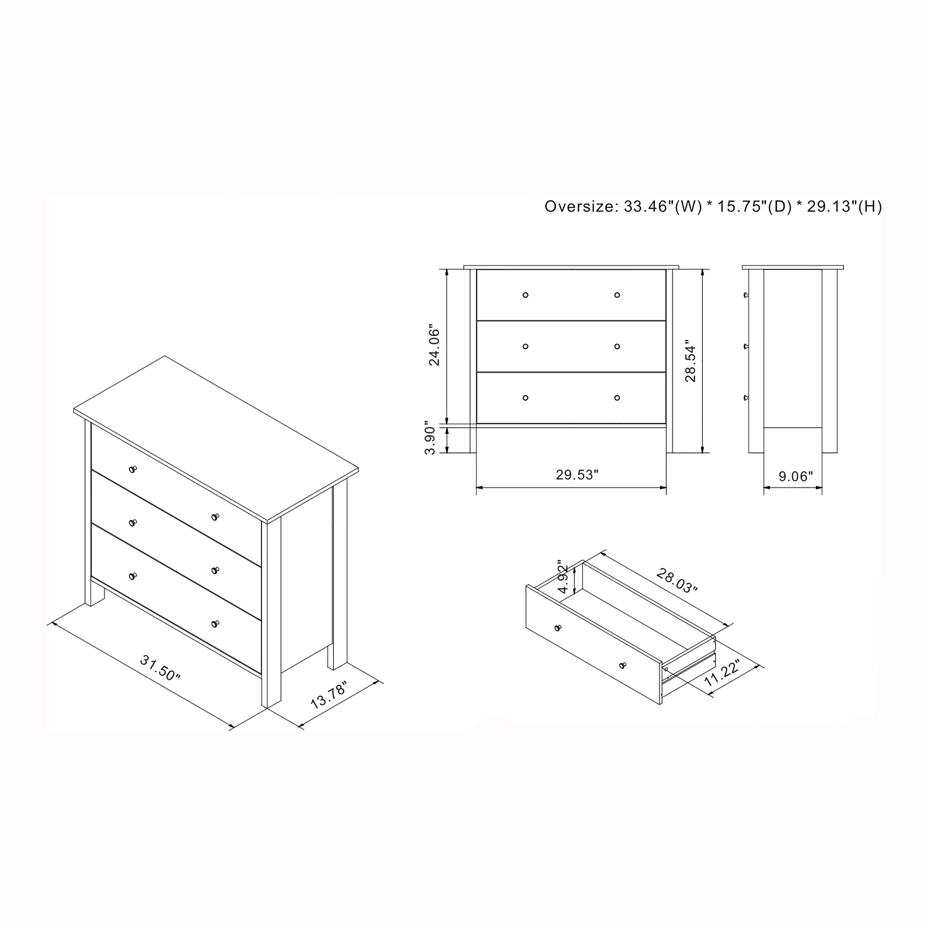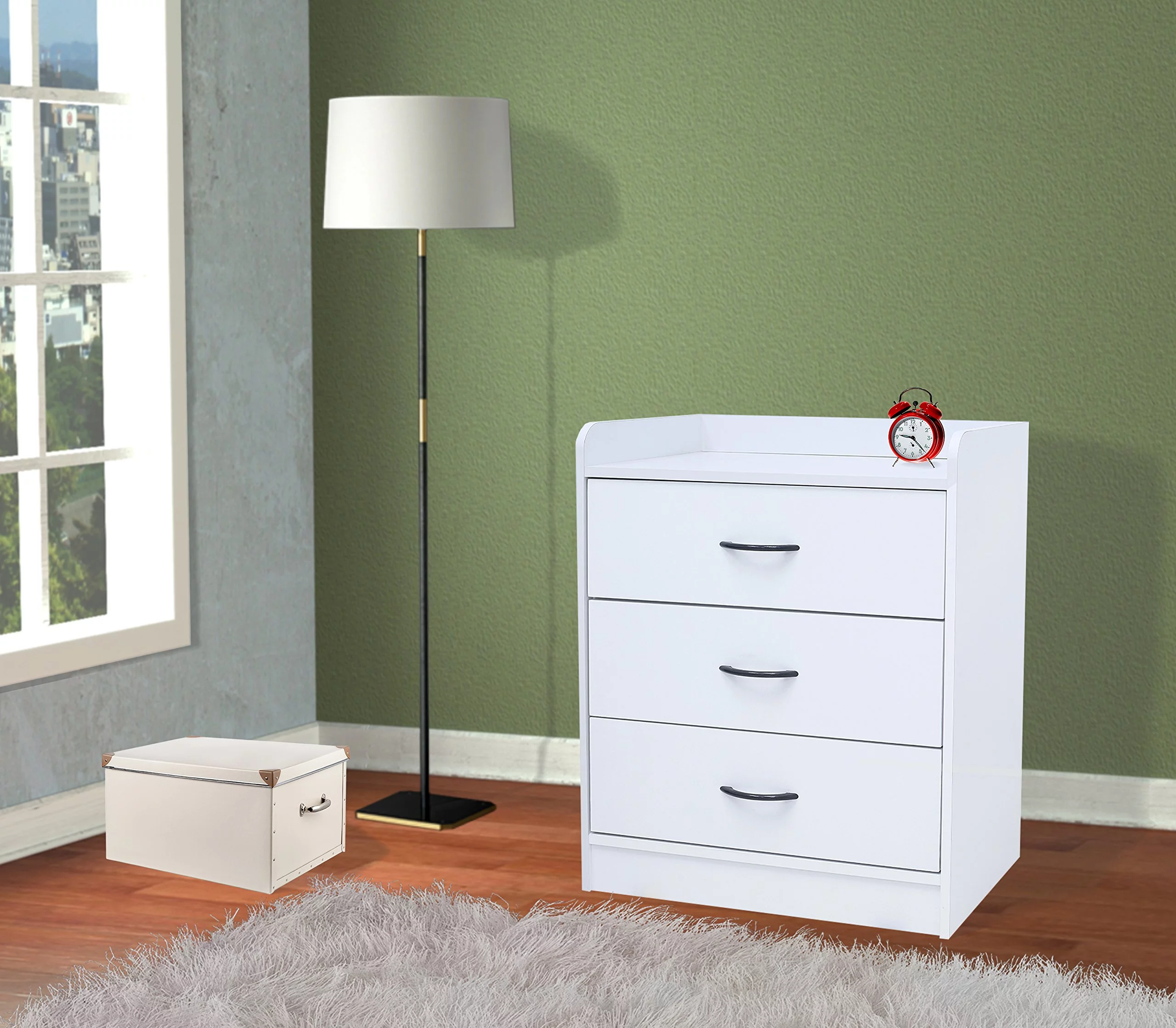 Kings Brand Furniture Simple Wood Chest with 3 Drawers & Top Lip, White
