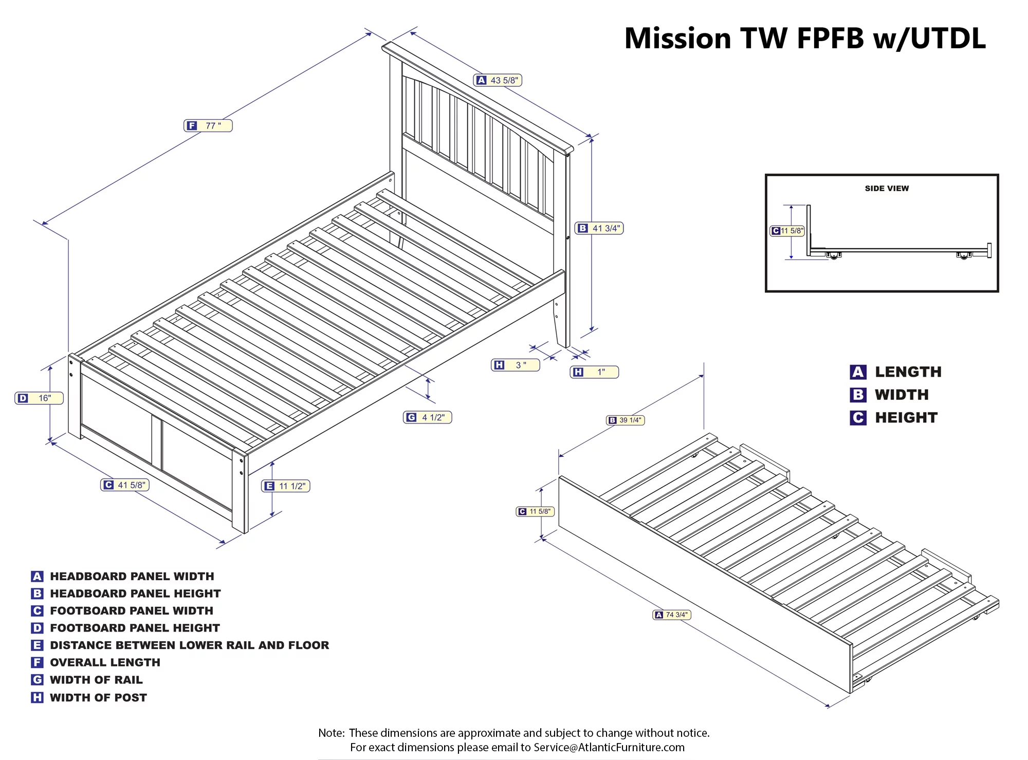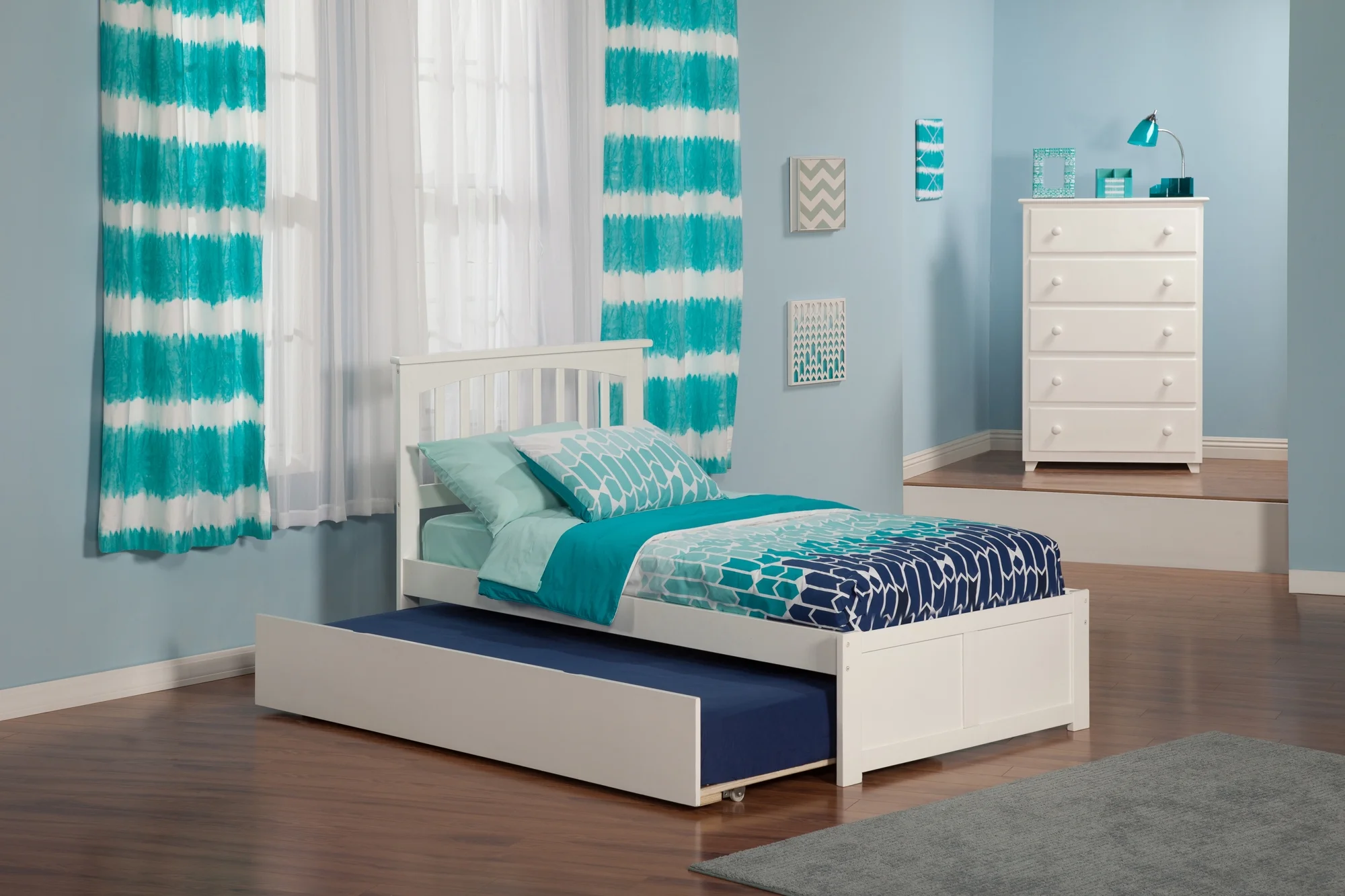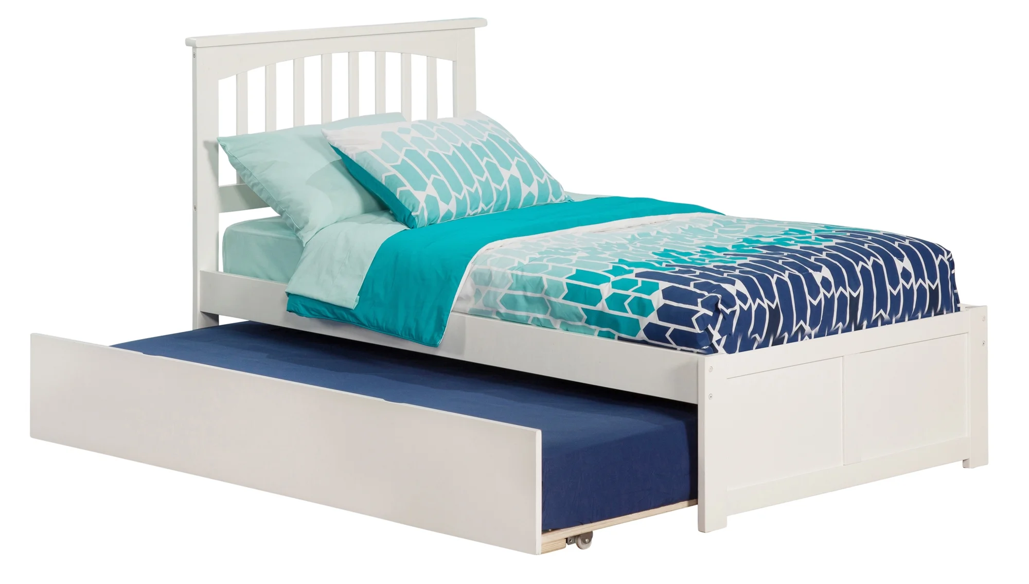 Mission Platform Bed with Flat Panel Foot Board and Twin Size Urban Trundle Bed in, Multiple Colors and Sizes