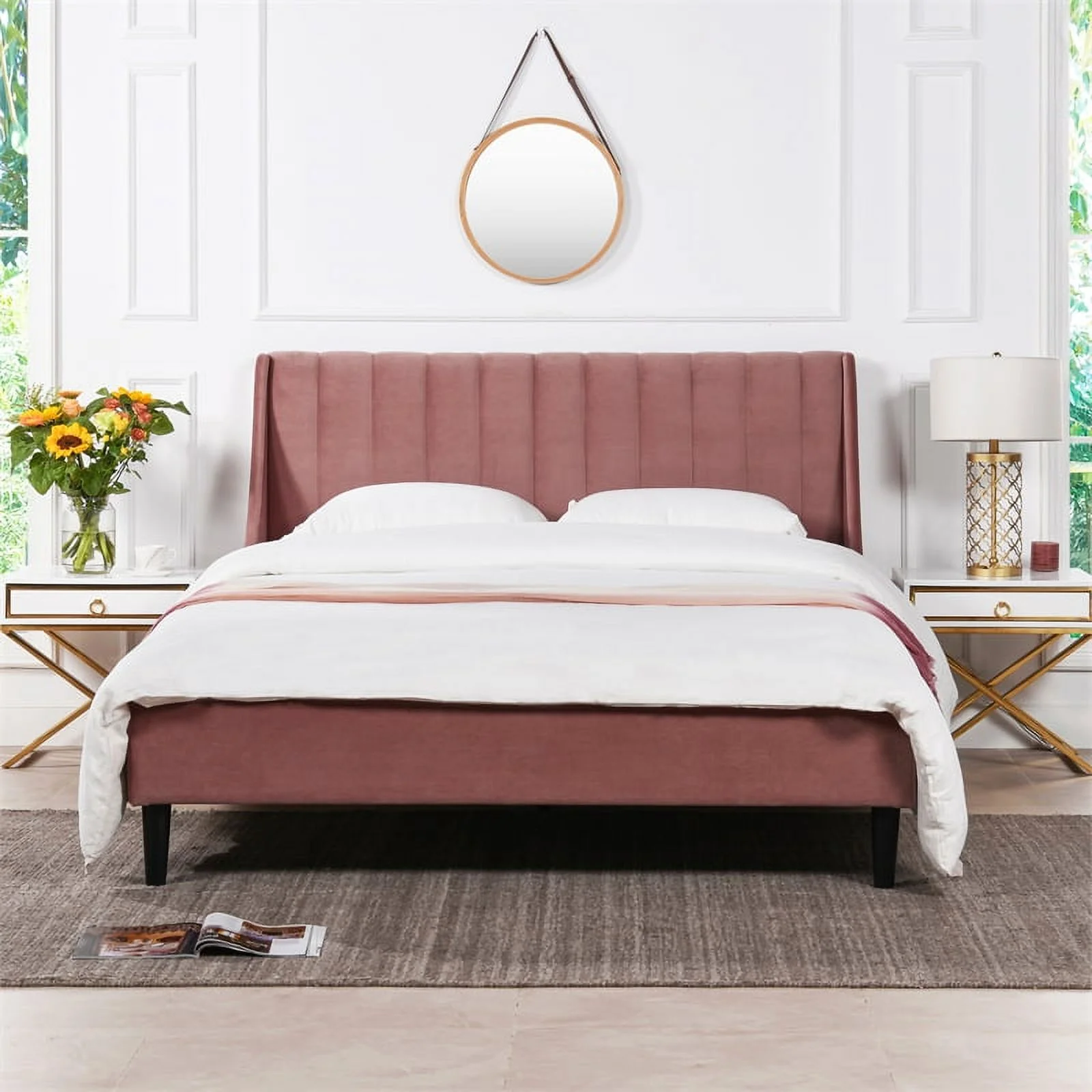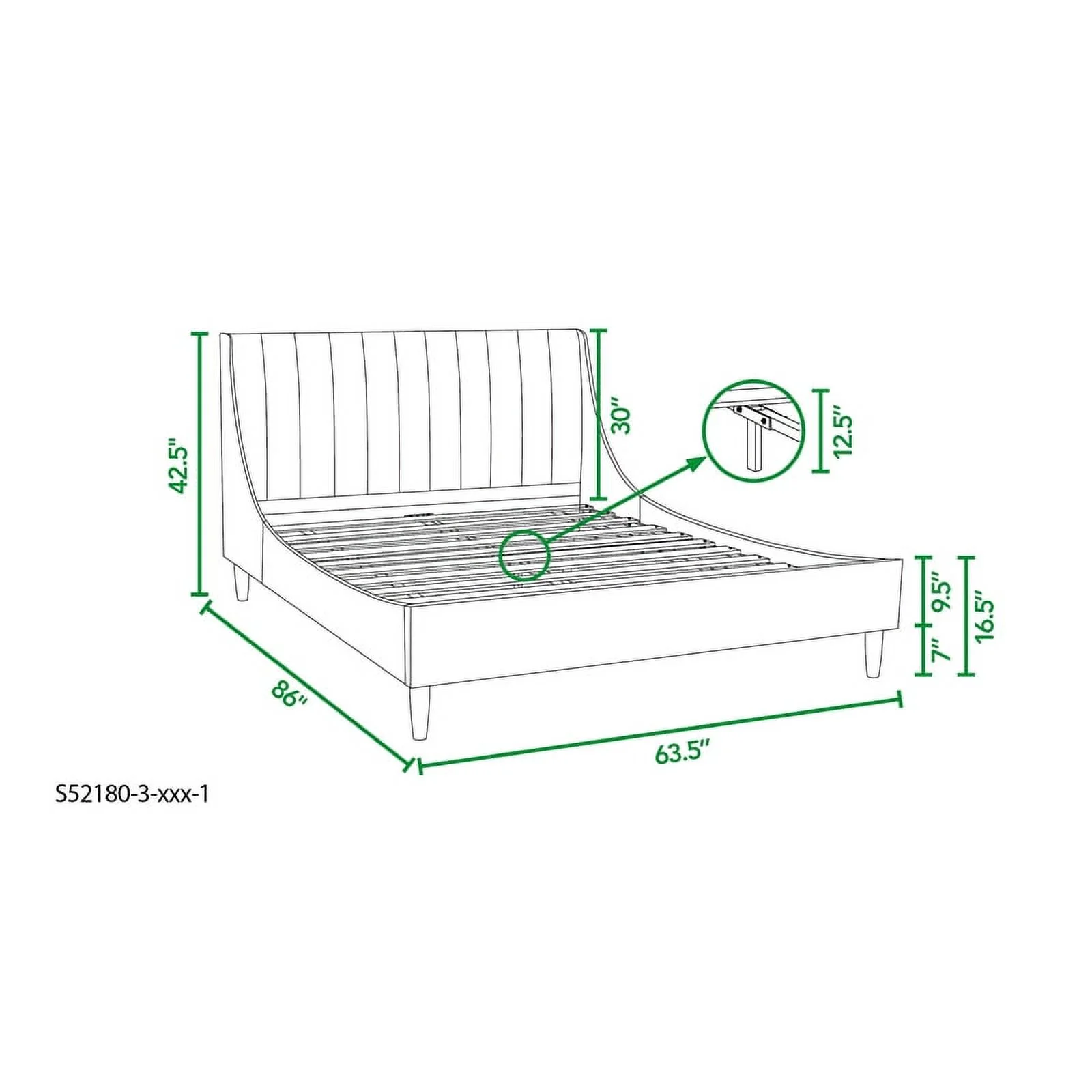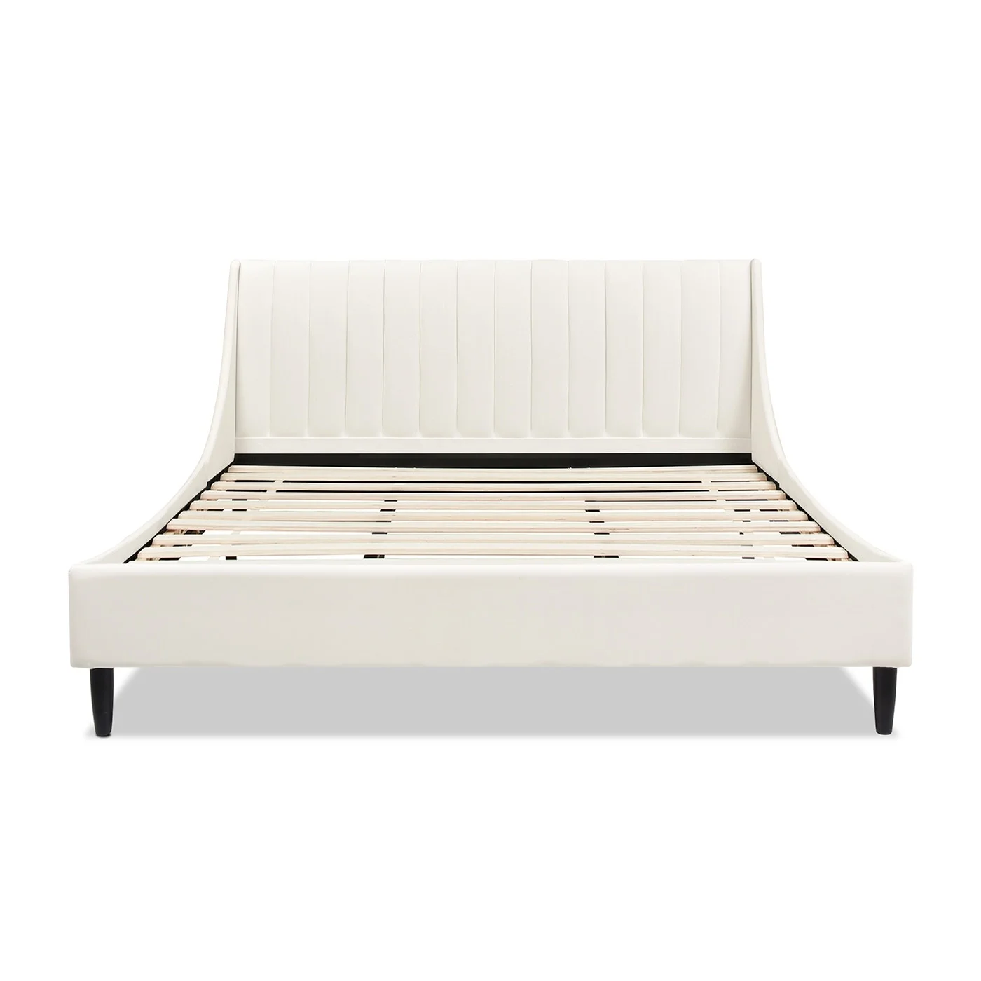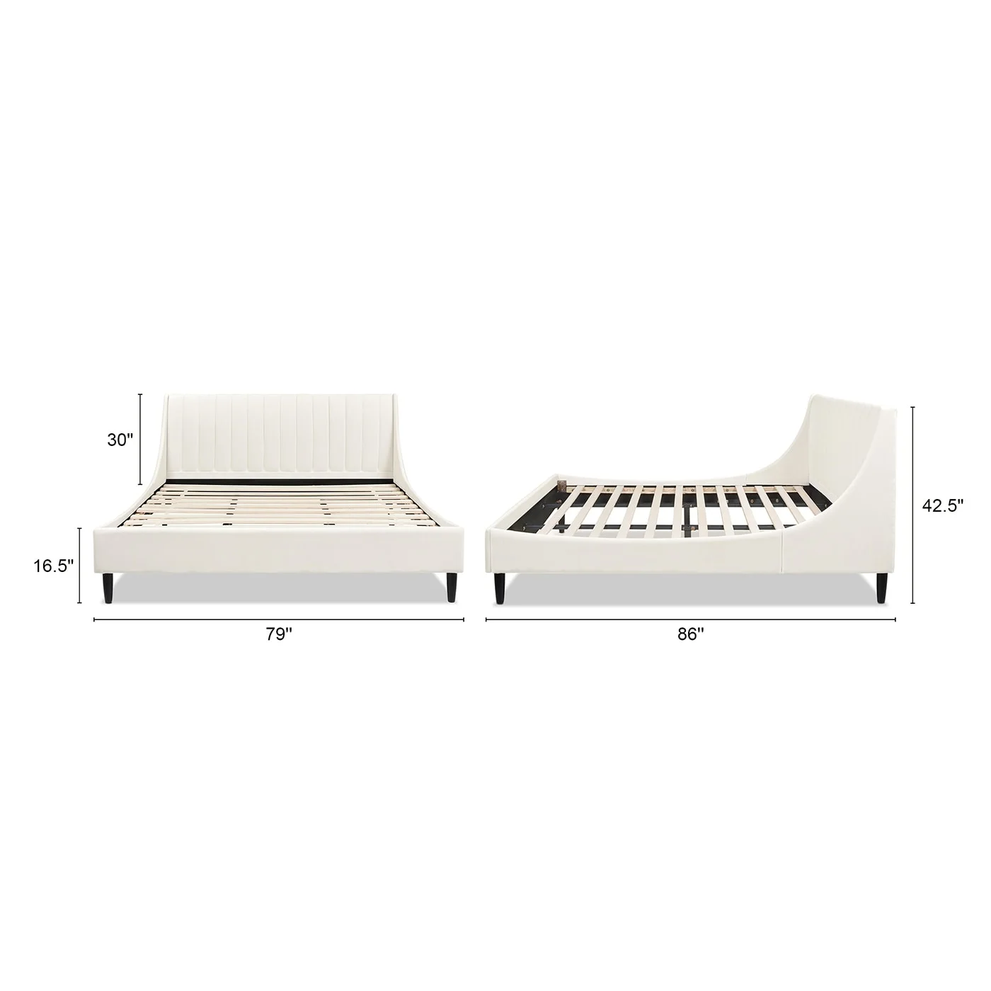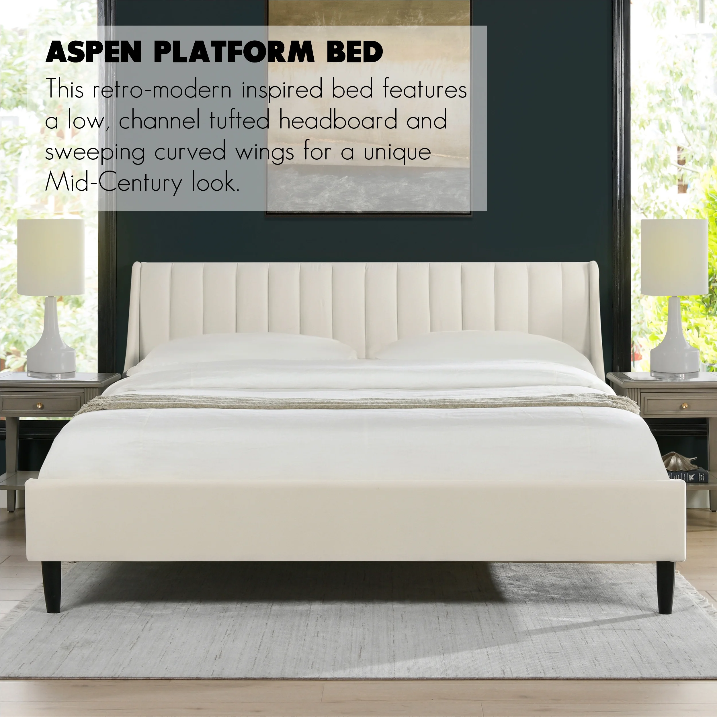 Aspen Vertical Tufted Headboard Platform Bed Set King Cloud White Velvet