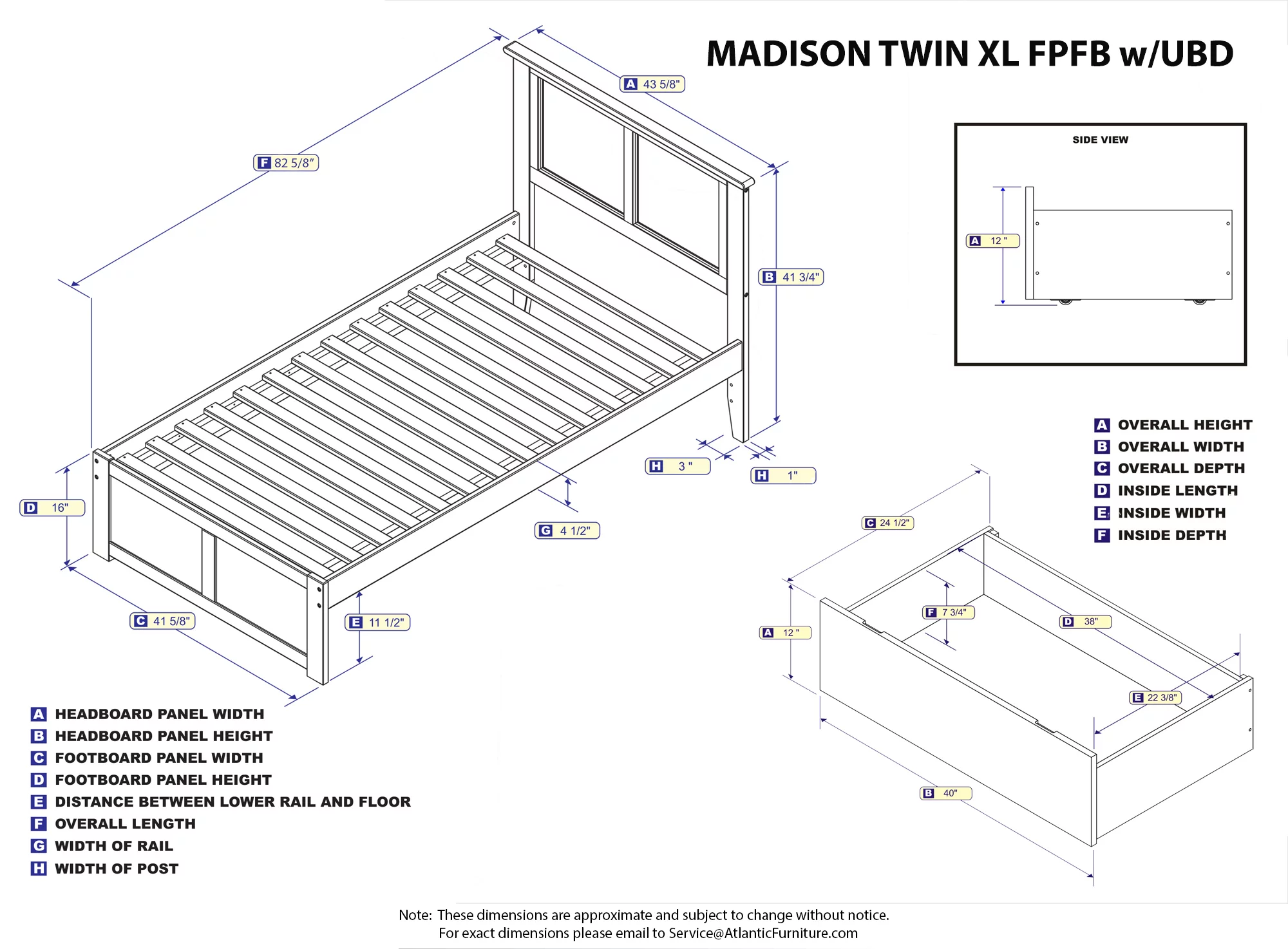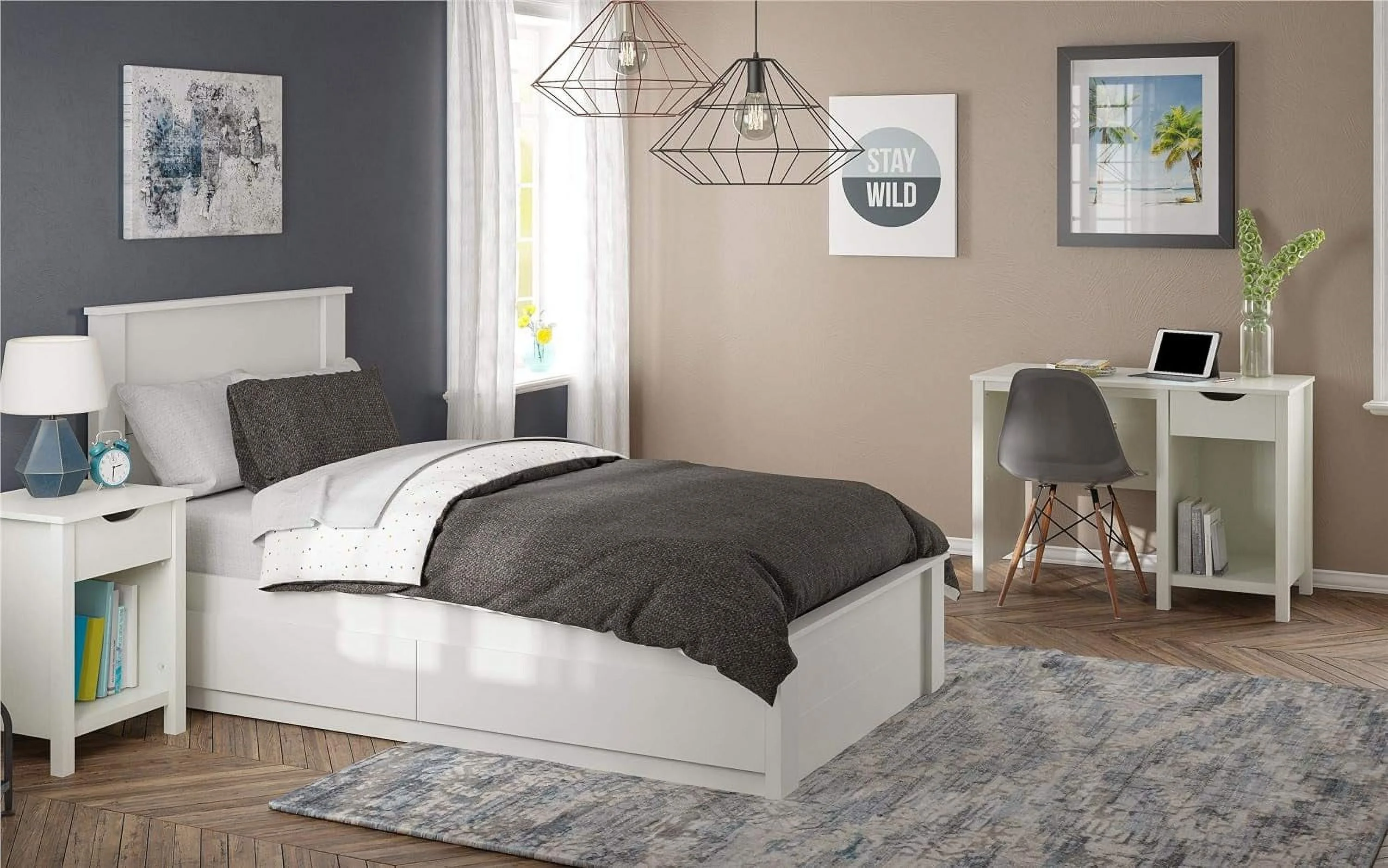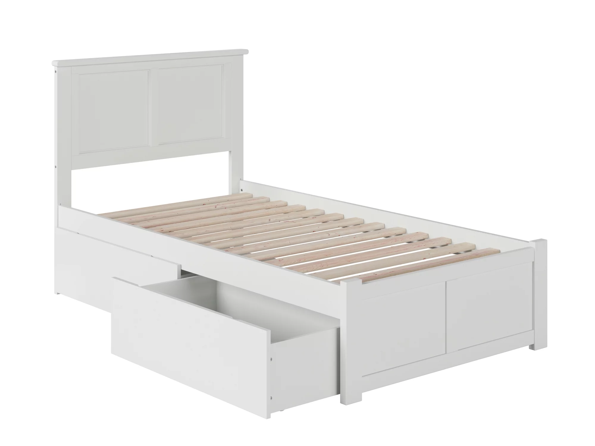 Madison Platform Bed with Flat Panel Foot Board and 2 Urban Bed Drawers in Multiple Colors and Sizes