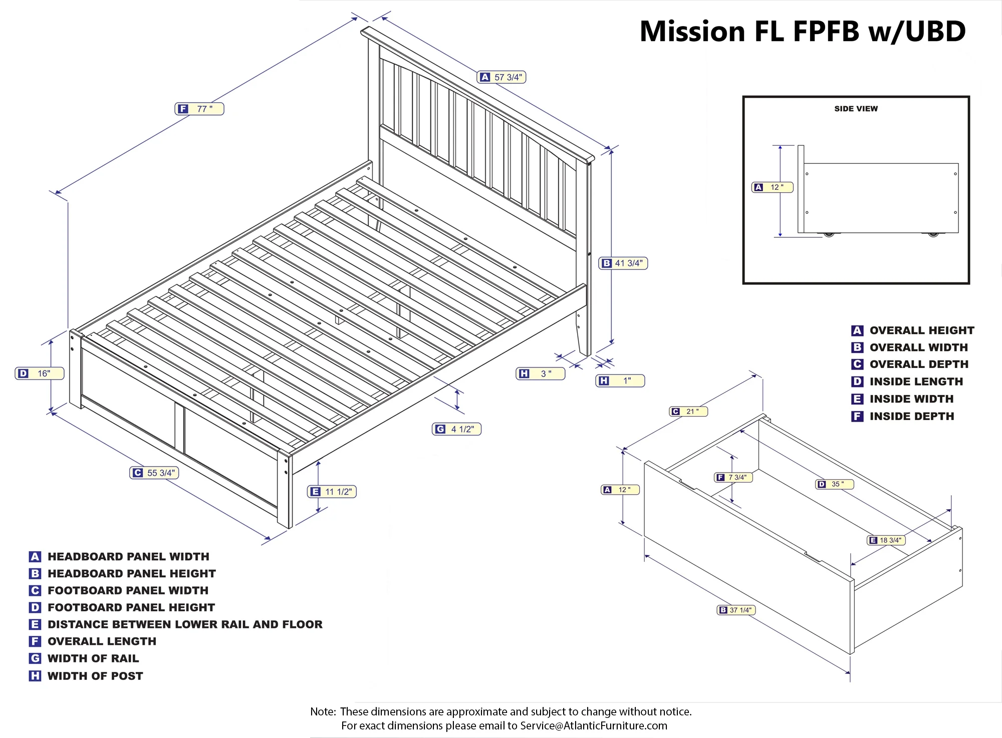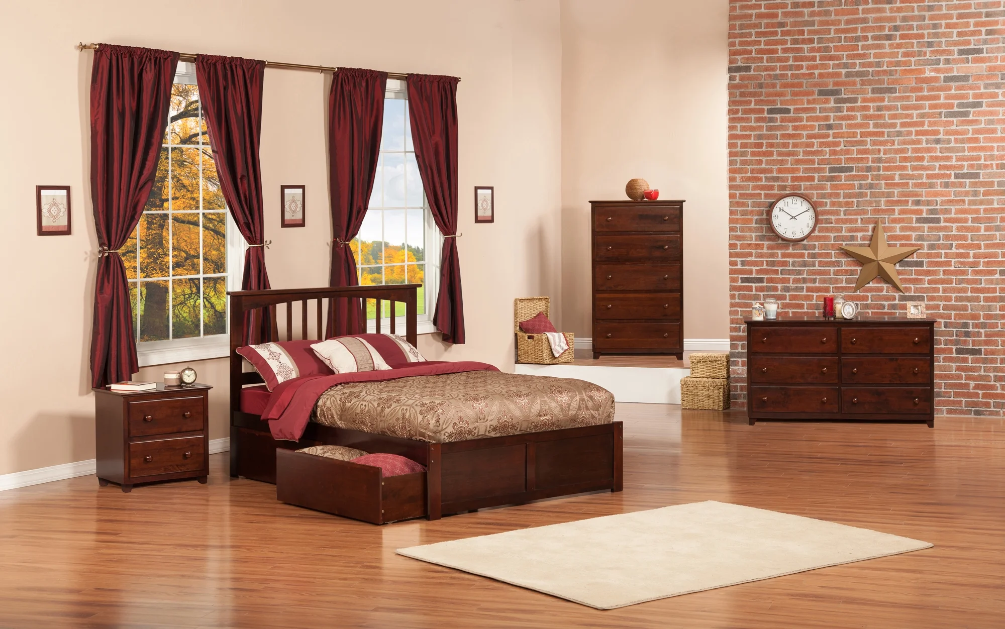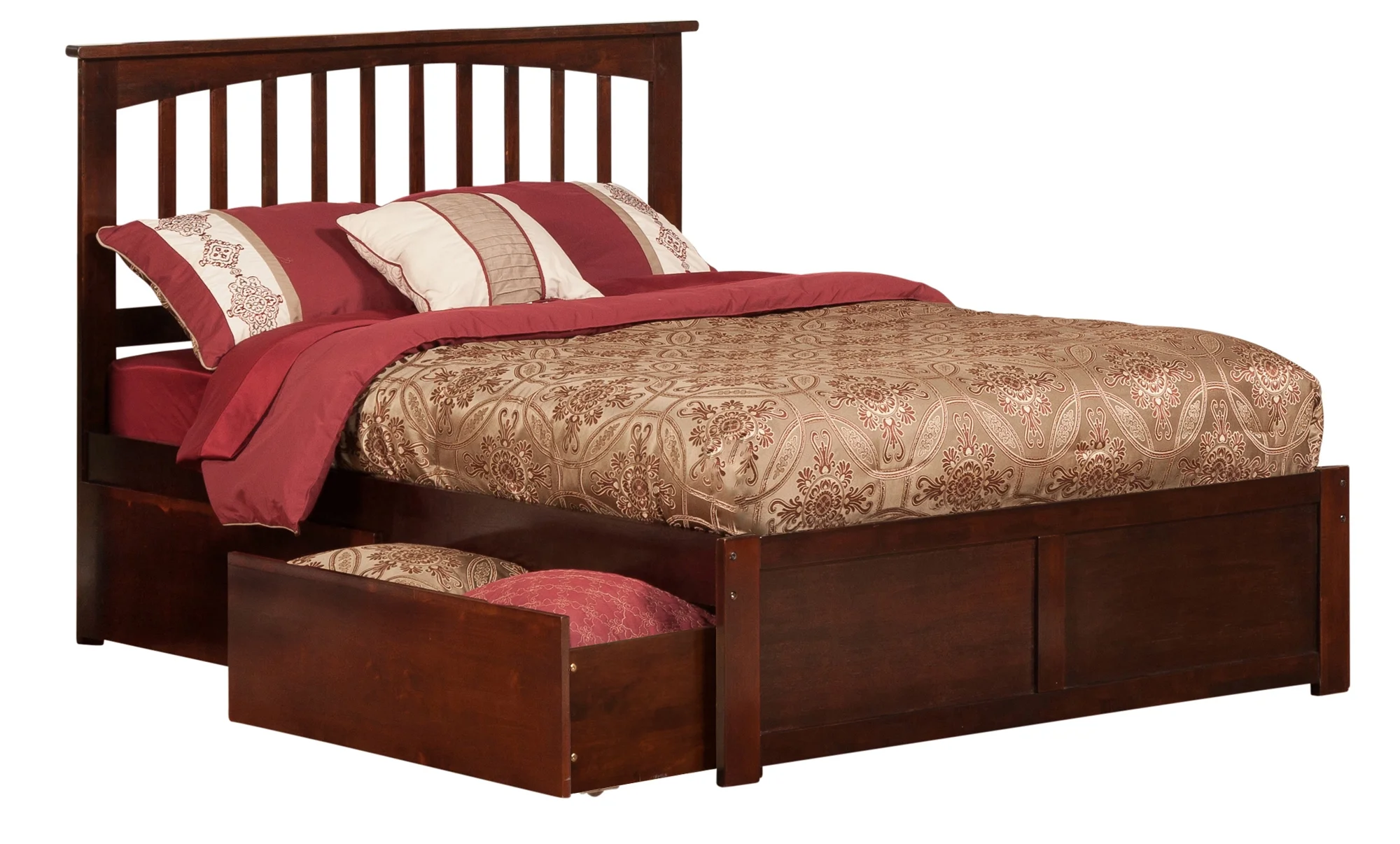 Mission Platform Bed with Flat Panel Foot Board and 2 Urban Bed Drawers in, Multiple Colors and Sizes