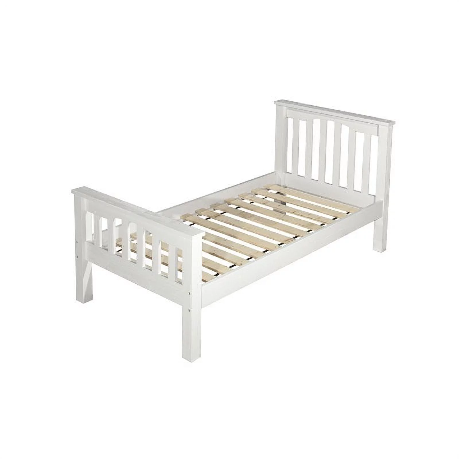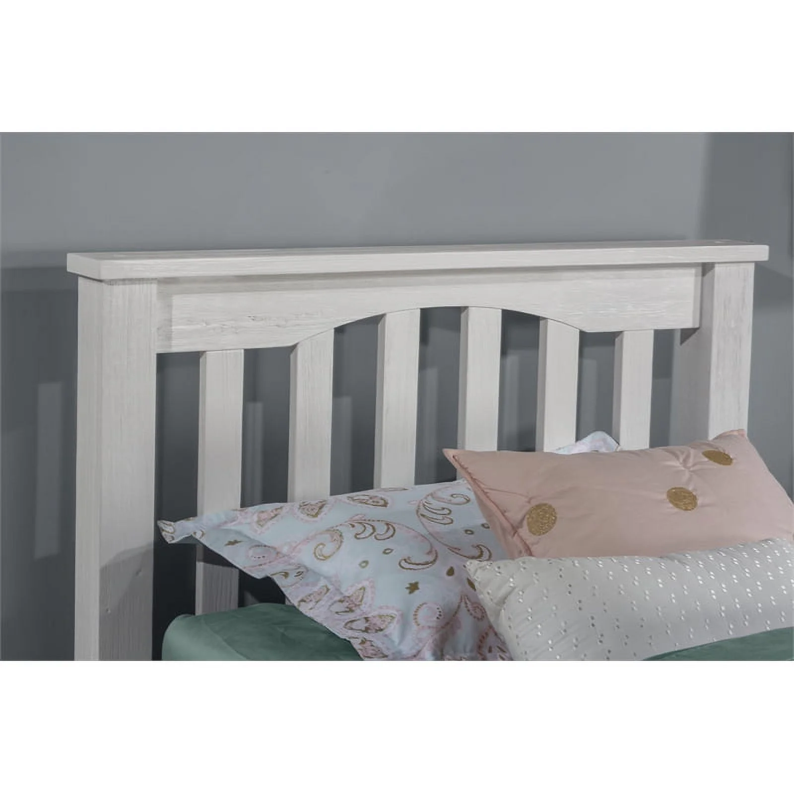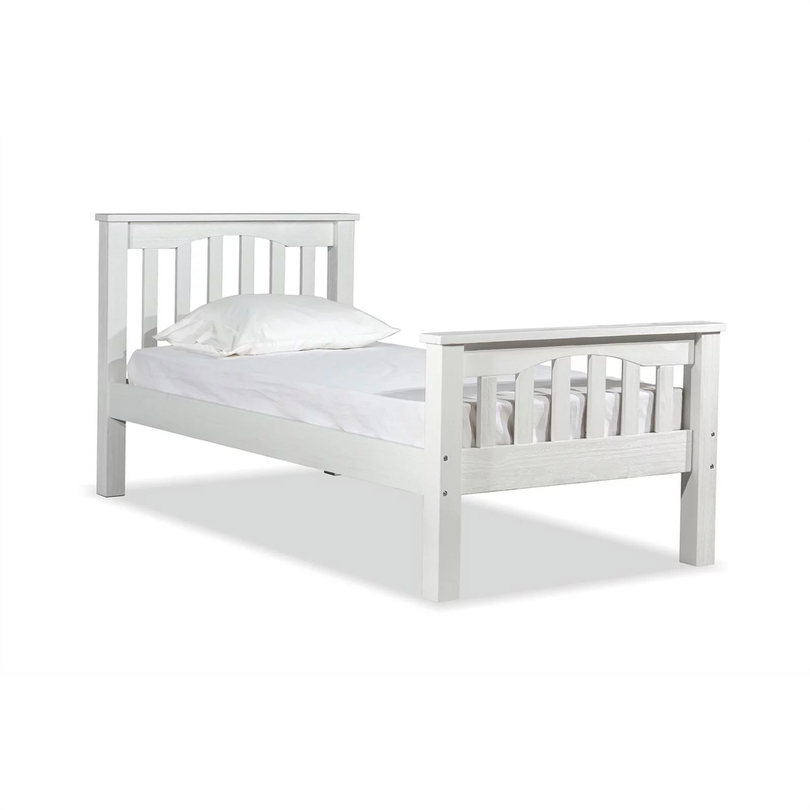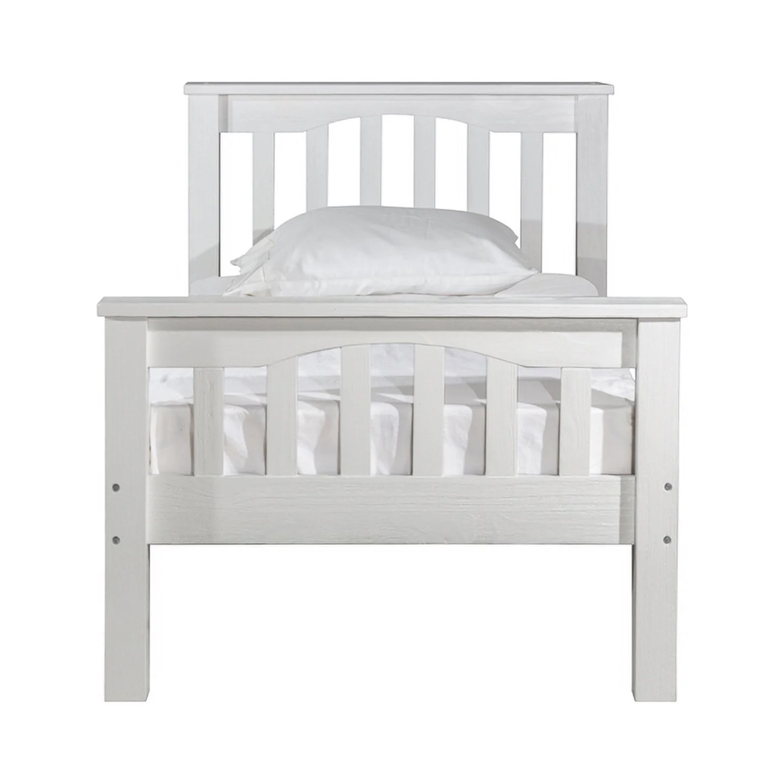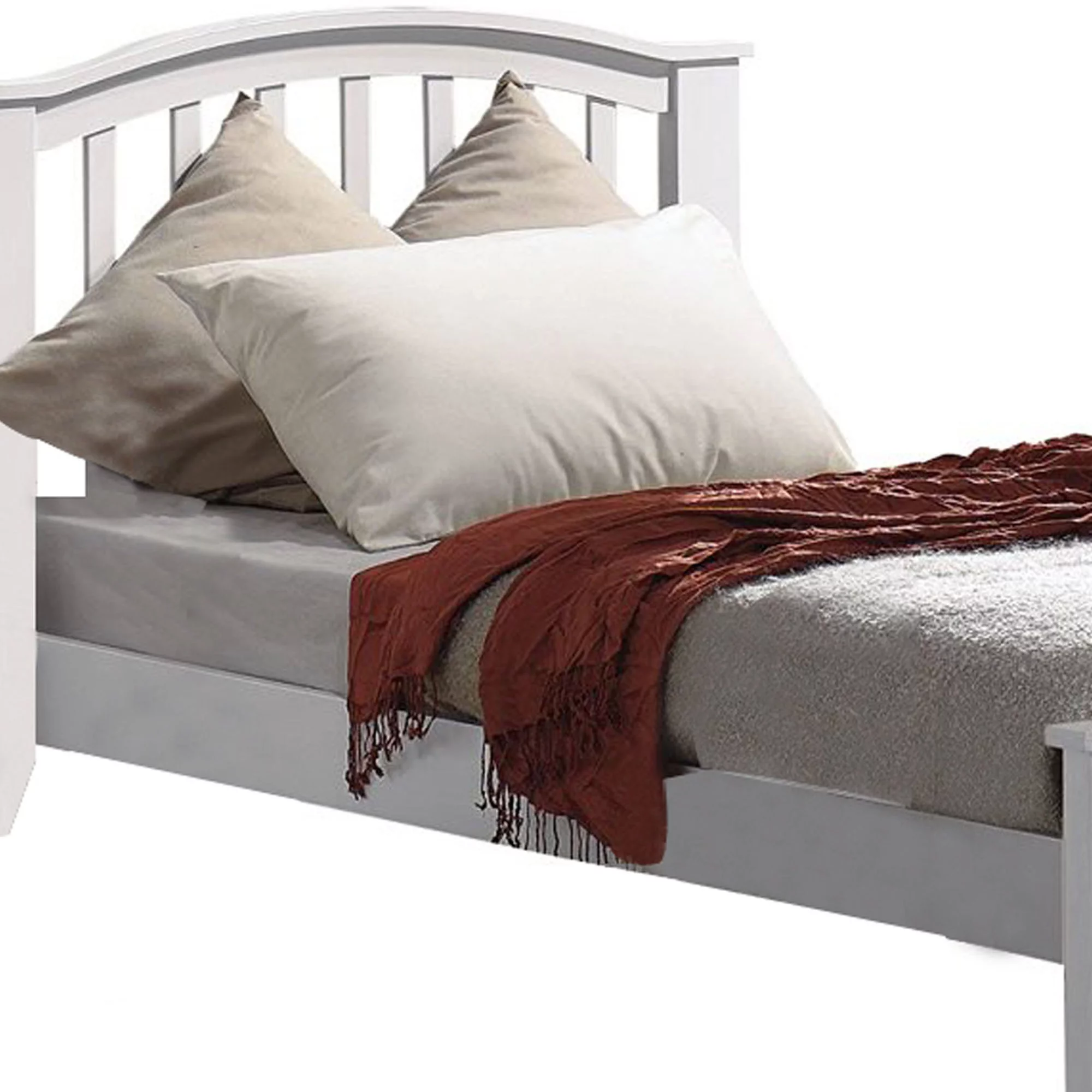 Mission Style Wooden Twin Bed with Arched Slatted Headboard and Footboard, White