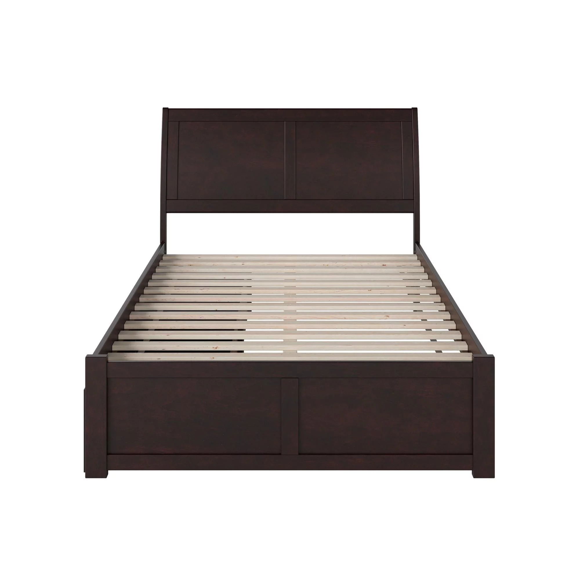 Portland Full Platform Bed with Flat Panel Foot Board and 2 Urban Bed Drawers in Espresso