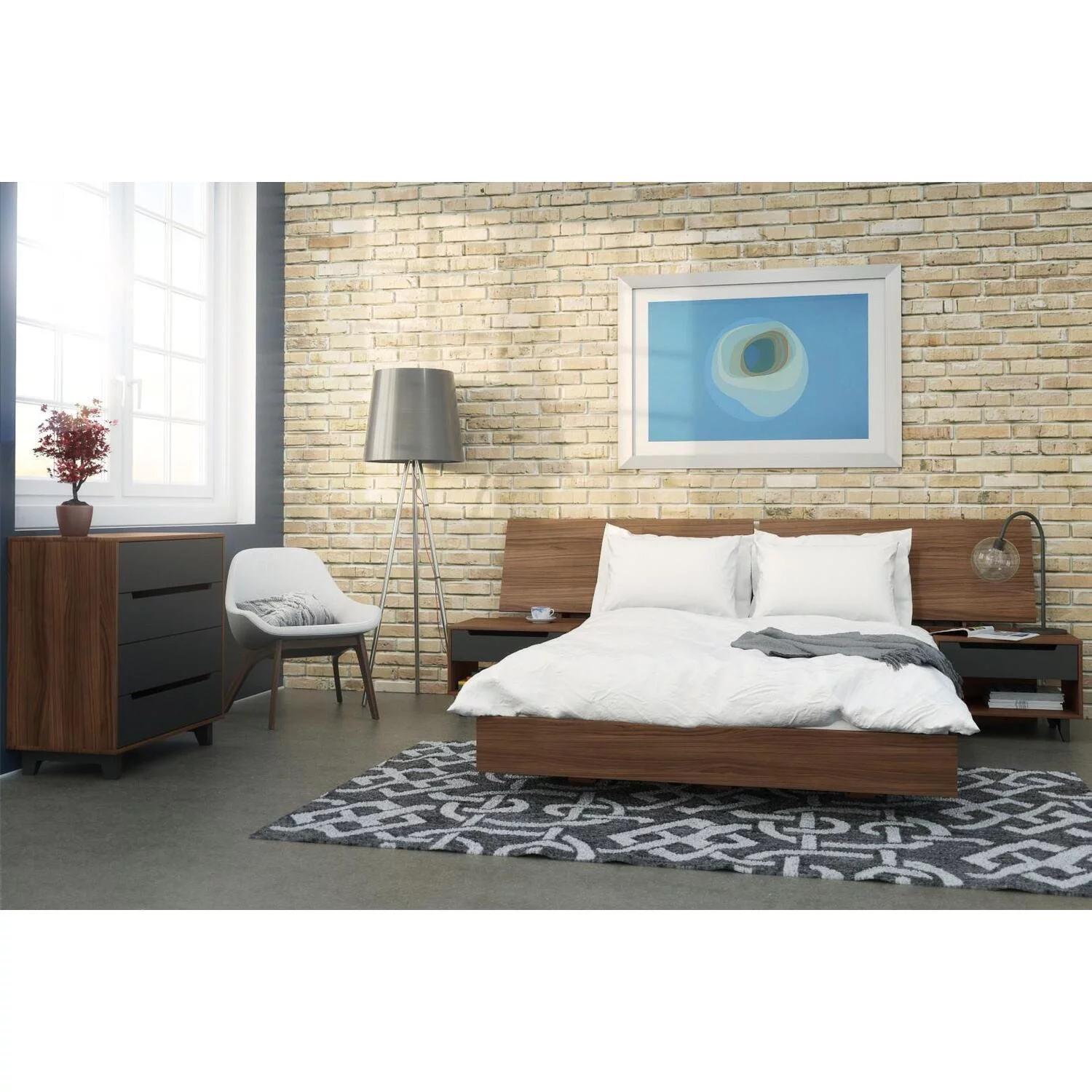 Leo & Lacey Solid Wood Twin XL Platform Bed with Built-In Charger in Espresso