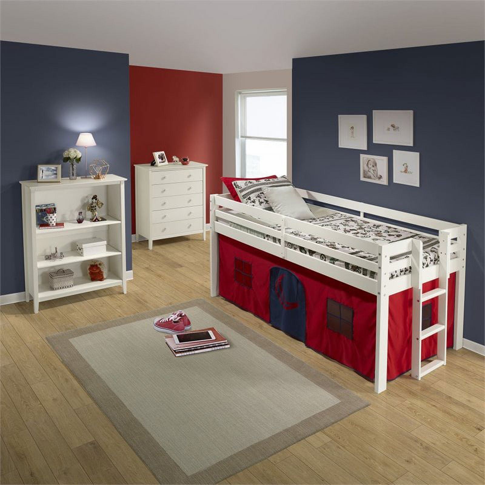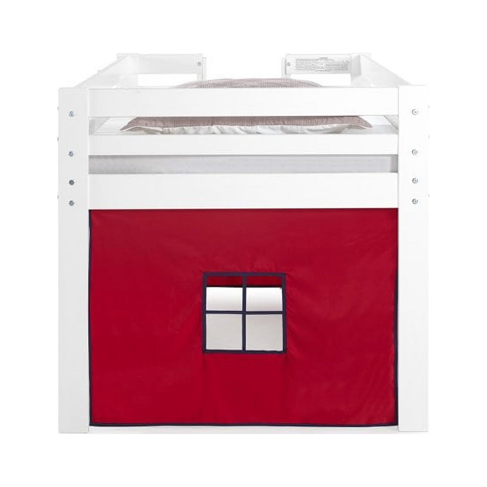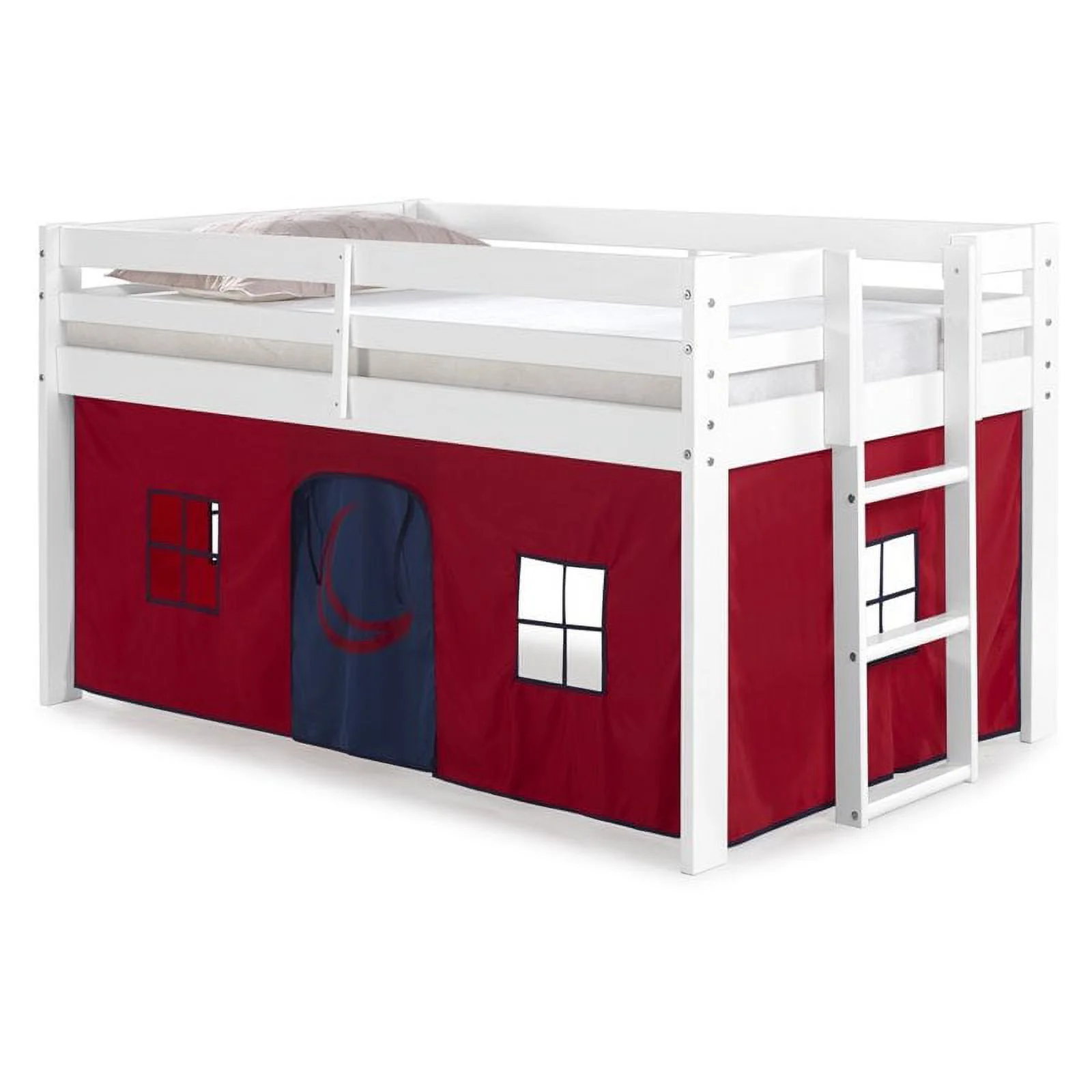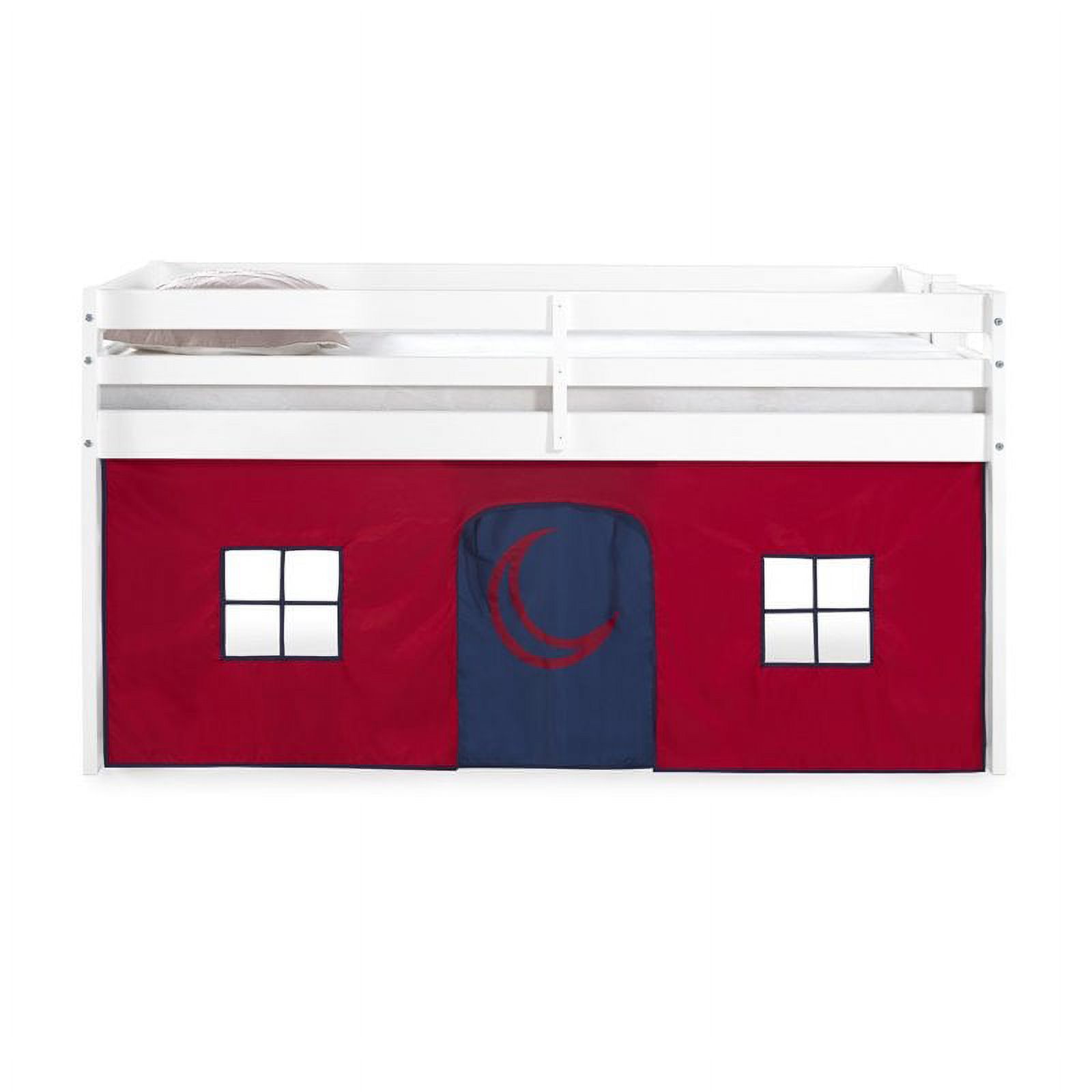 Roseberry Kids Twin Junior Loft Bed White Frame and Red/Blue Bottom Playhouse
