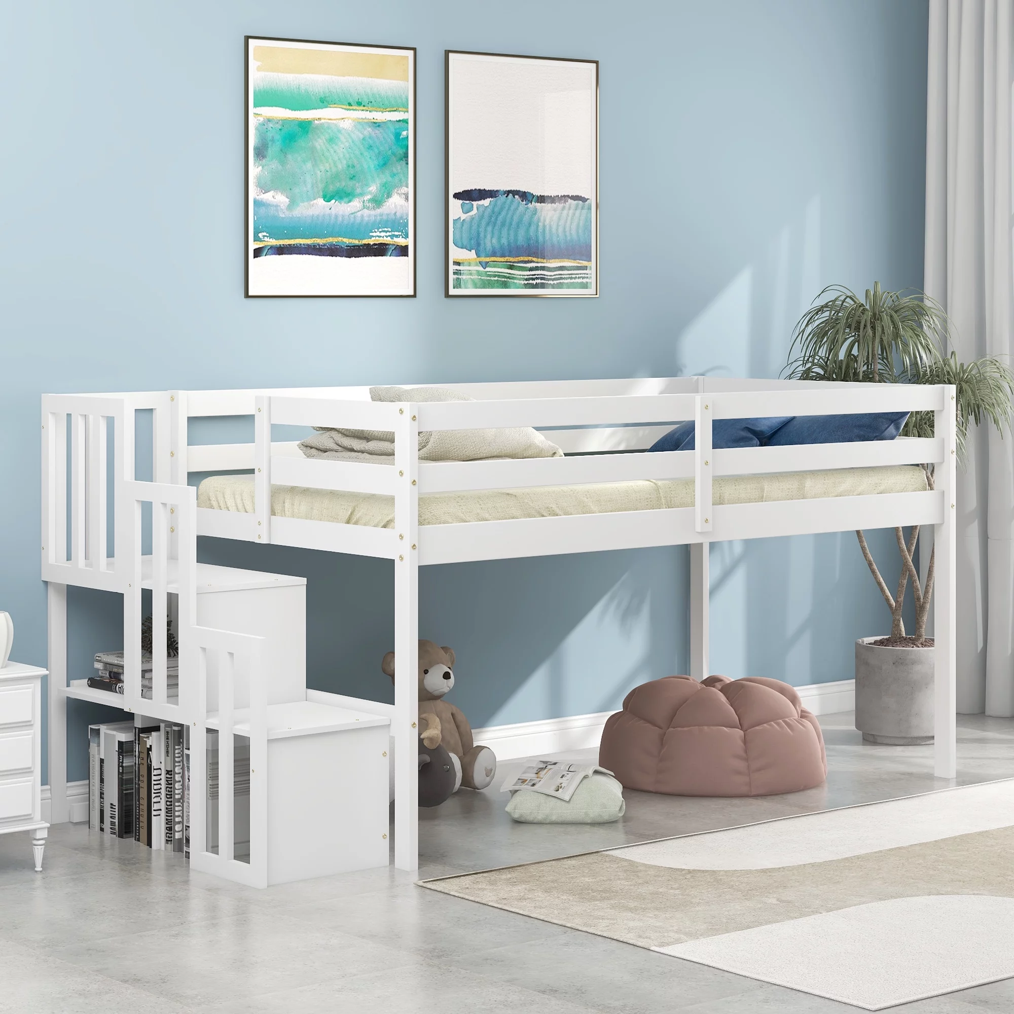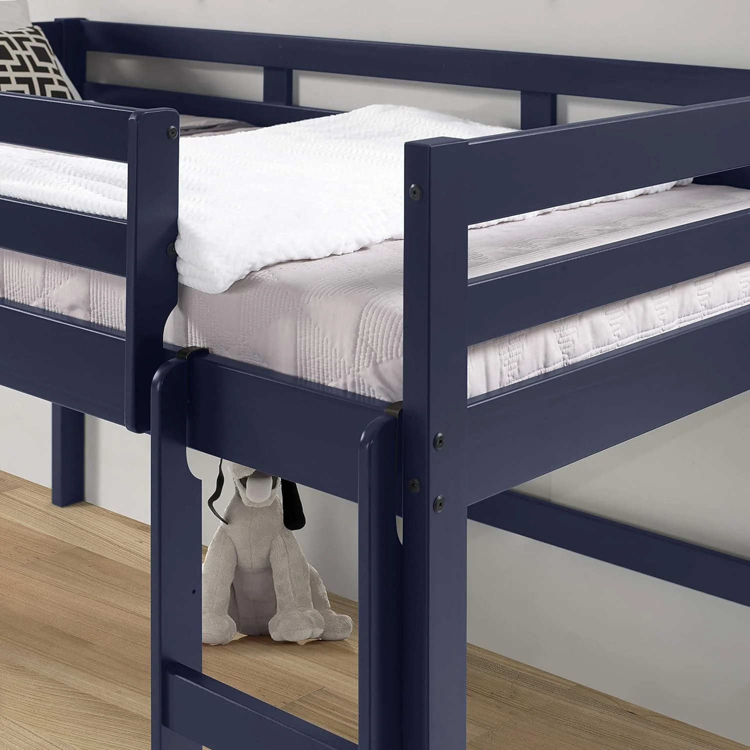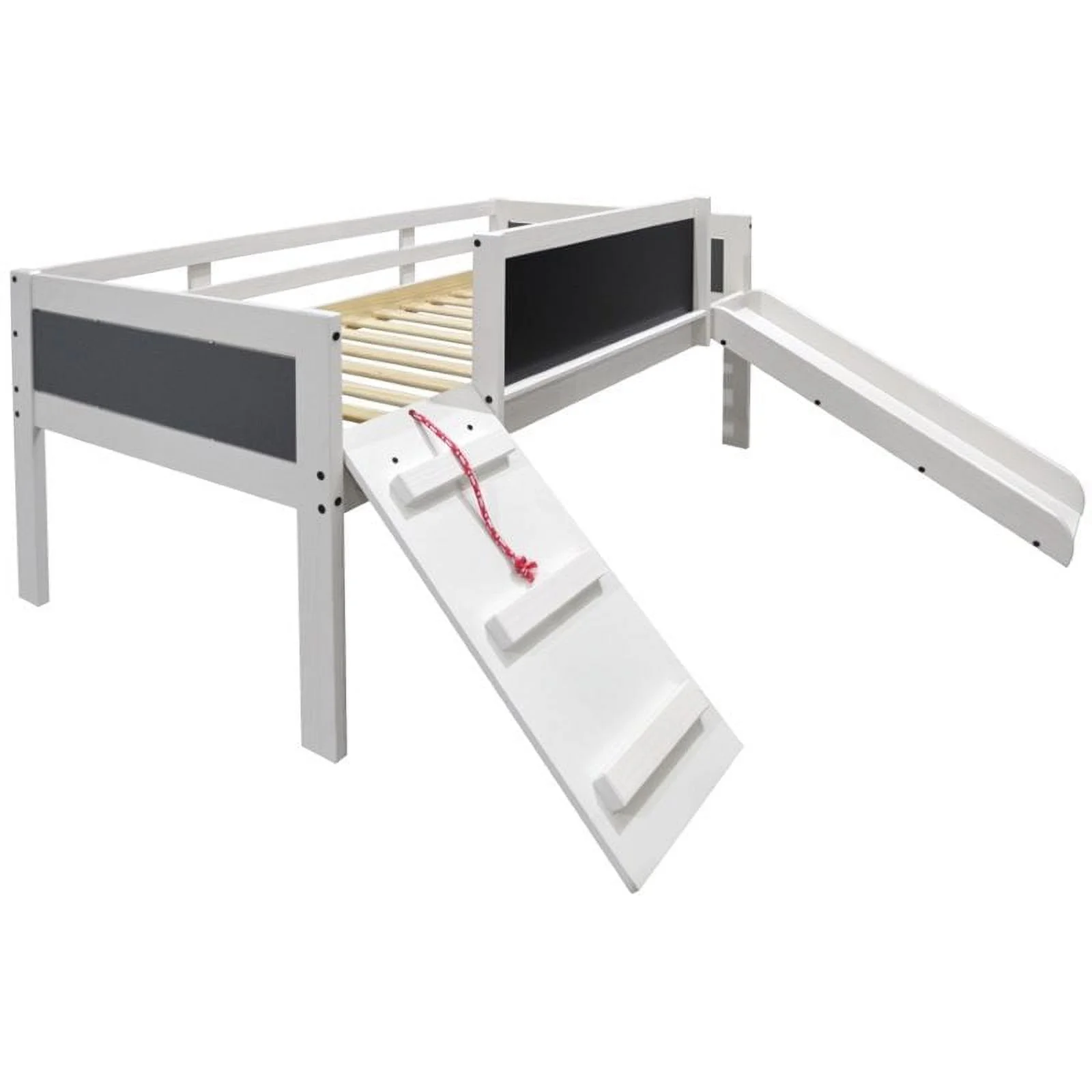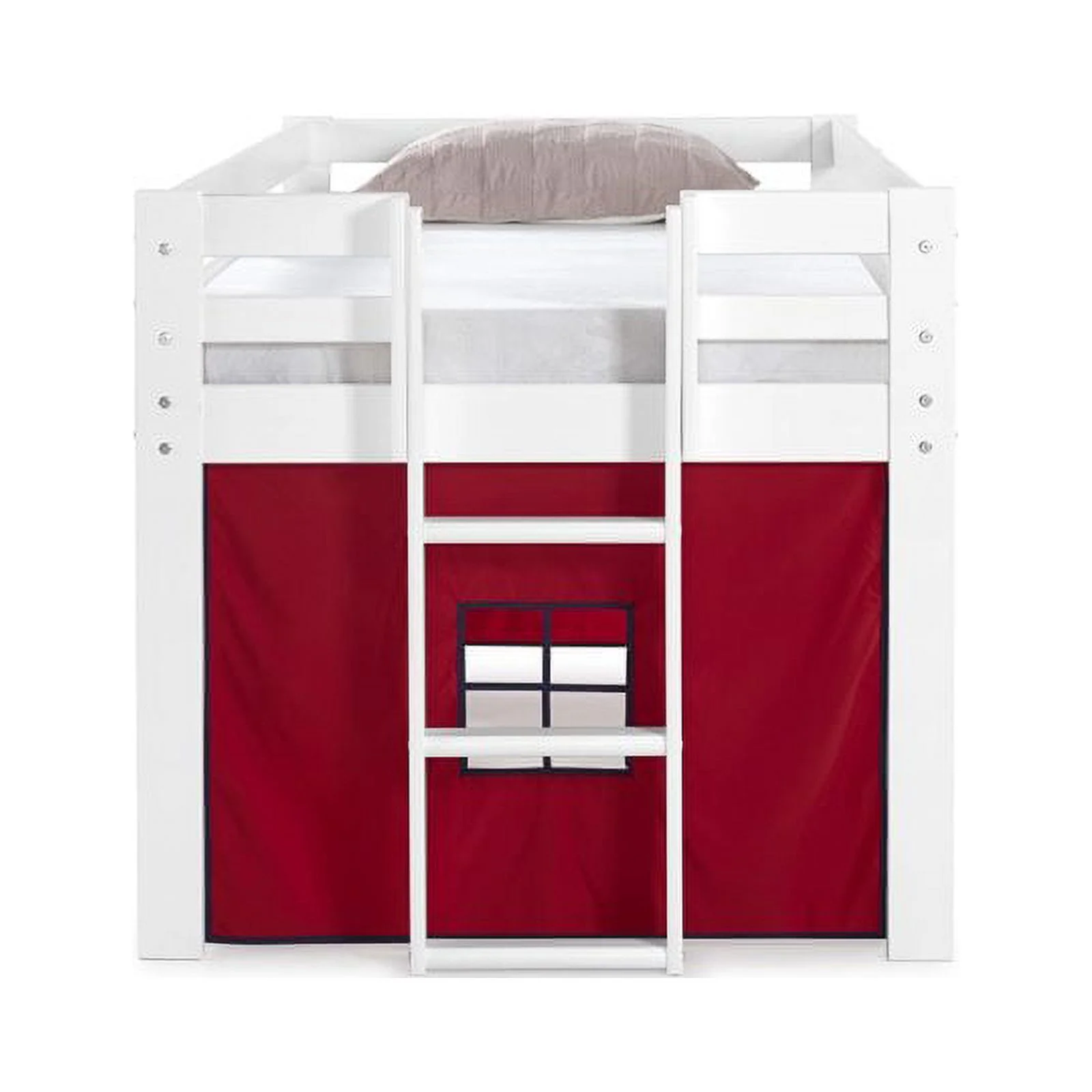 Roseberry Kids Twin Junior Loft Bed White Frame and Red/Blue Bottom Playhouse