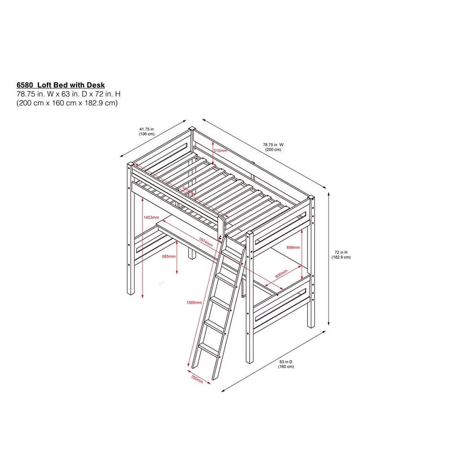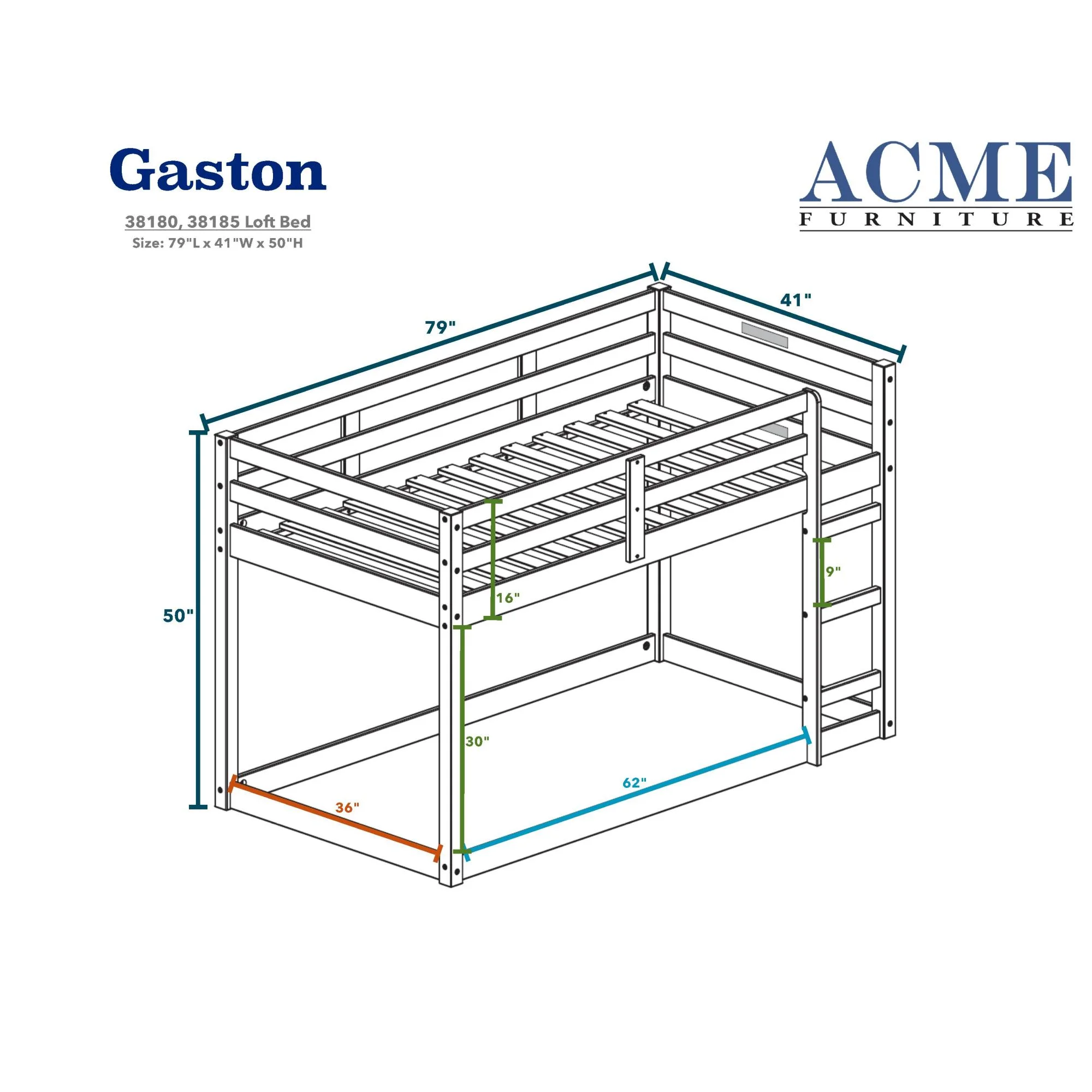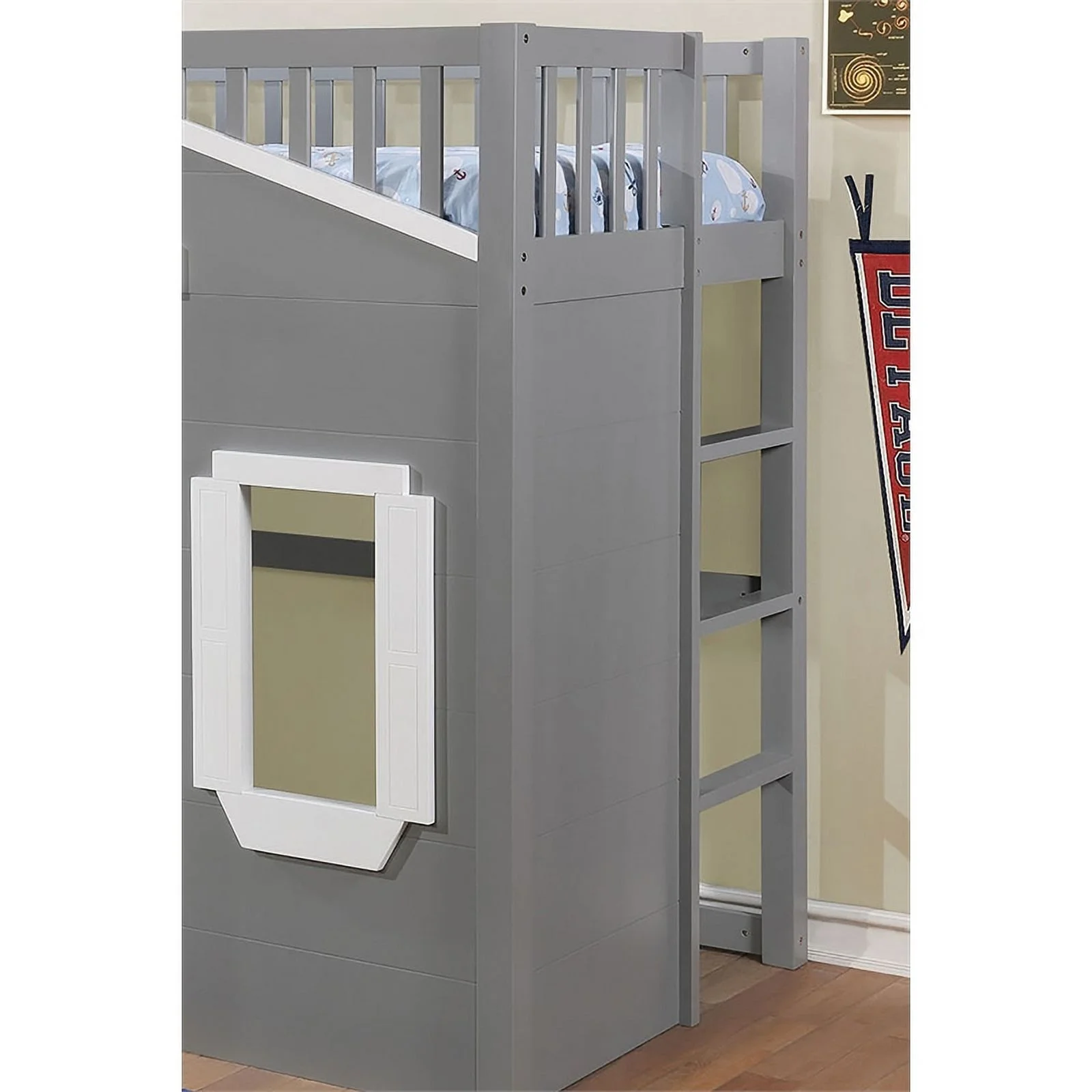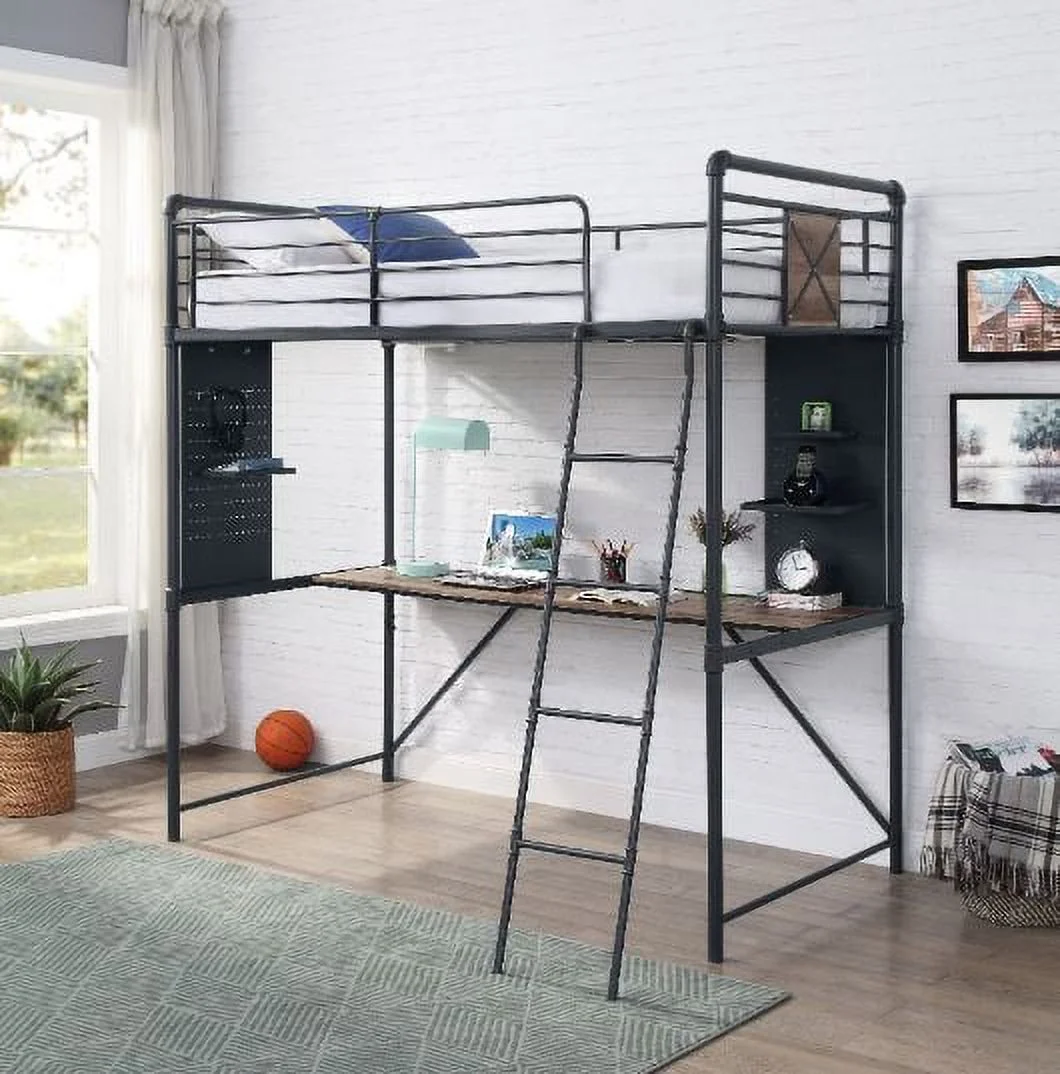 Contemporary Style ACME Gaston Loft Bed, Gray, Twin Loft Bed, Wood, Assembly Required