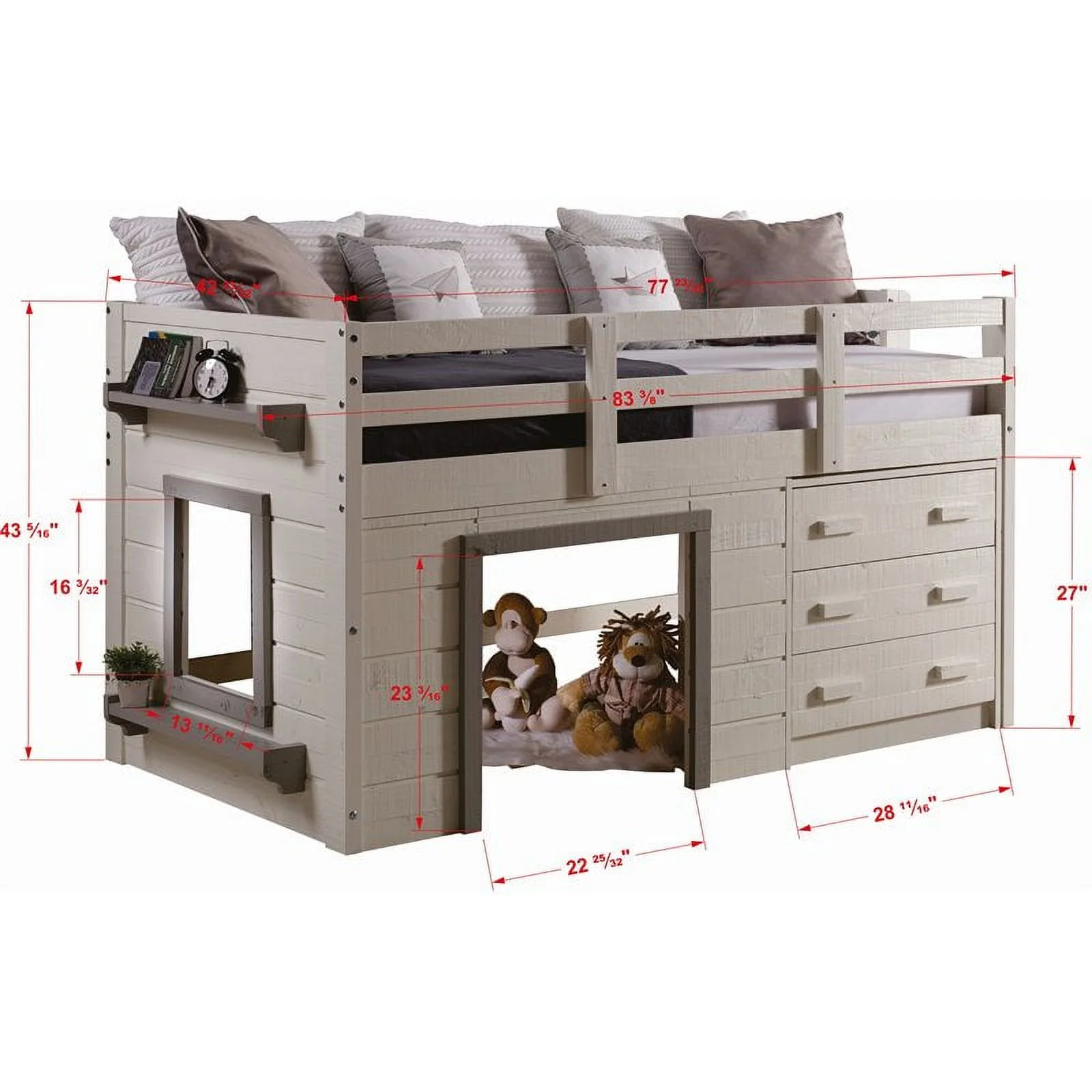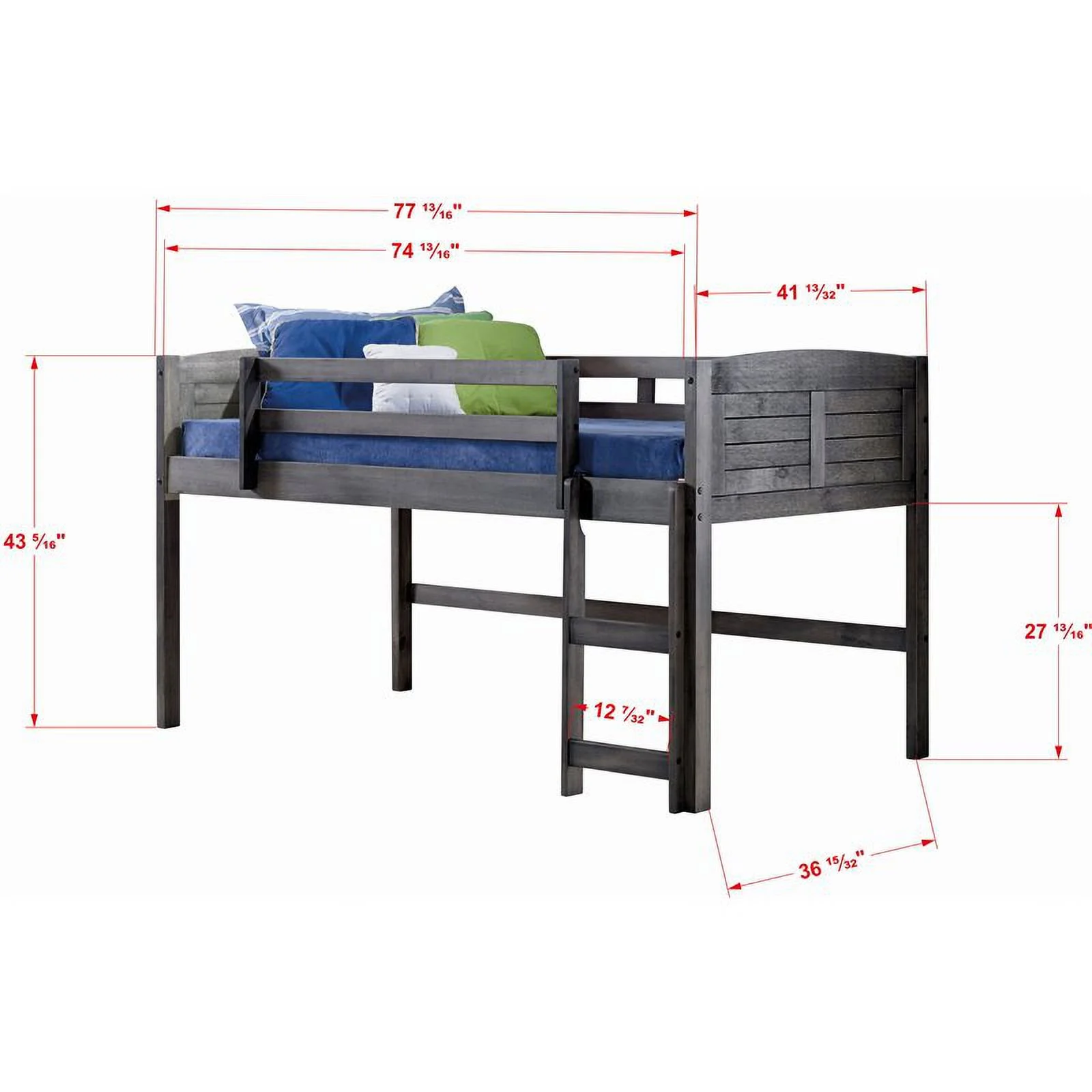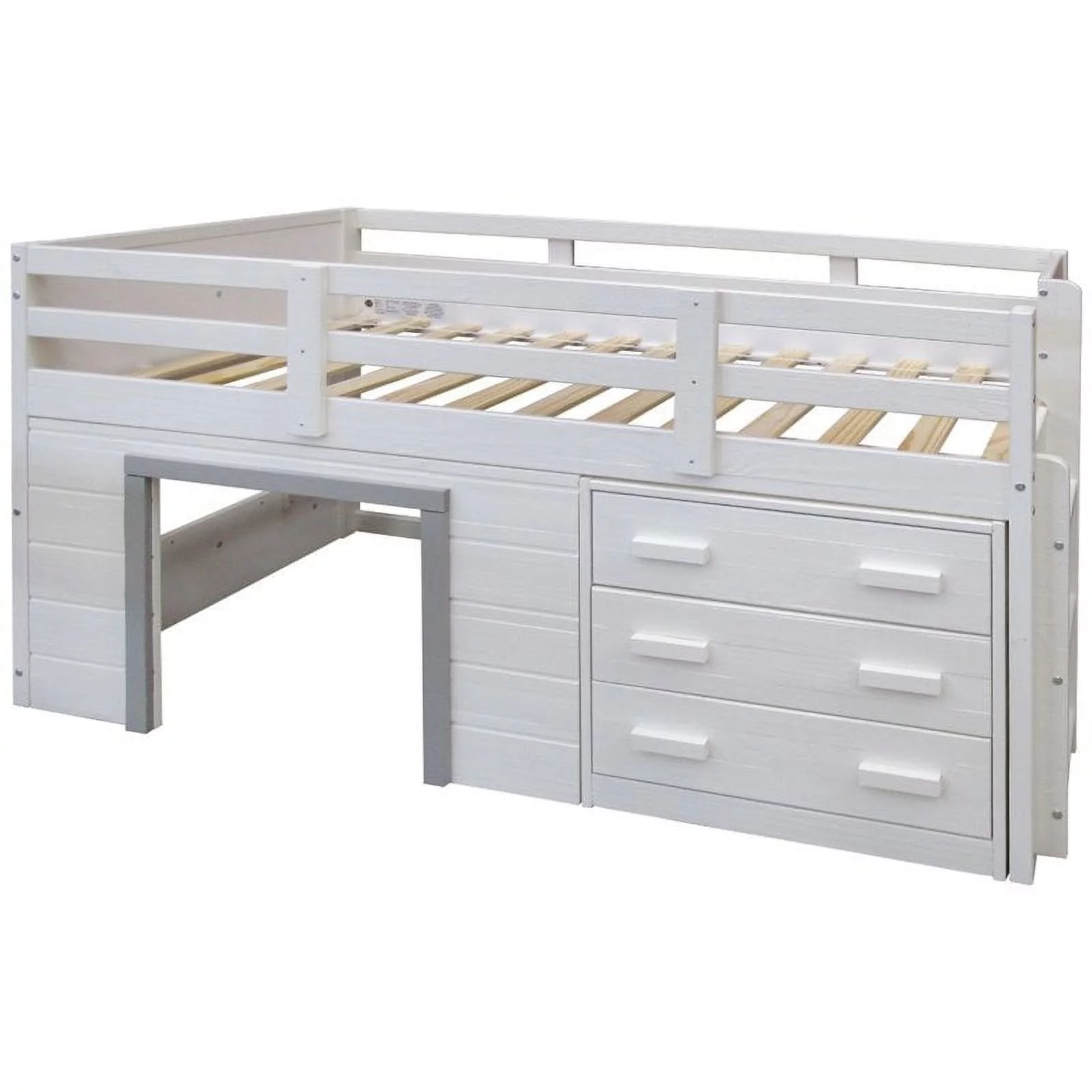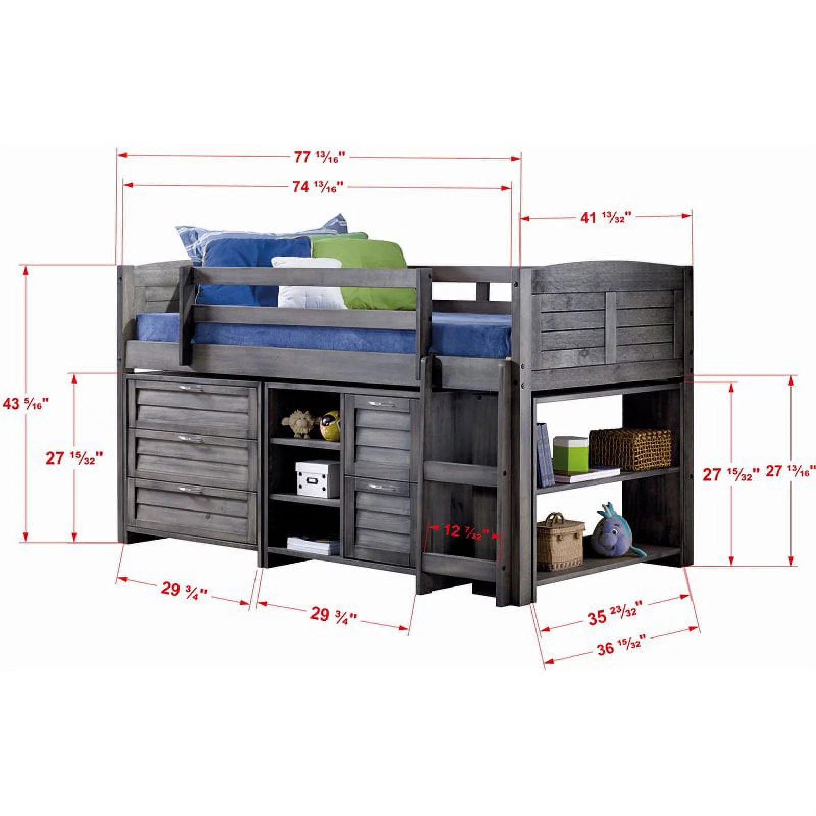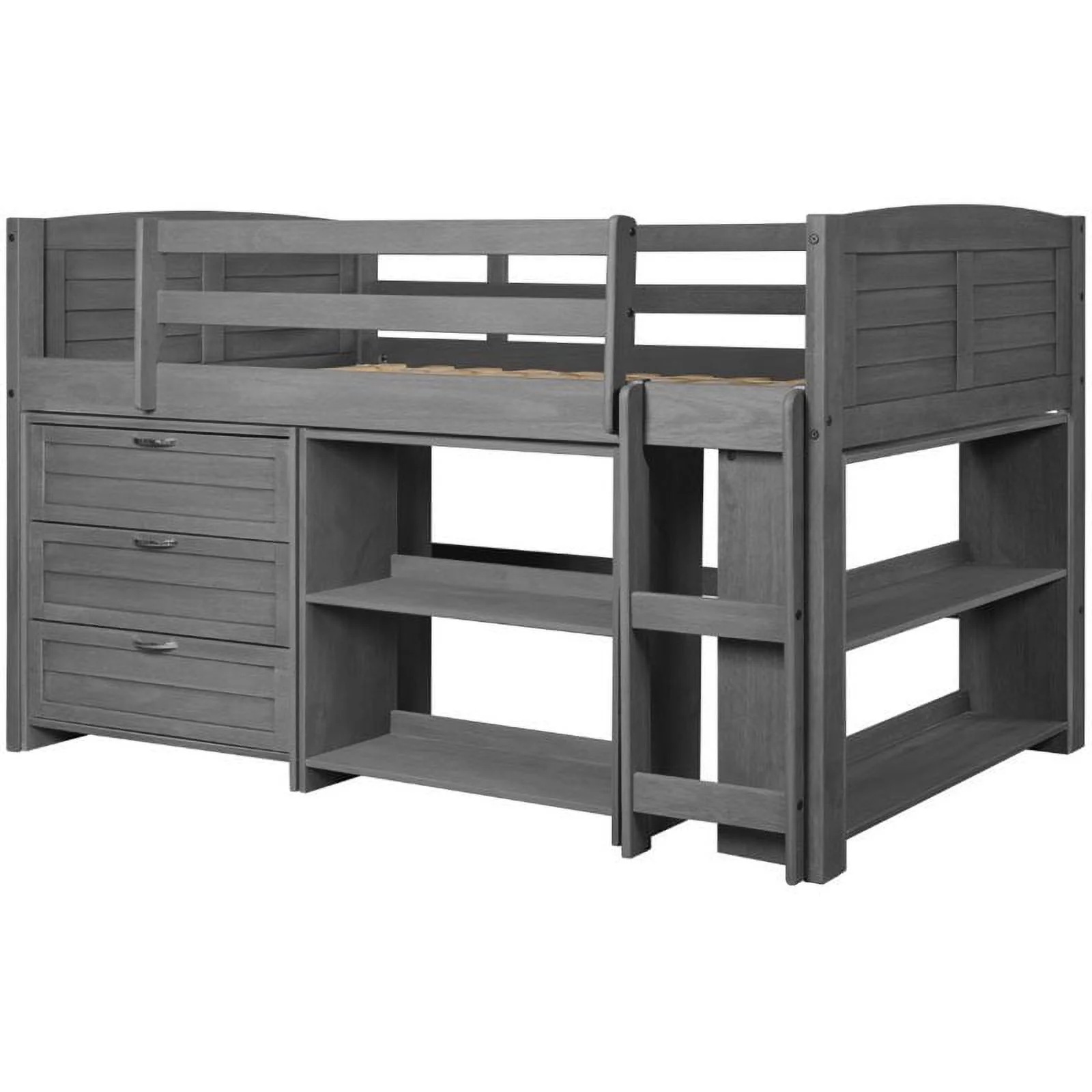Roseberry Kids Solid Wood Twin Low Loft with Storage in Antique Gray