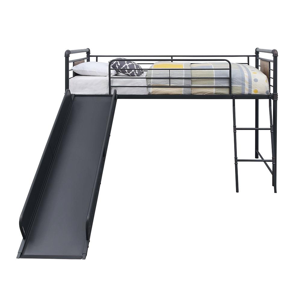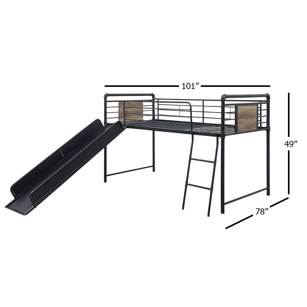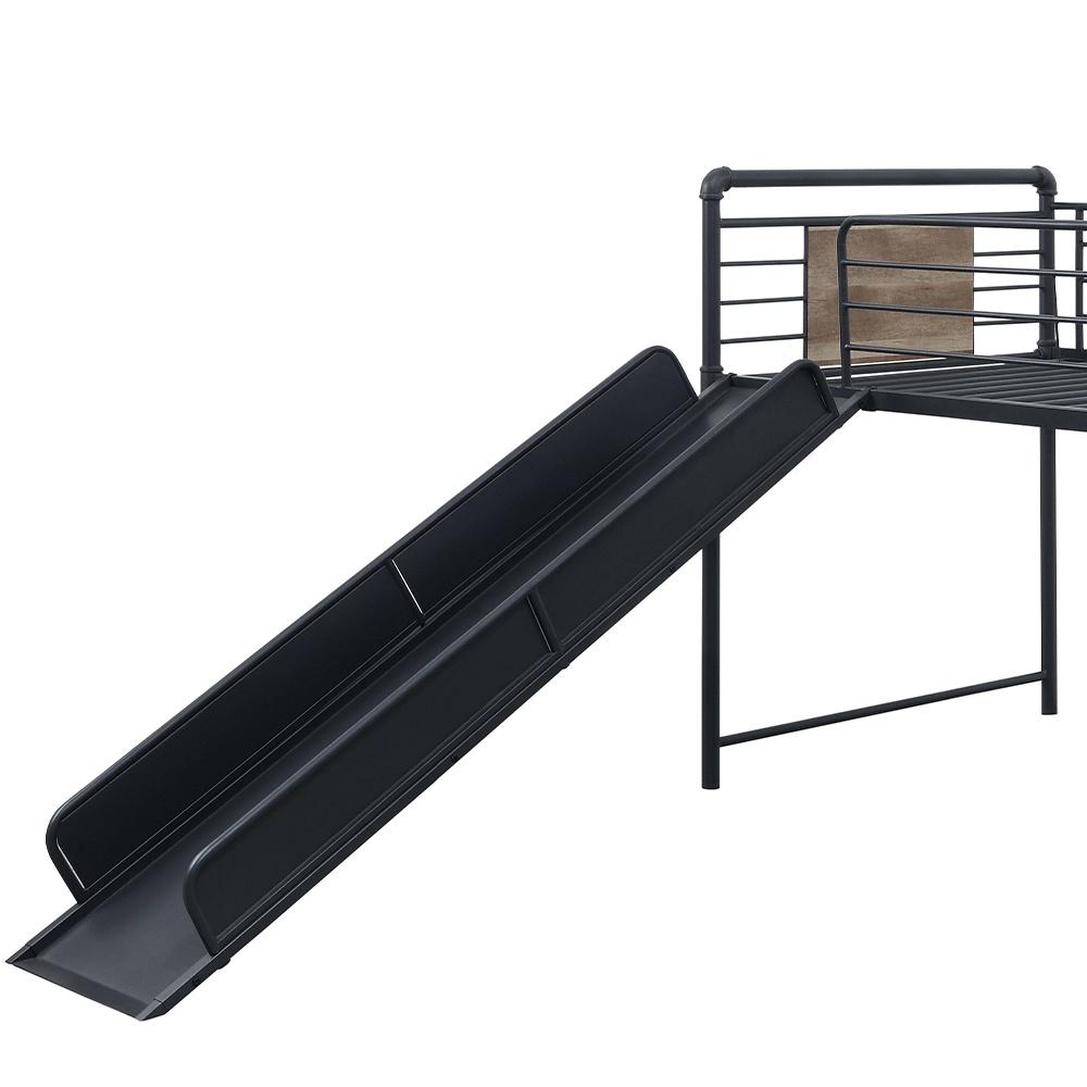 Acme Cordelia Twin Loft Bed w/Slide, Antique Oak, Sandy Black & Dark Bronze Hand-Brushed Finish