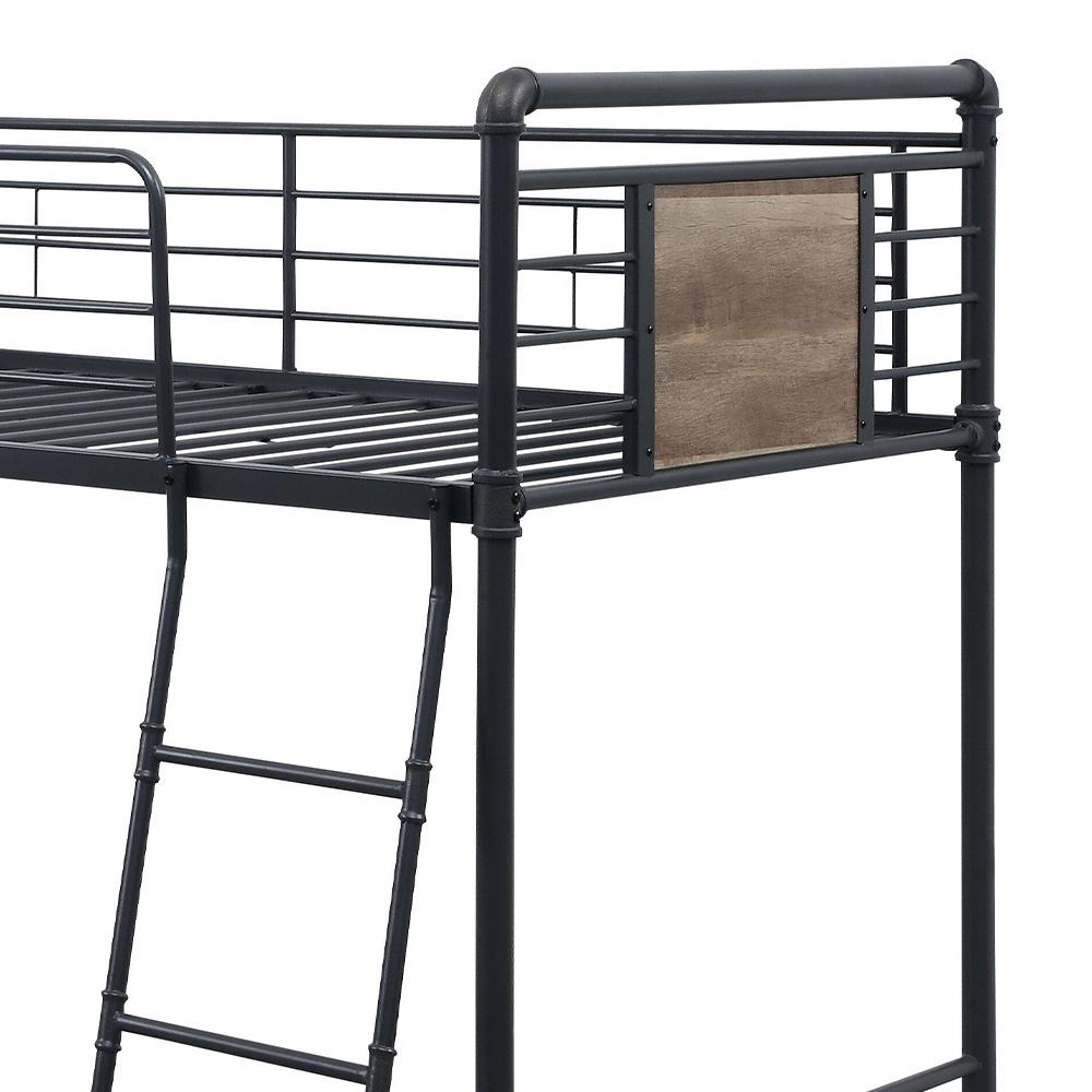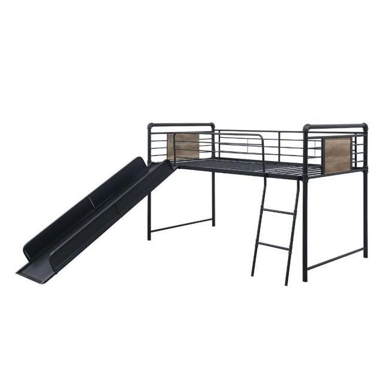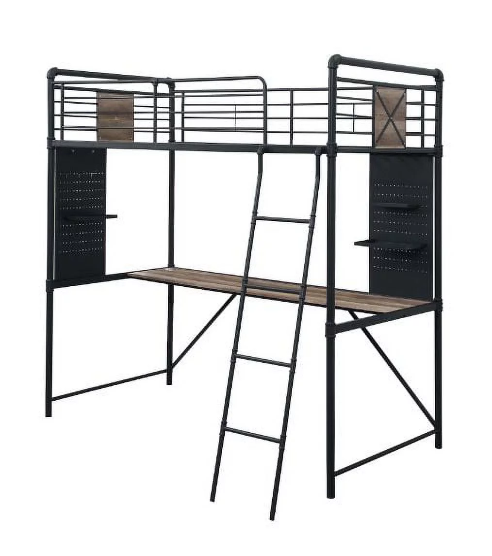 Acme Cordelia Twin Loft Bed w/Slide, Antique Oak, Sandy Black & Dark Bronze Hand-Brushed Finish