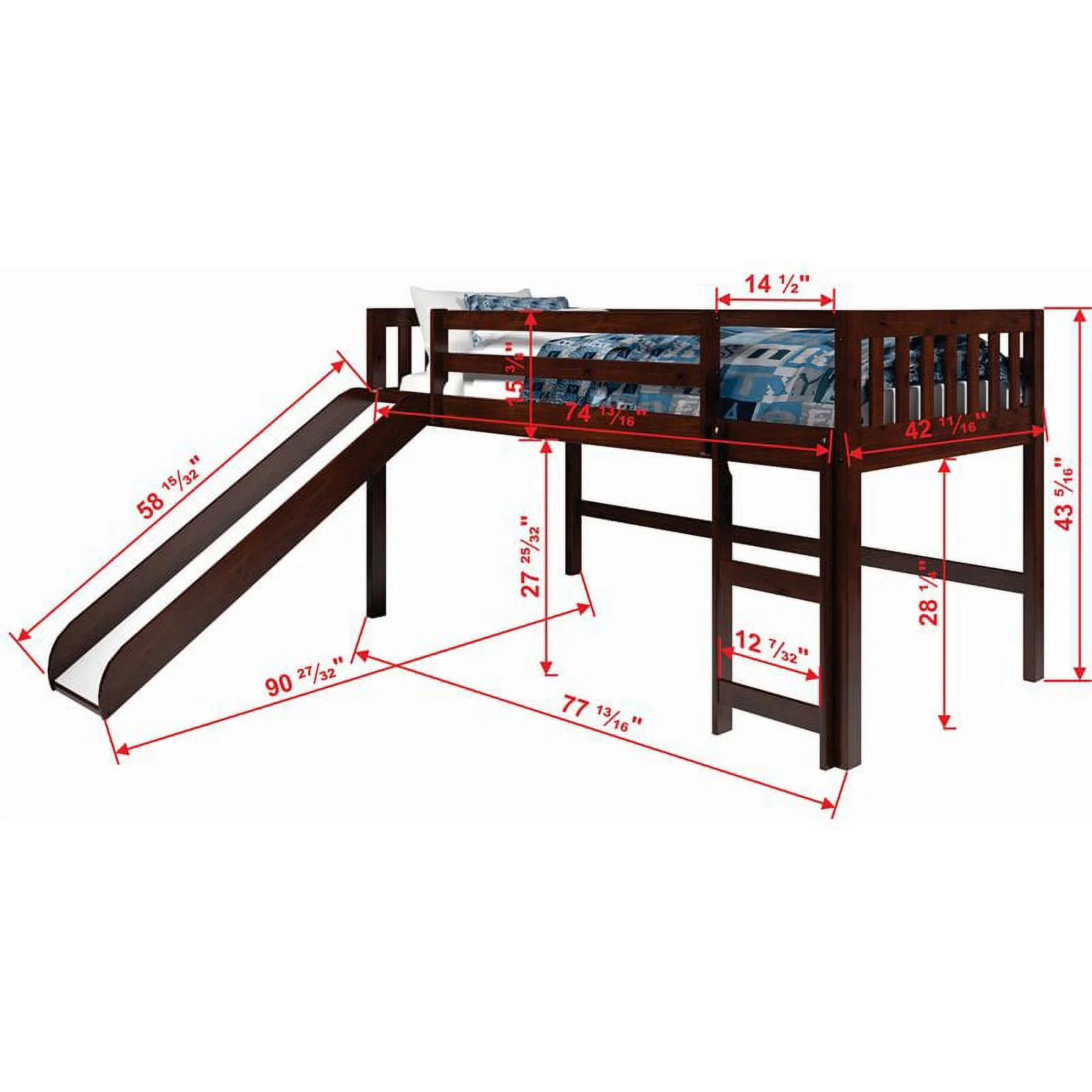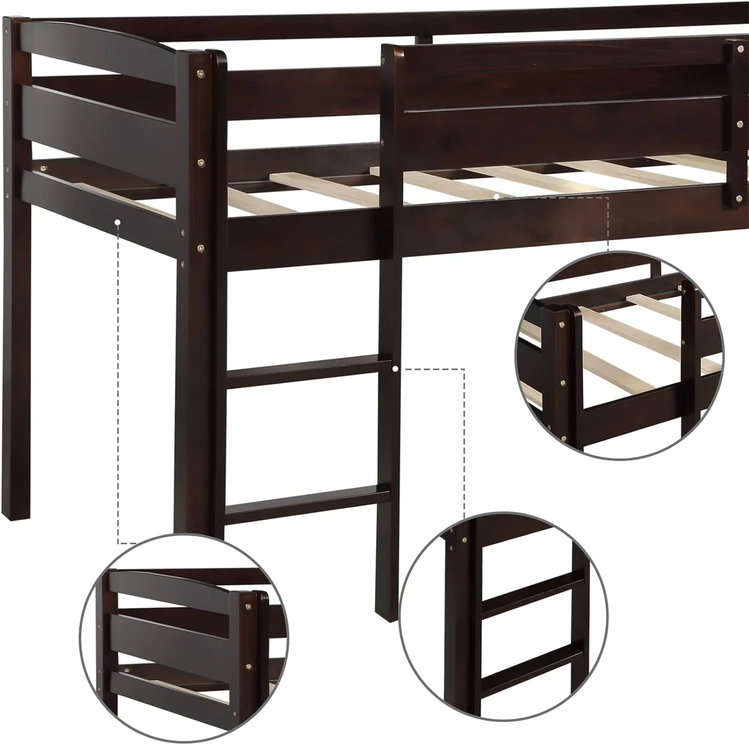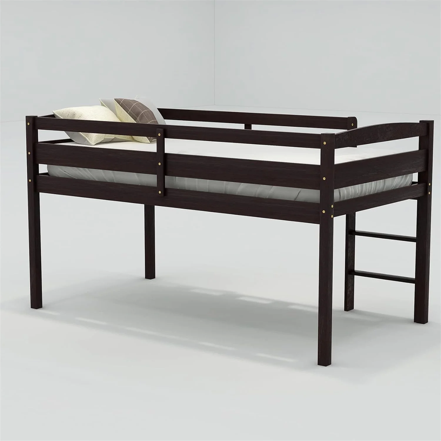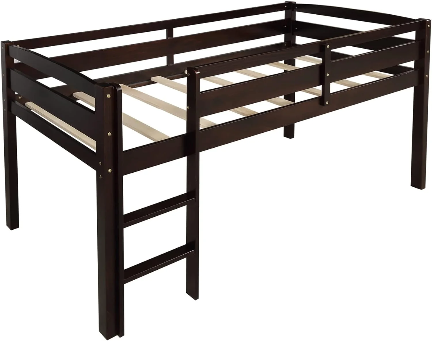 Bellemve Low Loft Bed Size Woode Loft Bed Frame With Ladder For Kids Girls Boys Tees, Espresso