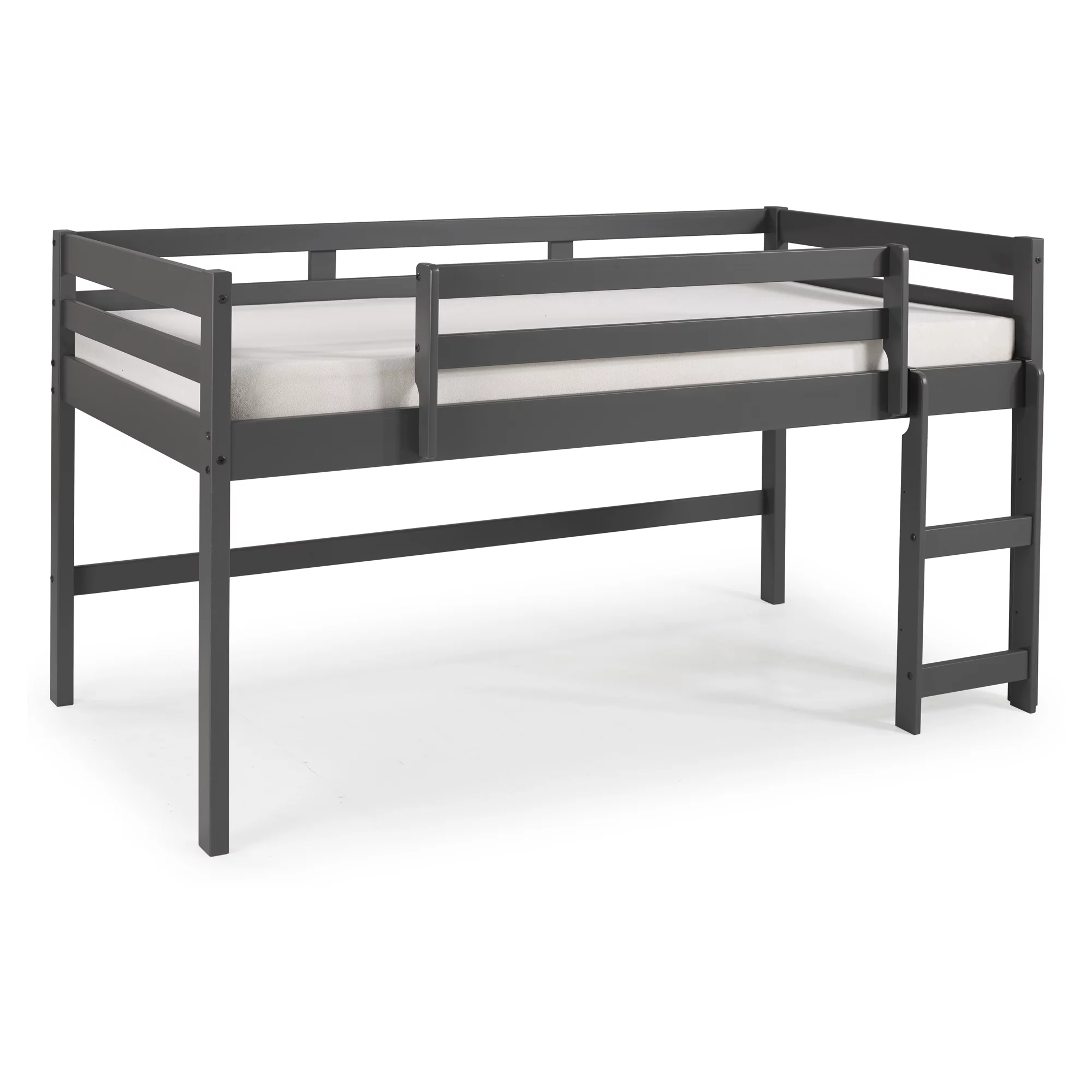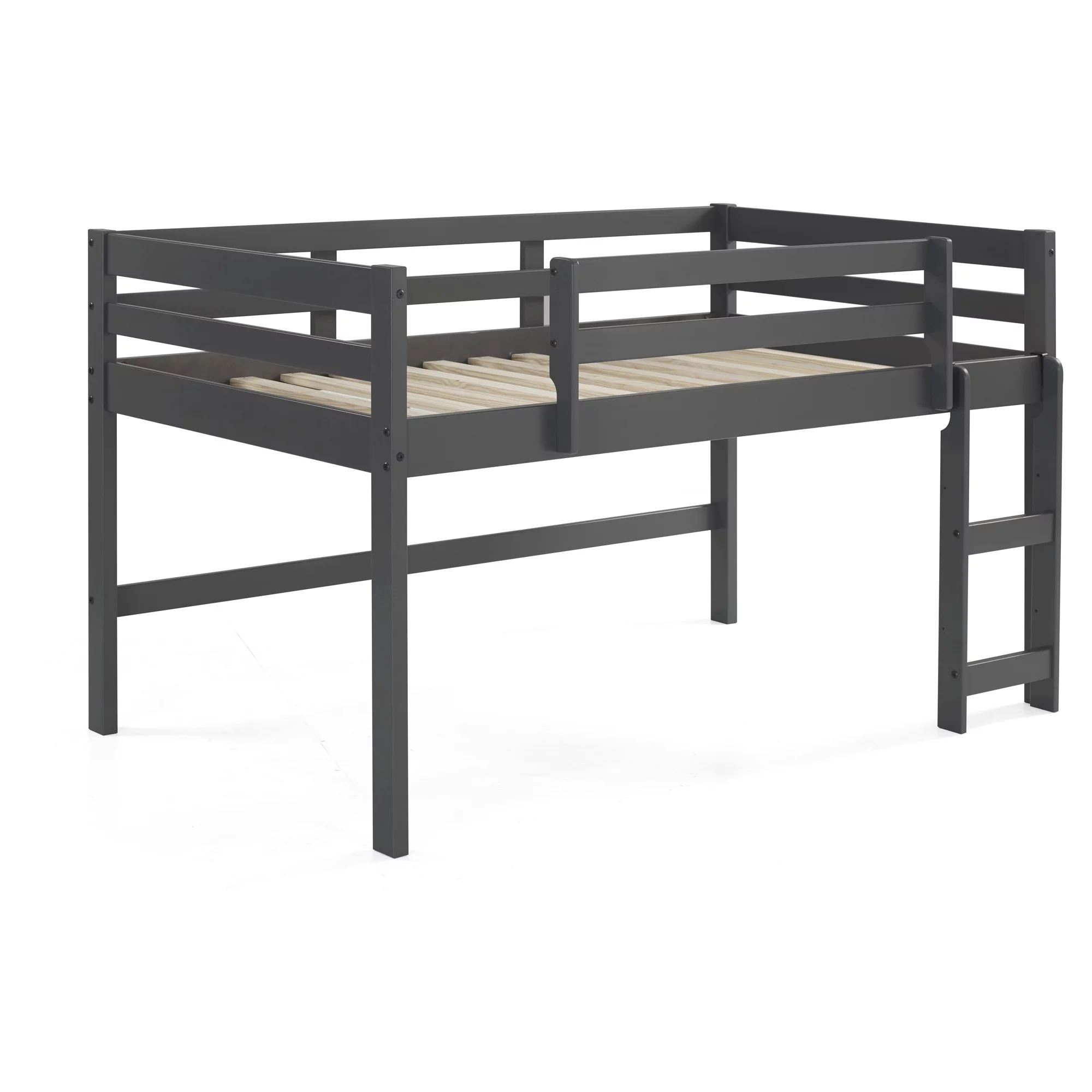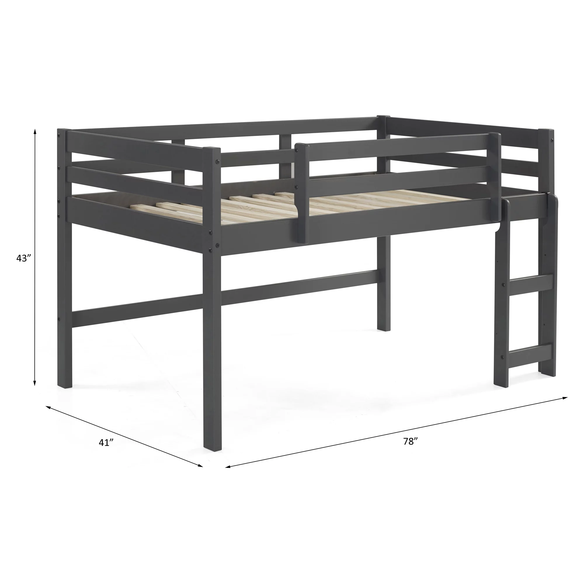 Dorel Living Harlan Wood Loft Bed with Ladder and GuardRail in Twin in Gray