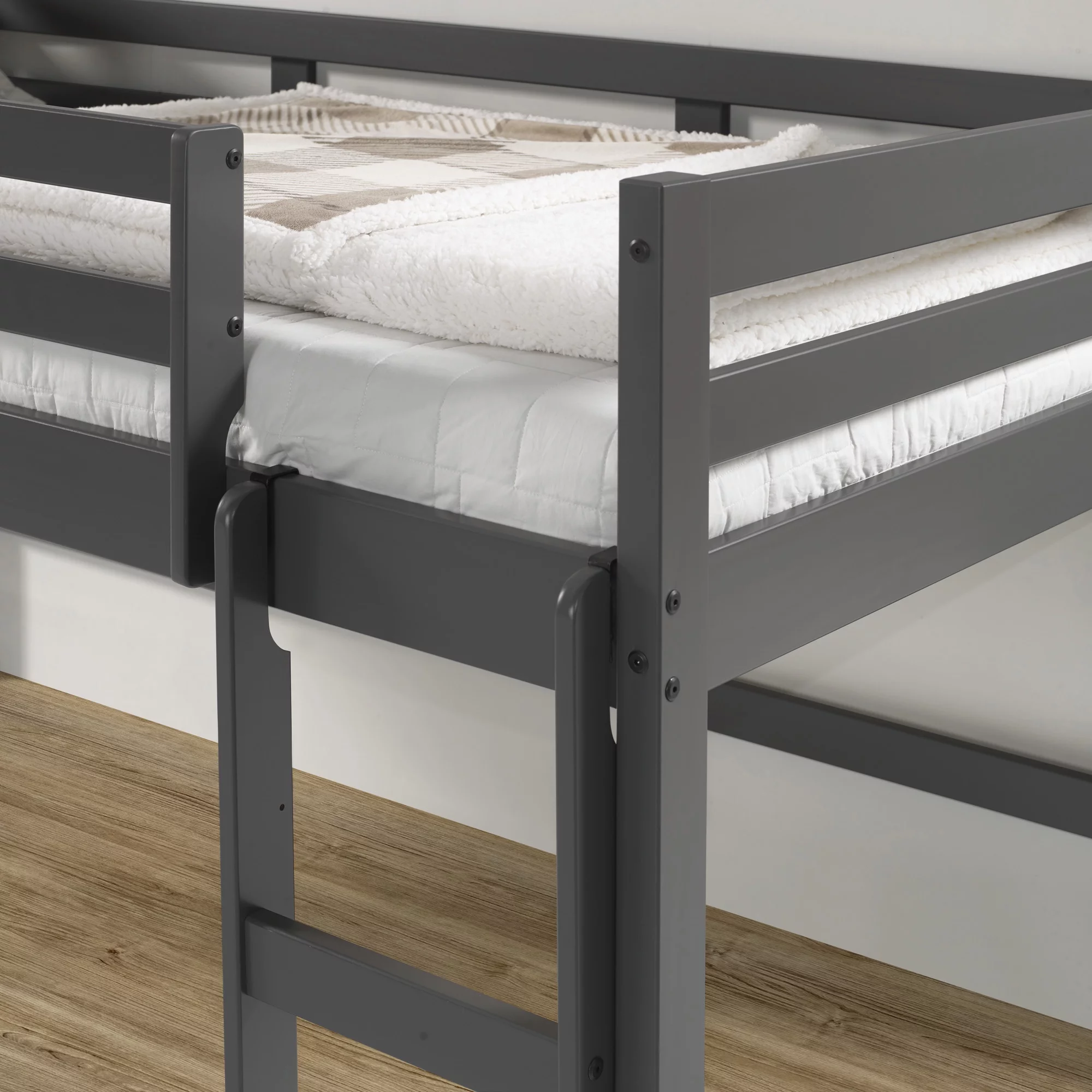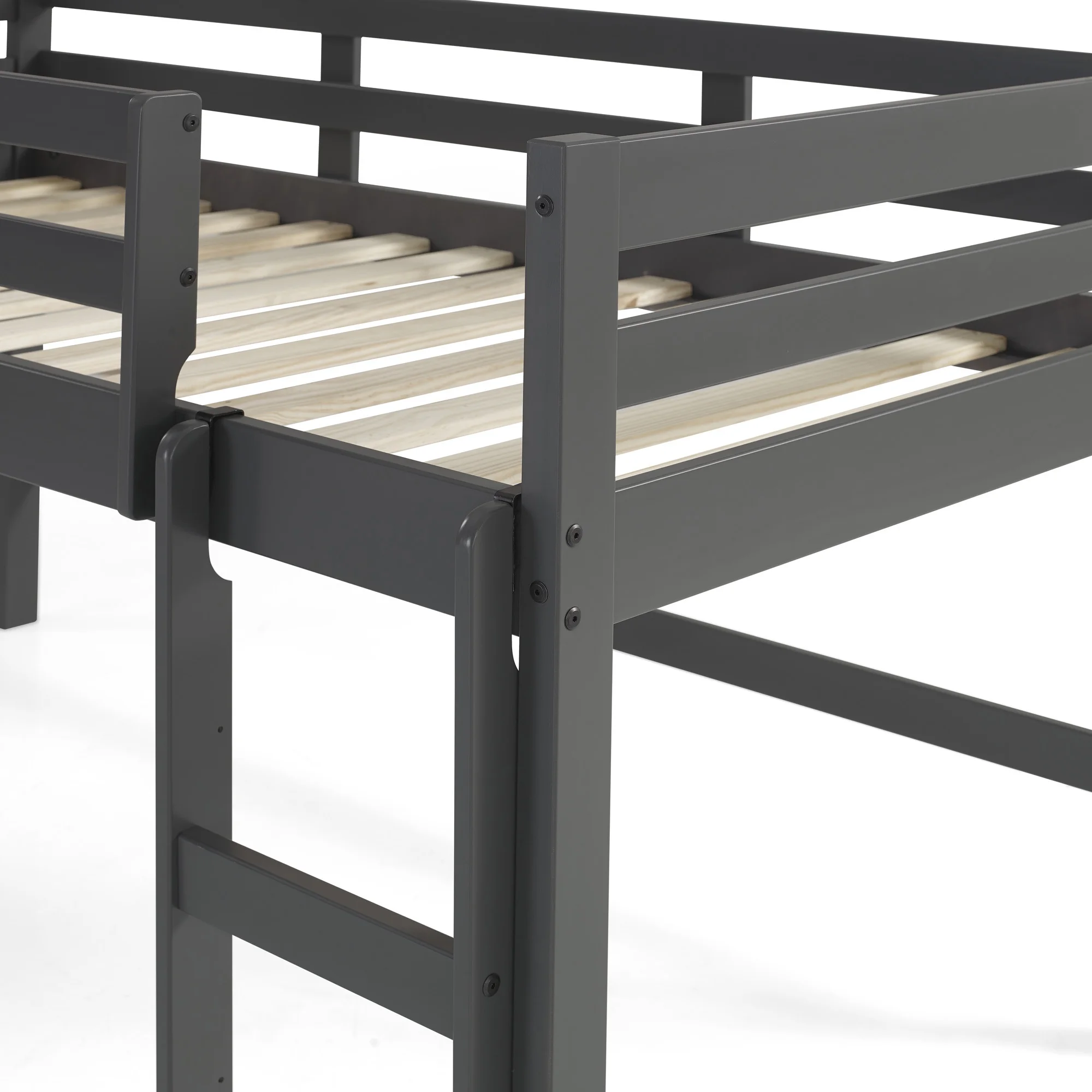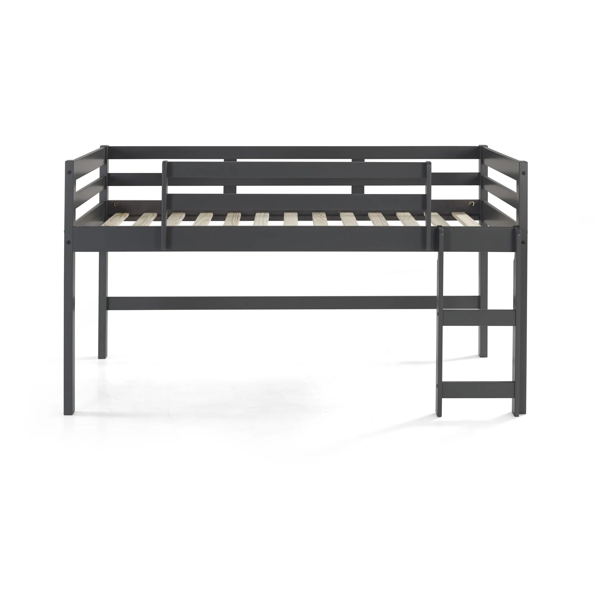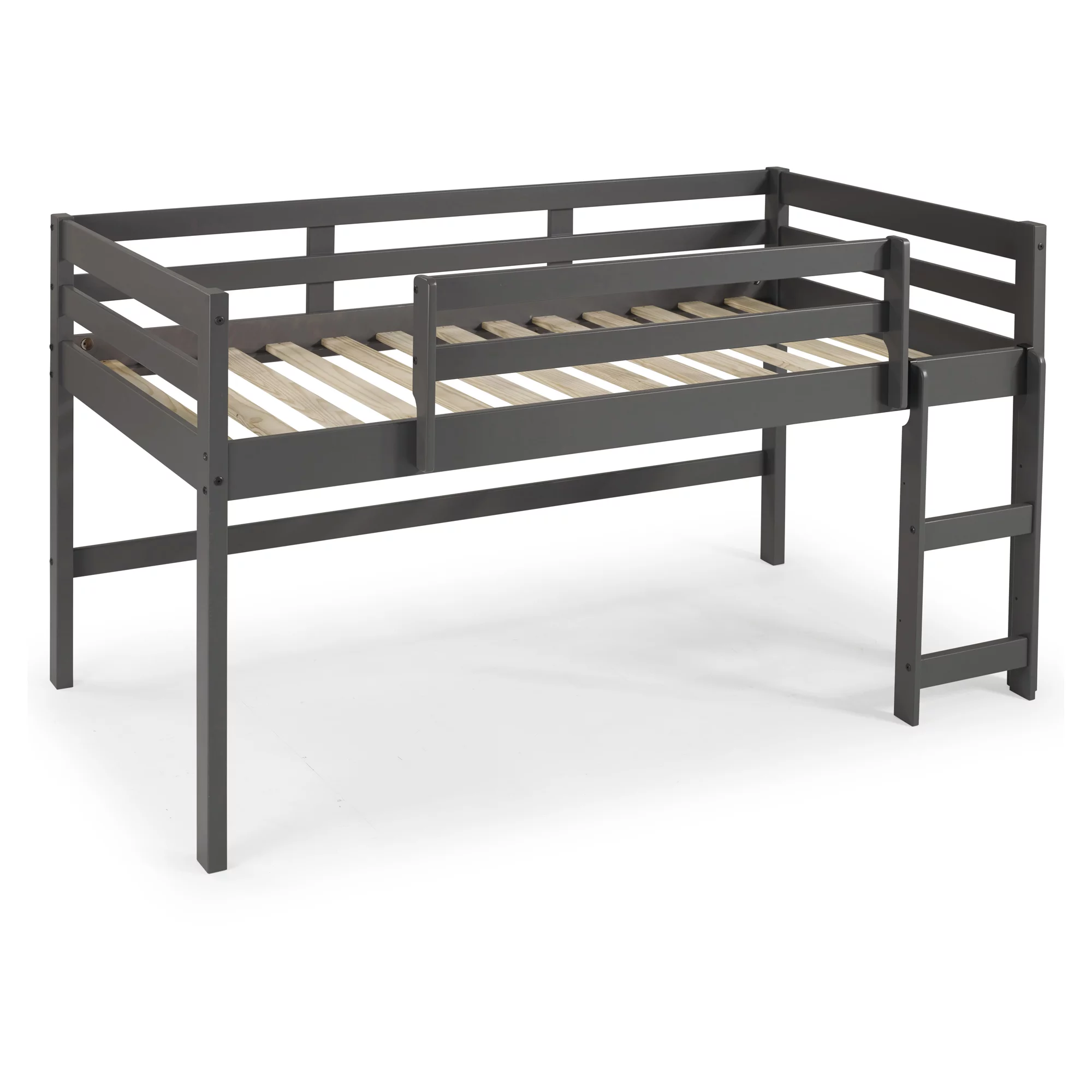 Dorel Living Harlan Wood Loft Bed with Ladder and GuardRail in Twin in Gray