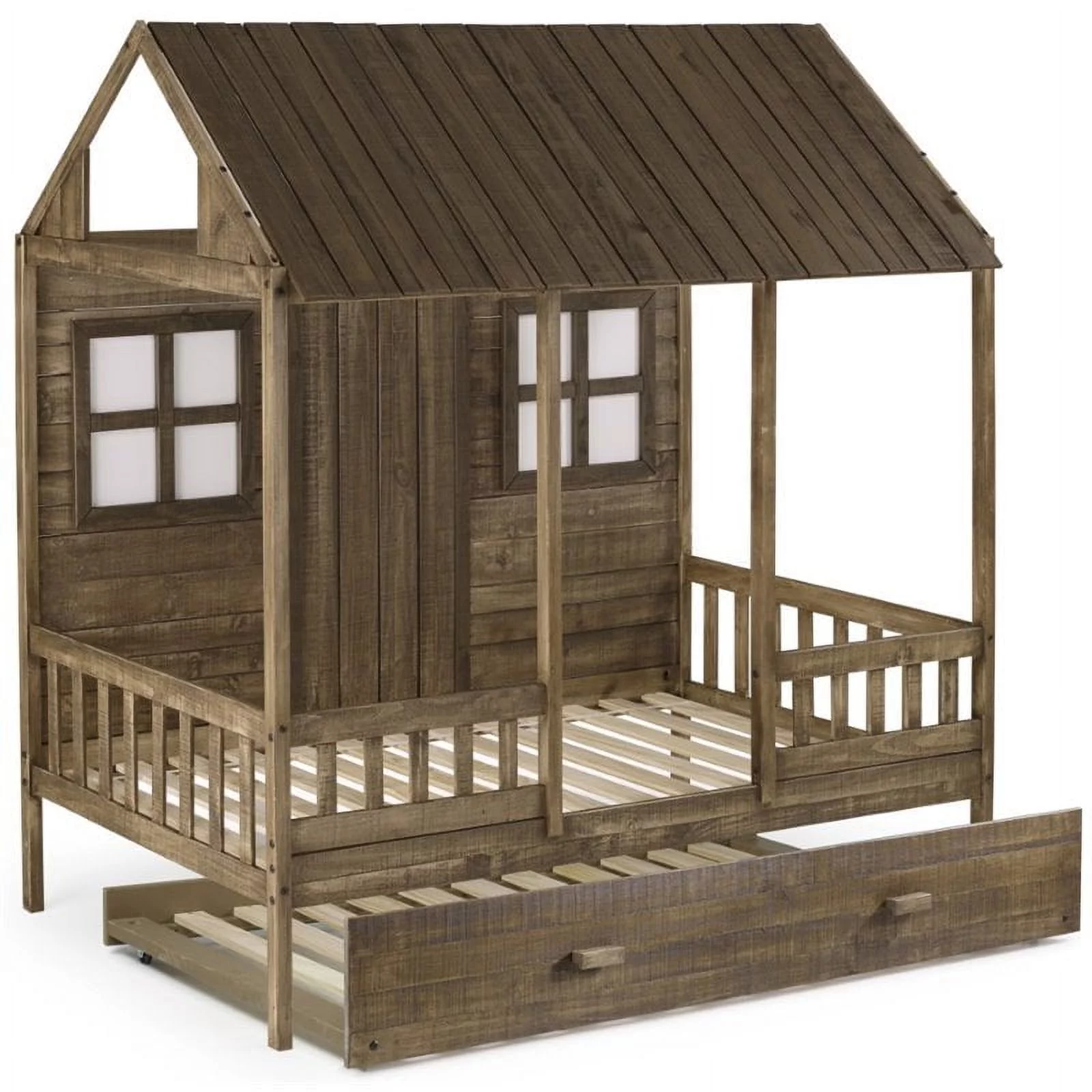 Rosebery Kids Twin Solid Wood Low Loft Bed with Trundle in Driftwood