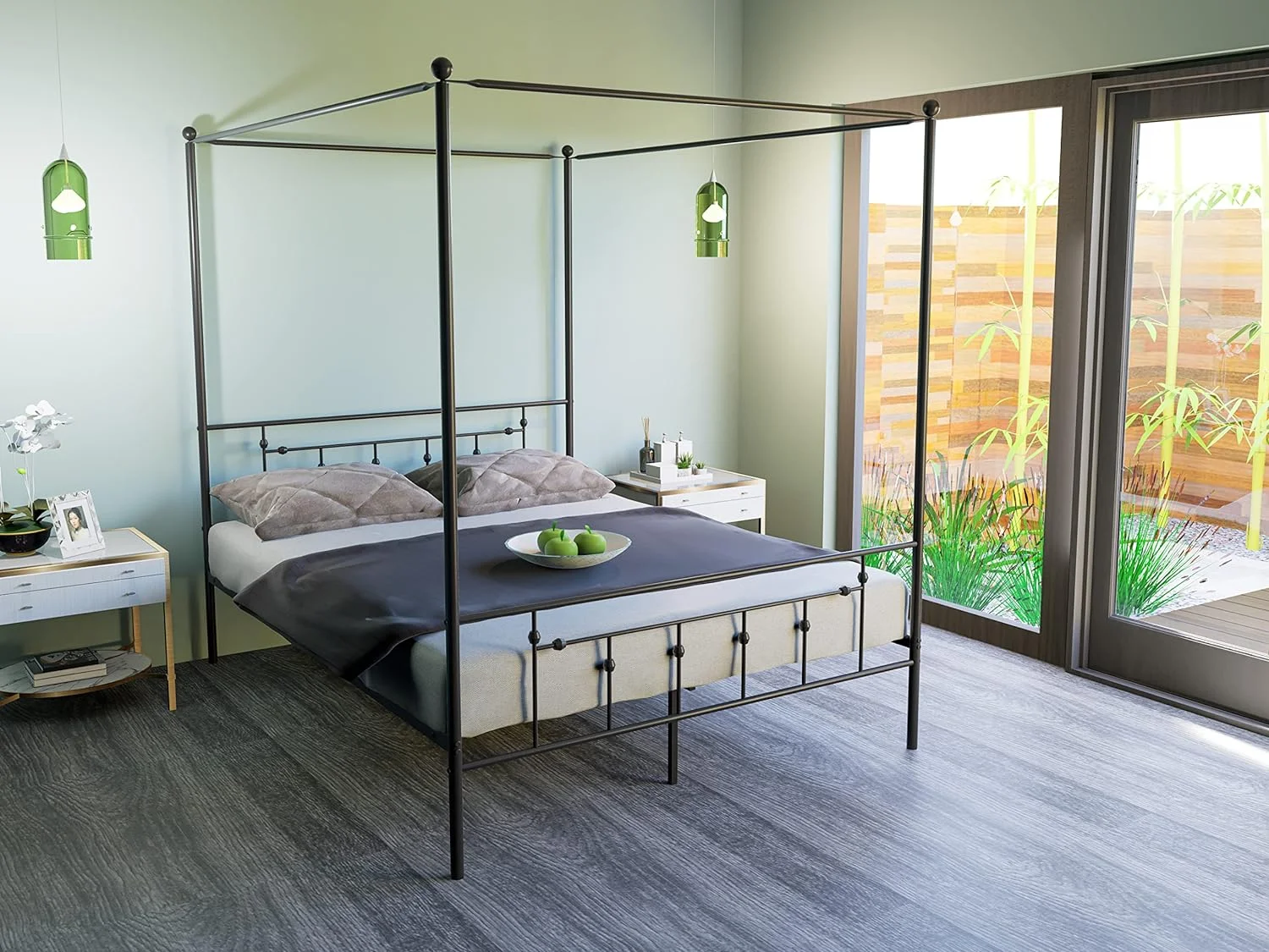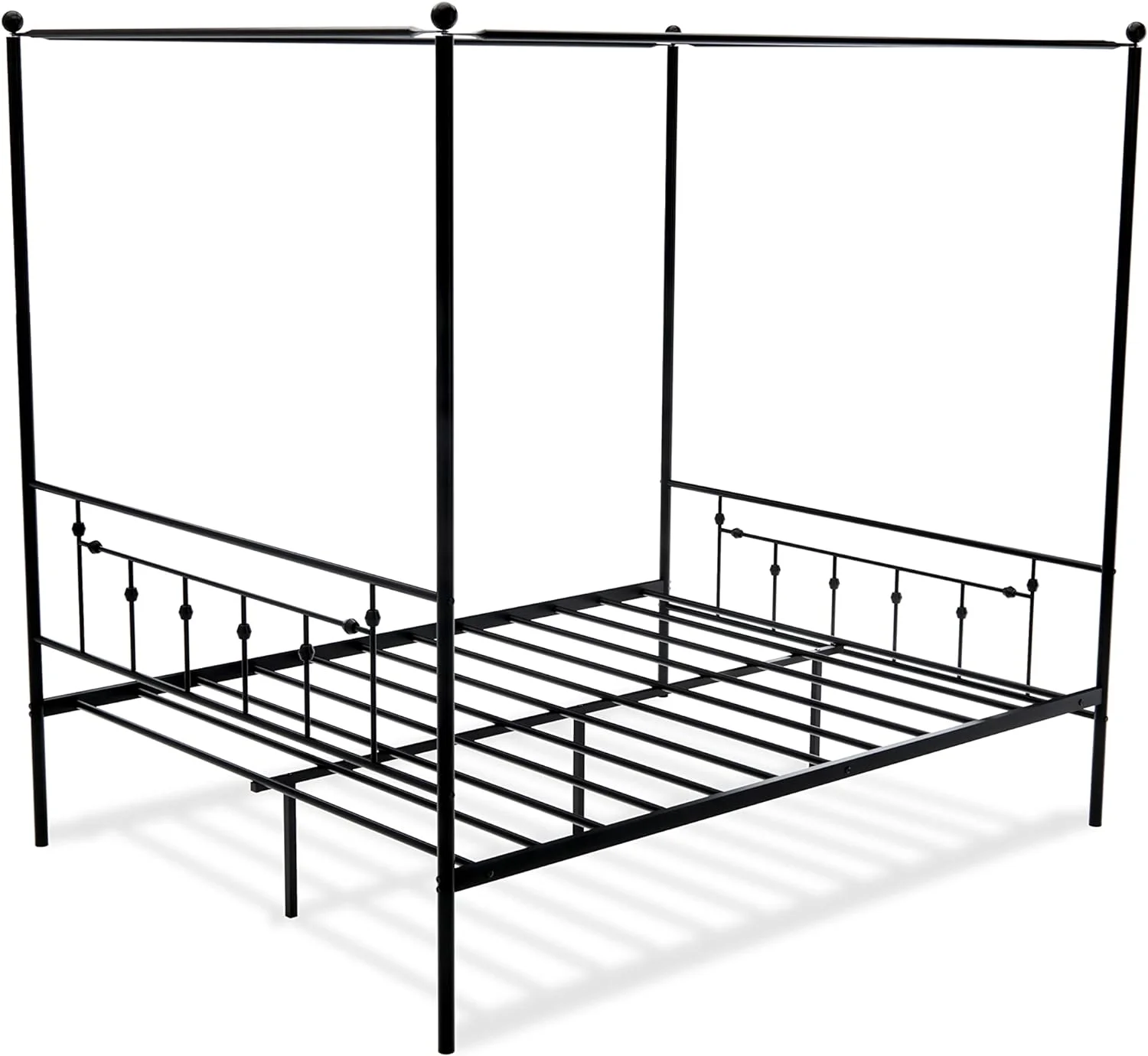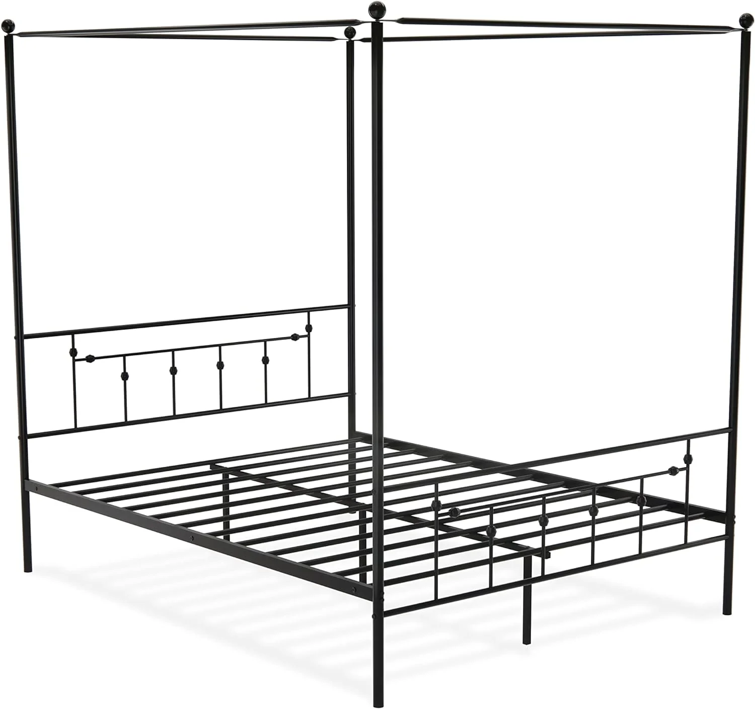 AQCBLK Annison Canopy Bed Wih Deluxe Headboard And Fooboard - Luxurious Meal Frame In Powder Coaing Black