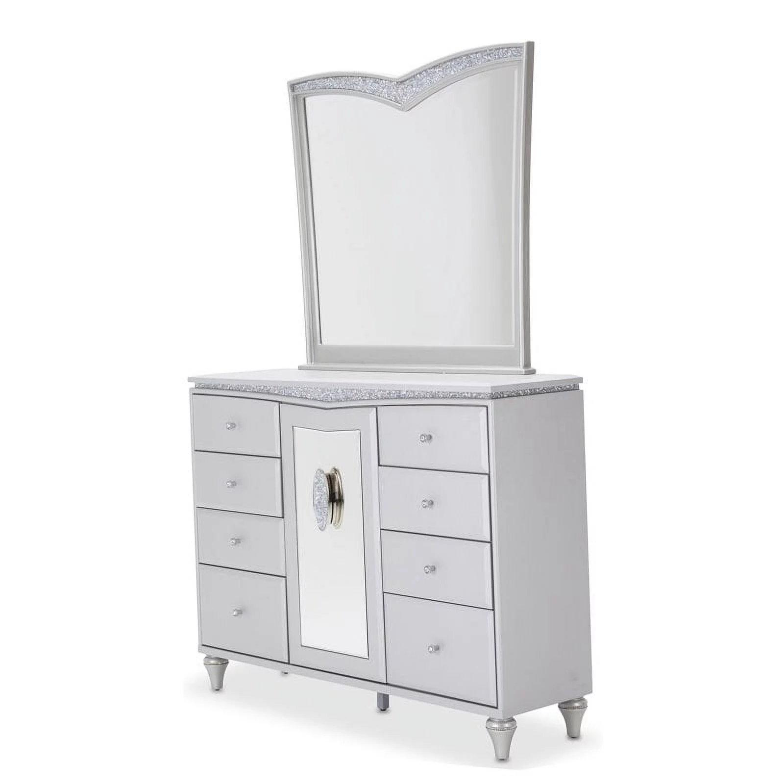 Maklaine Modern / Contemporary Wood & Glass Dresser w/ Mirror in Dove Gray