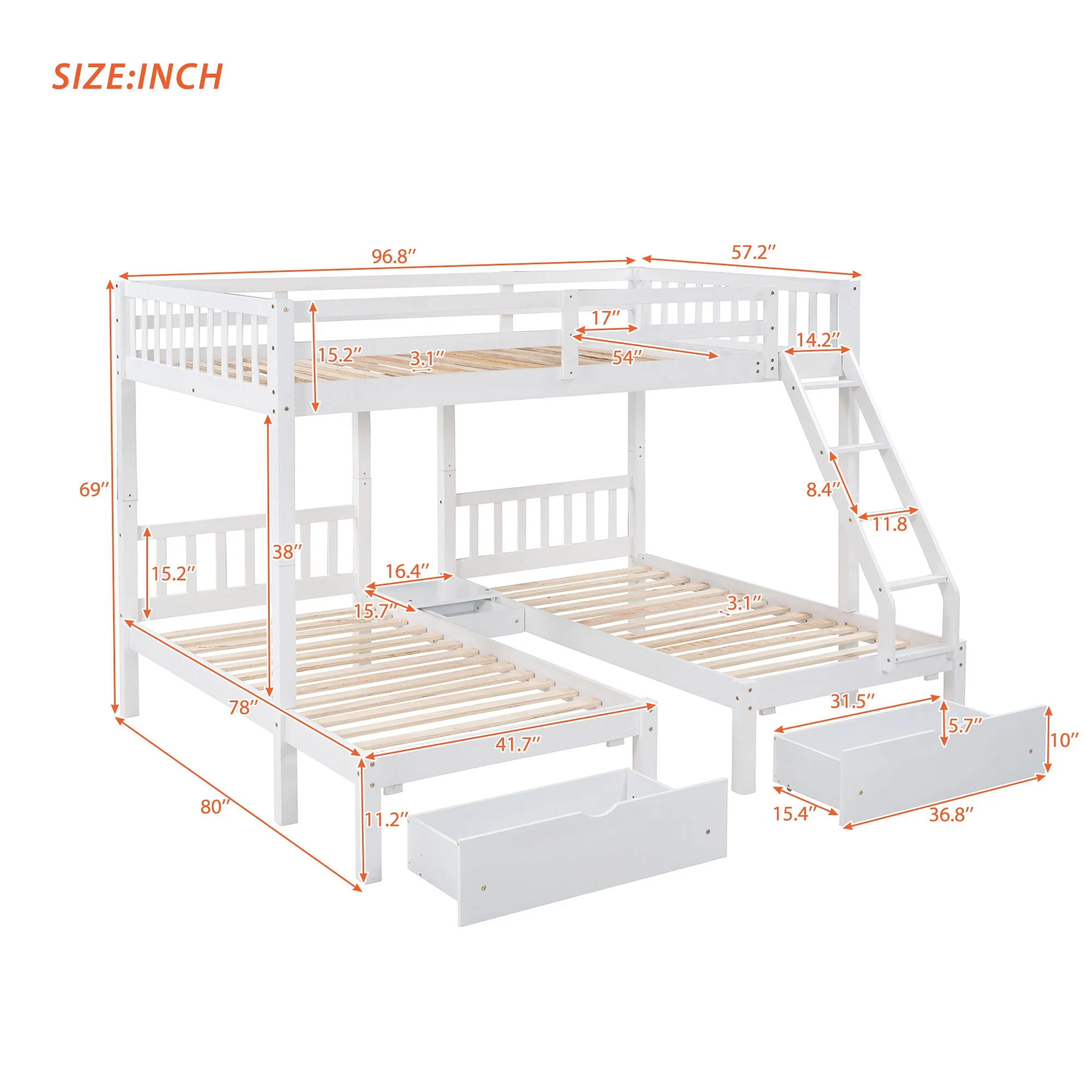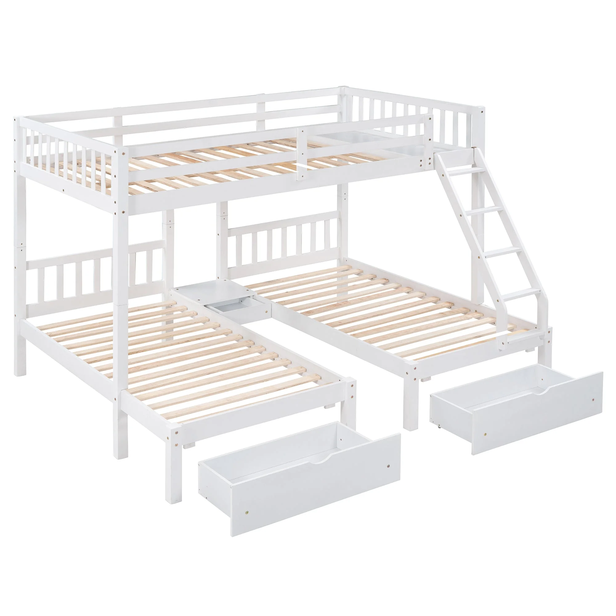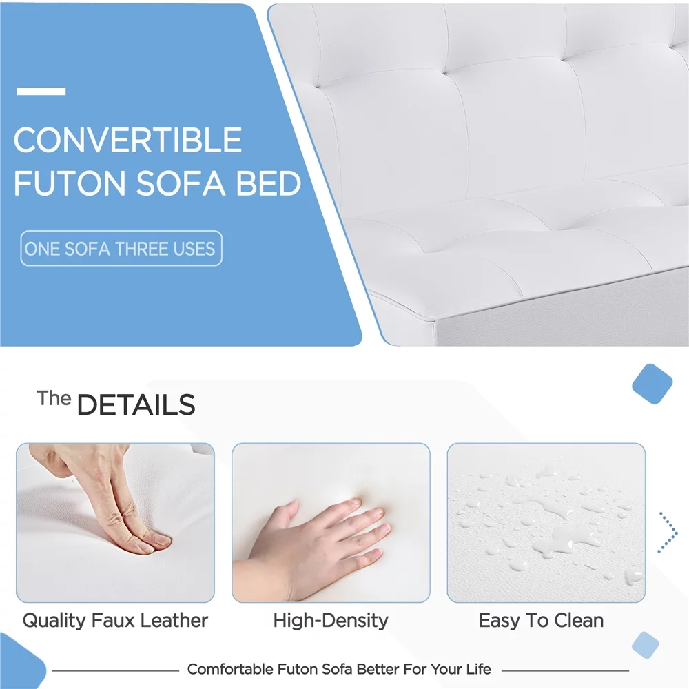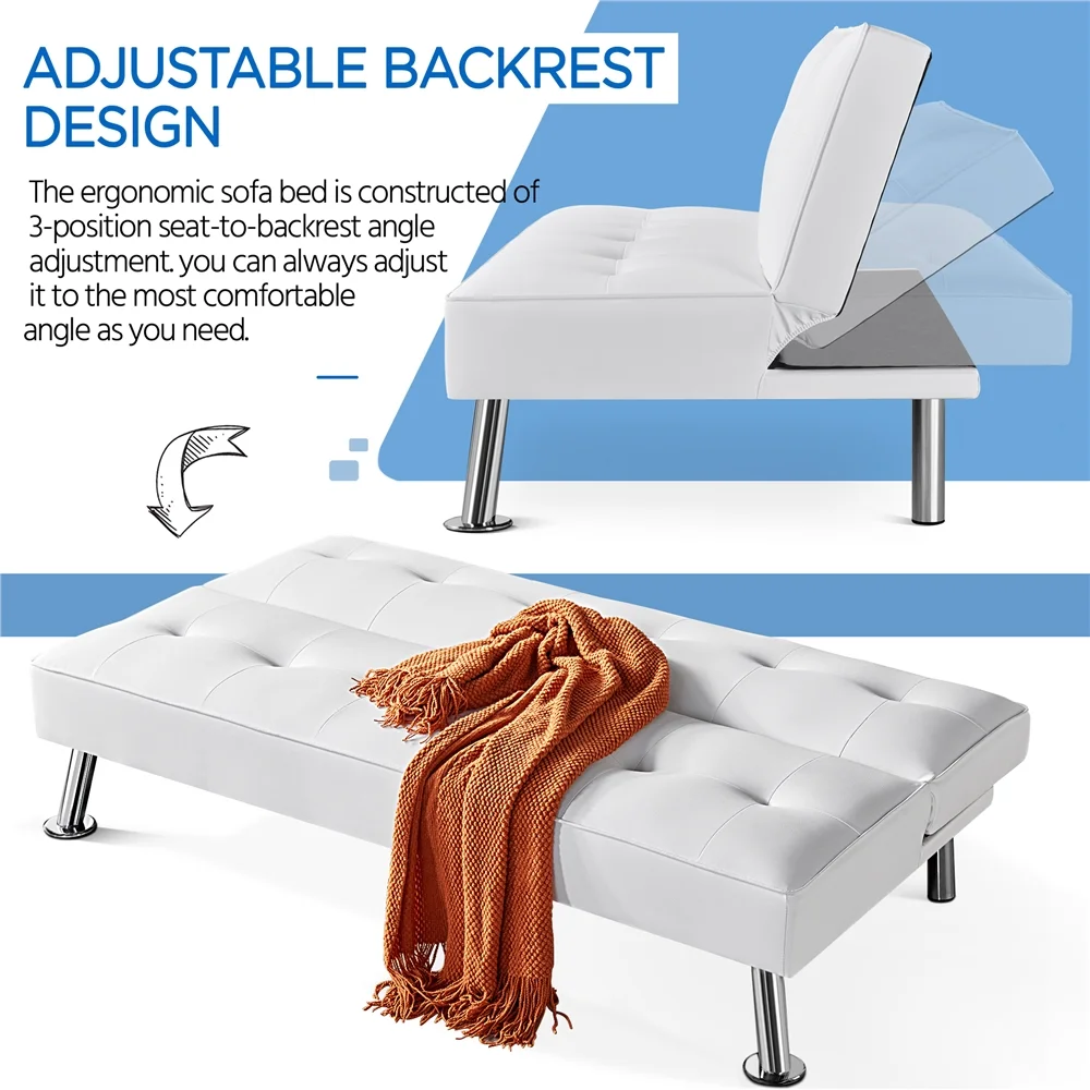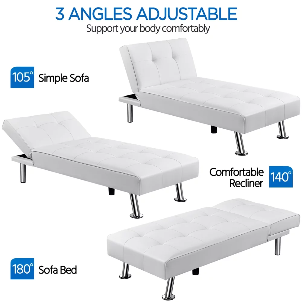 Topeakmart Faux Leather Chaise Lounge+Convertible Futon Sofa Bed with Chrome Metal Legs, White