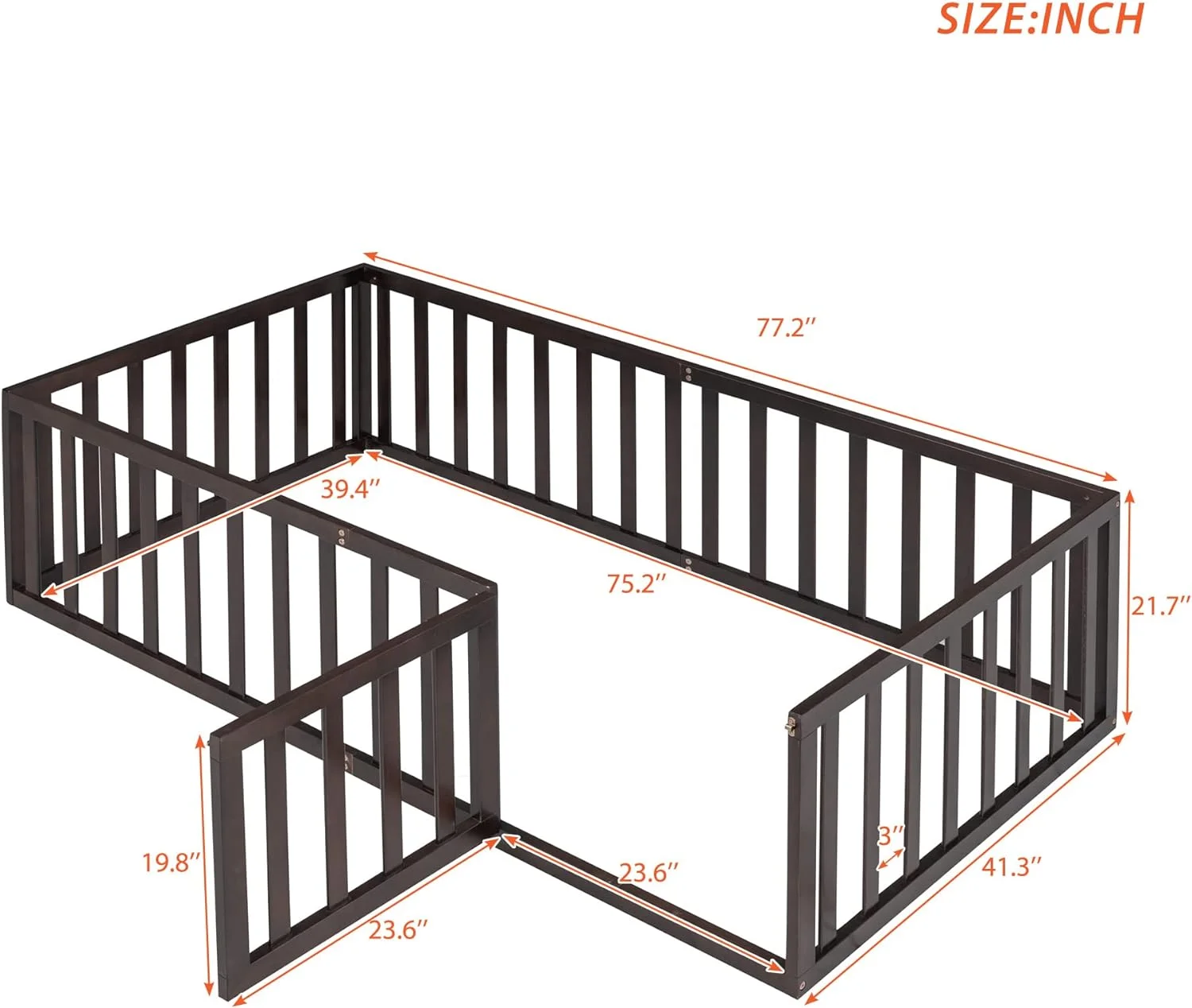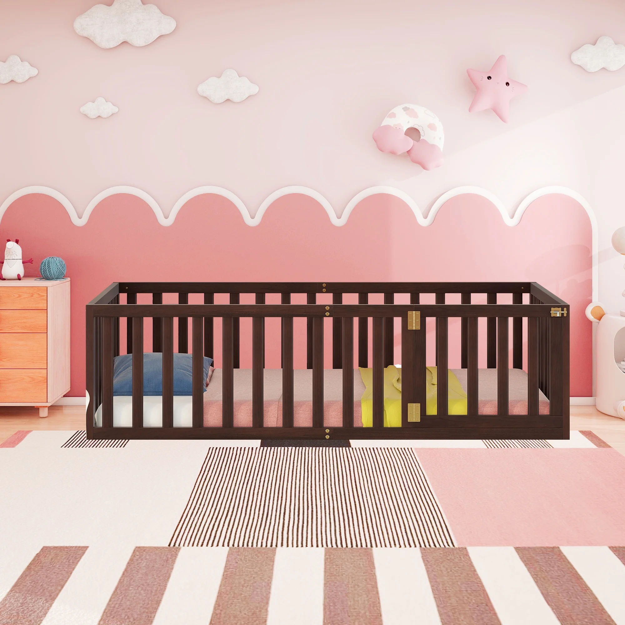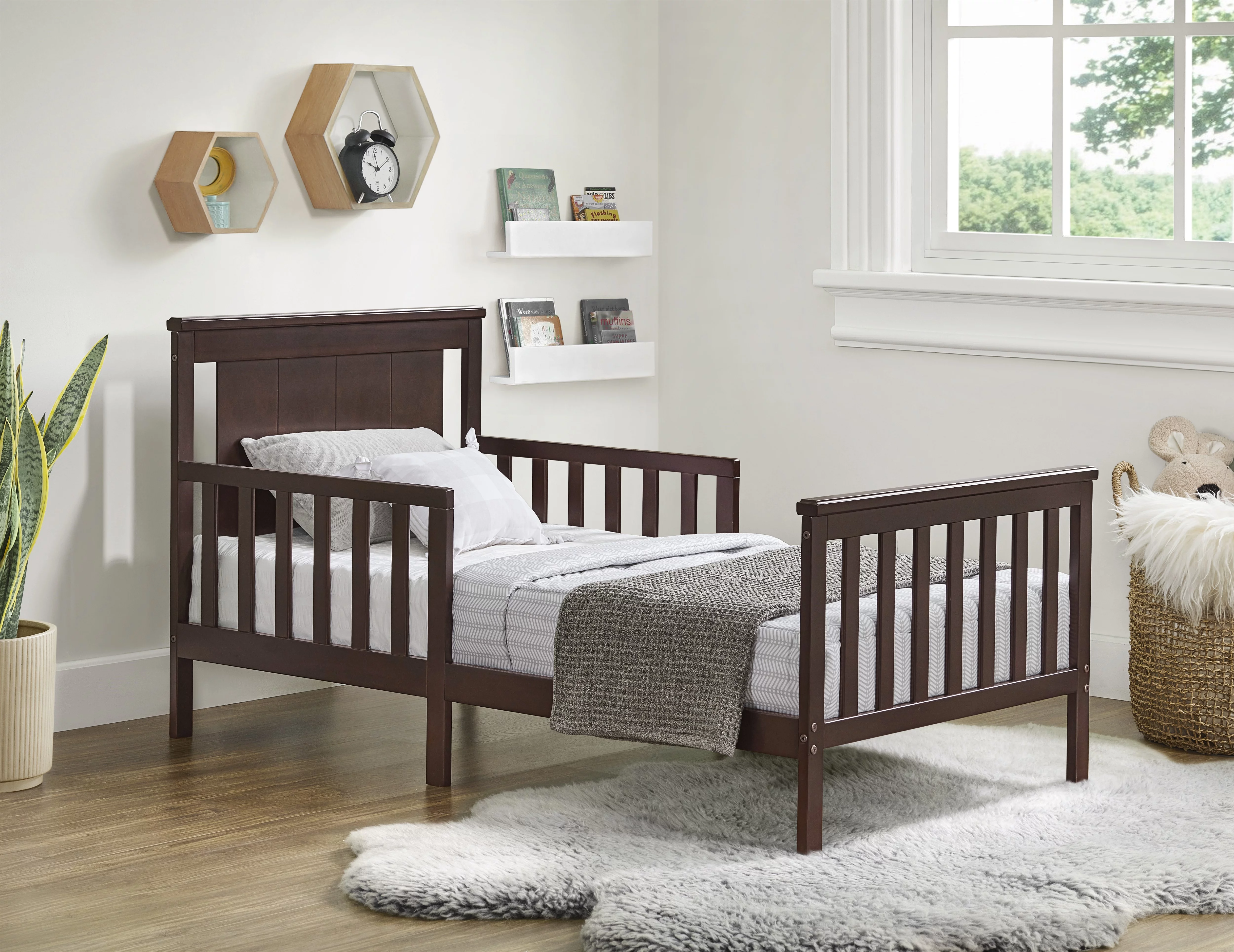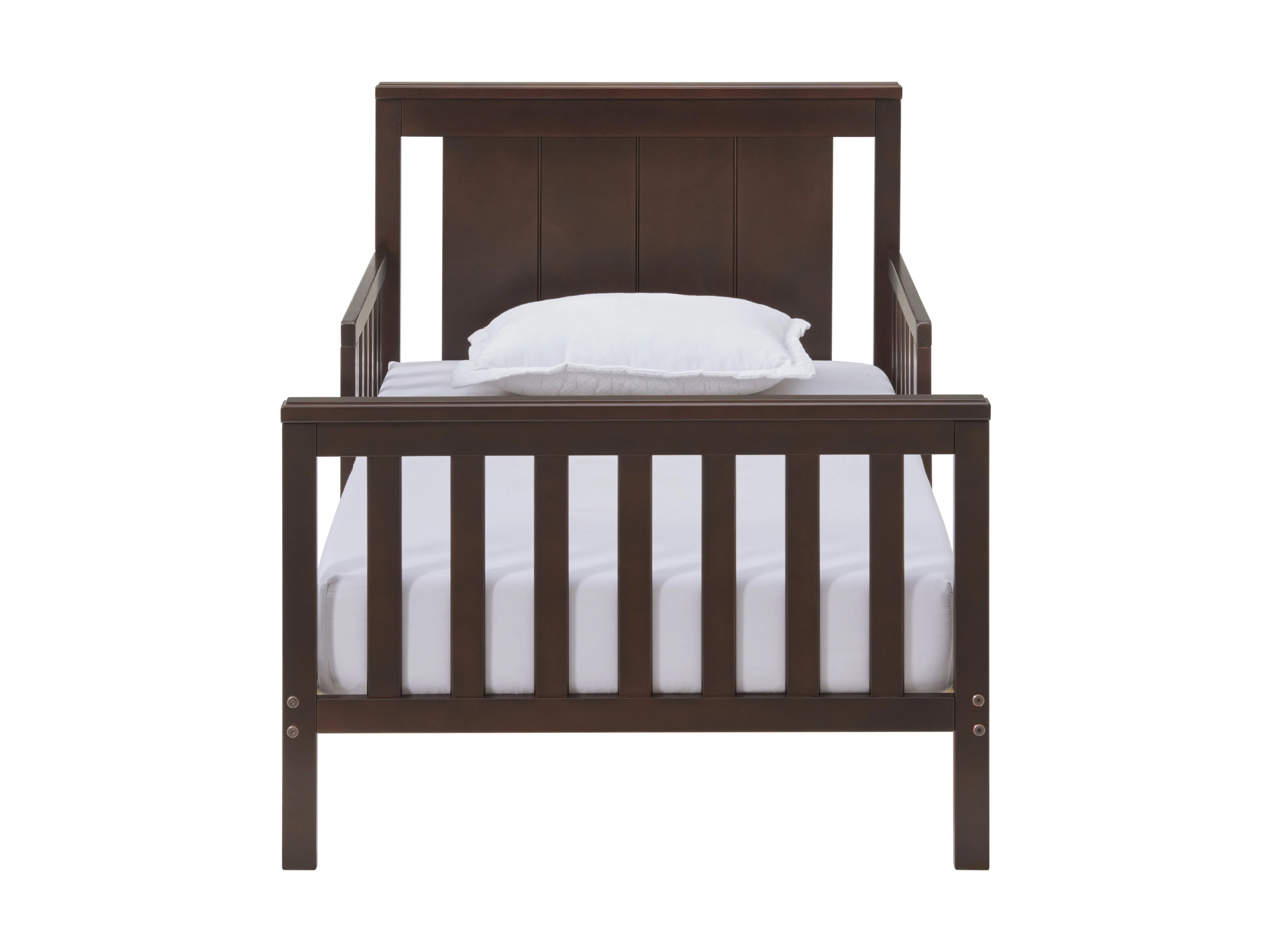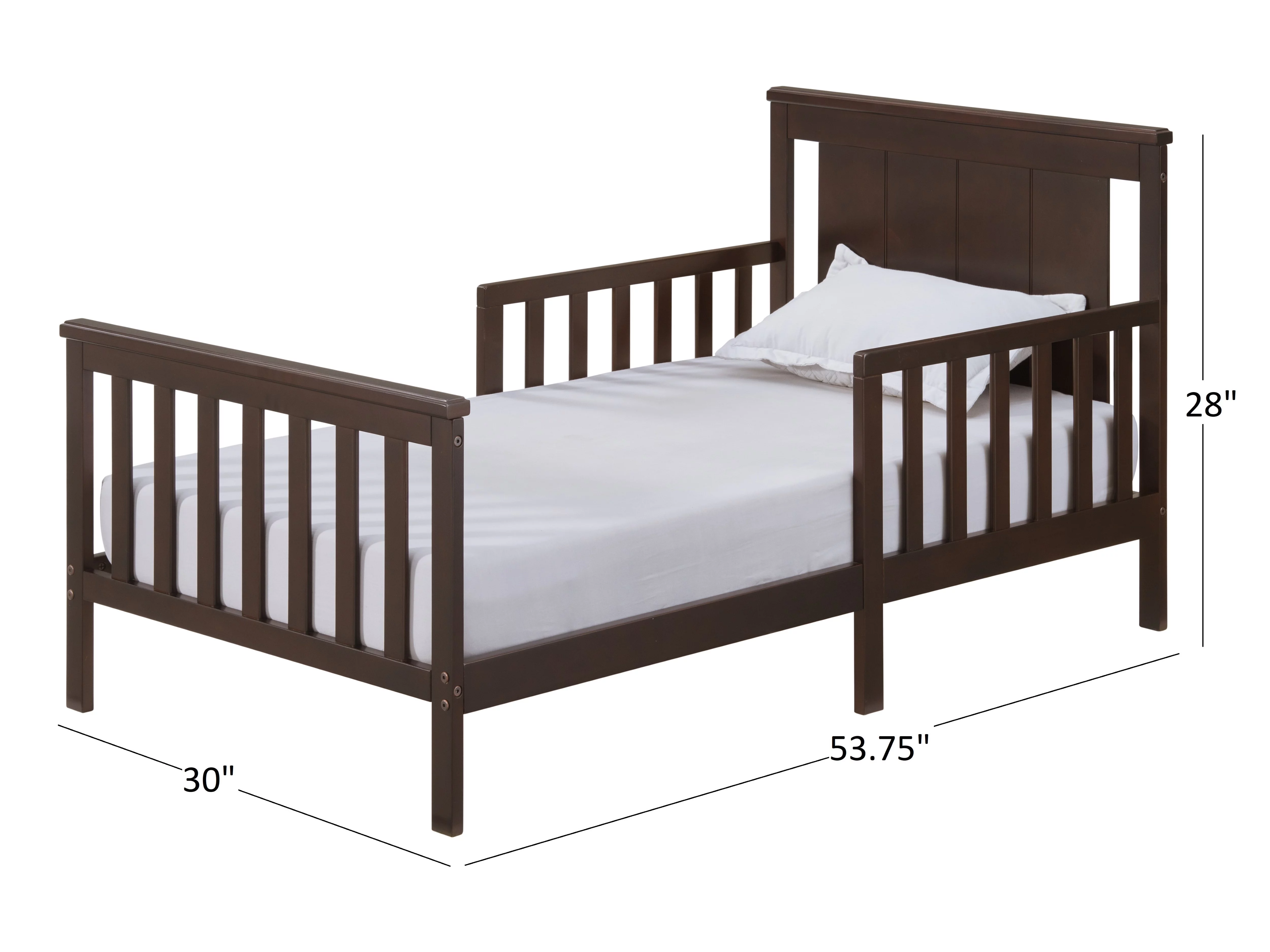 Oxford Baby Lazio Wood Frame Toddler Bed with Guardrails and Straight-Line Headboard, Espresso Brown