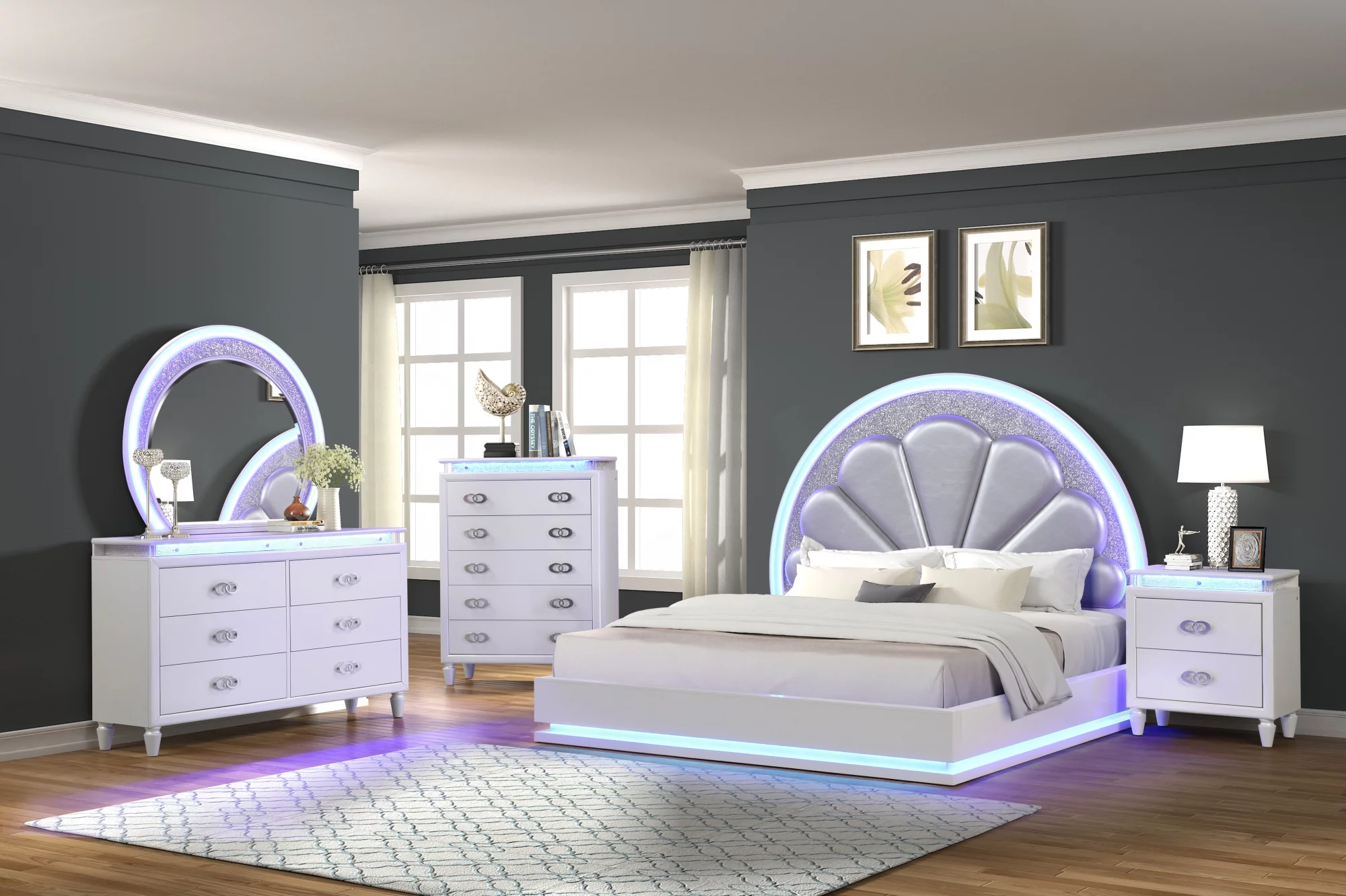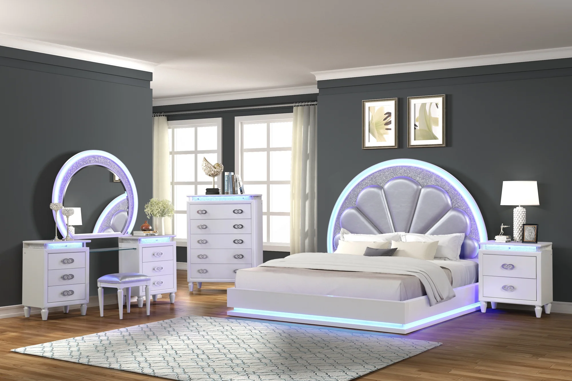 YLIME-SMOOTH SILVER-KB W- LED Ylime Smooth Silver King Size Bed with LED