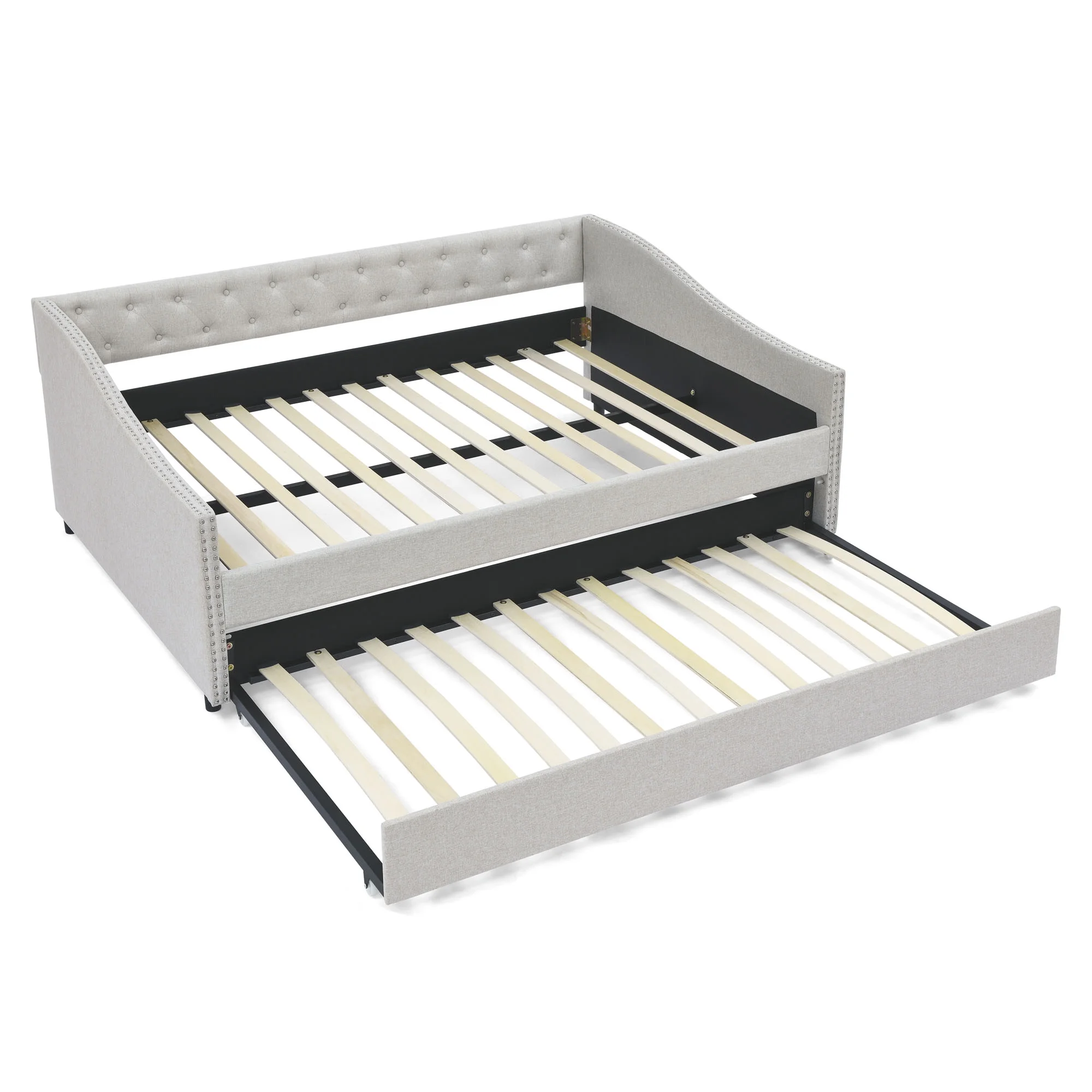 Elegant Luxurious Full Size Polyester Fabric Upholstered Daybed with Twin Size Trundle Bed, Beige