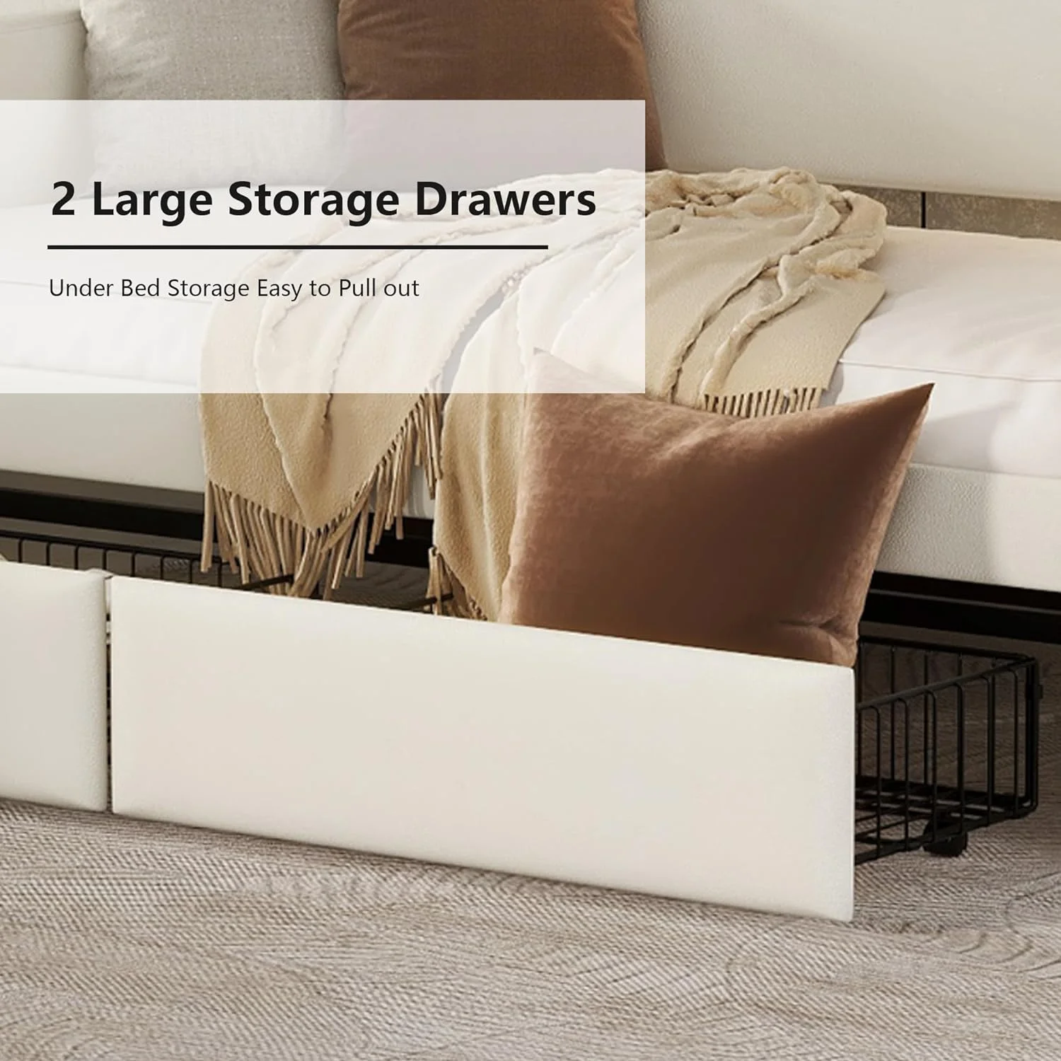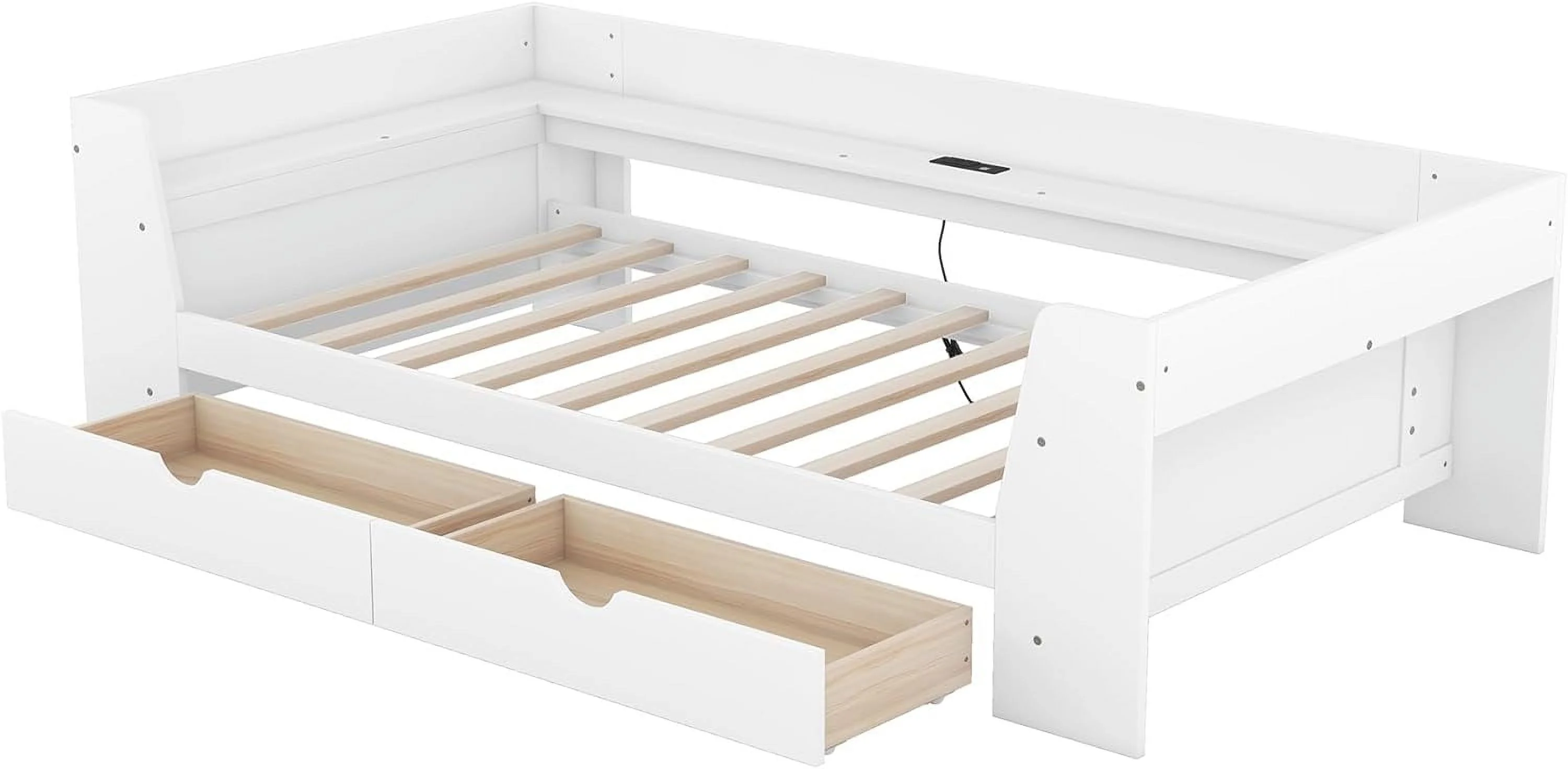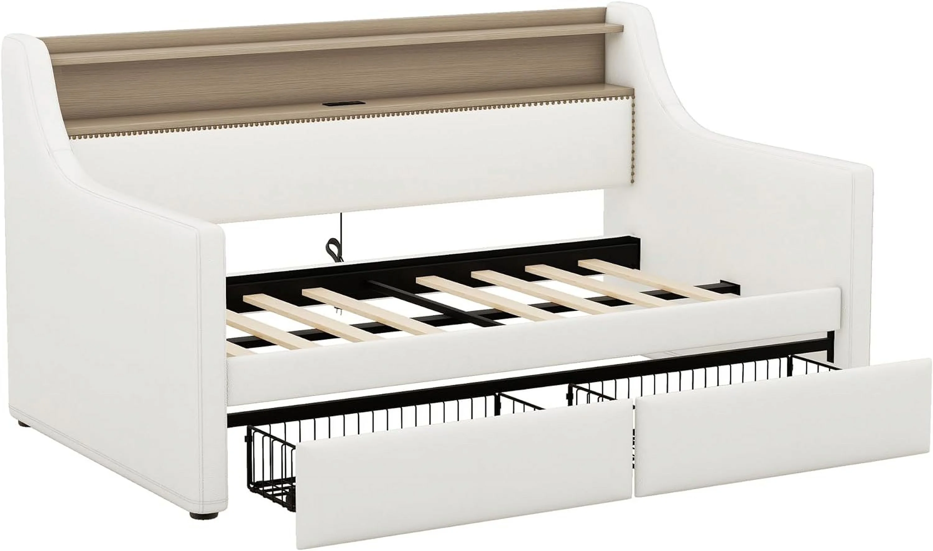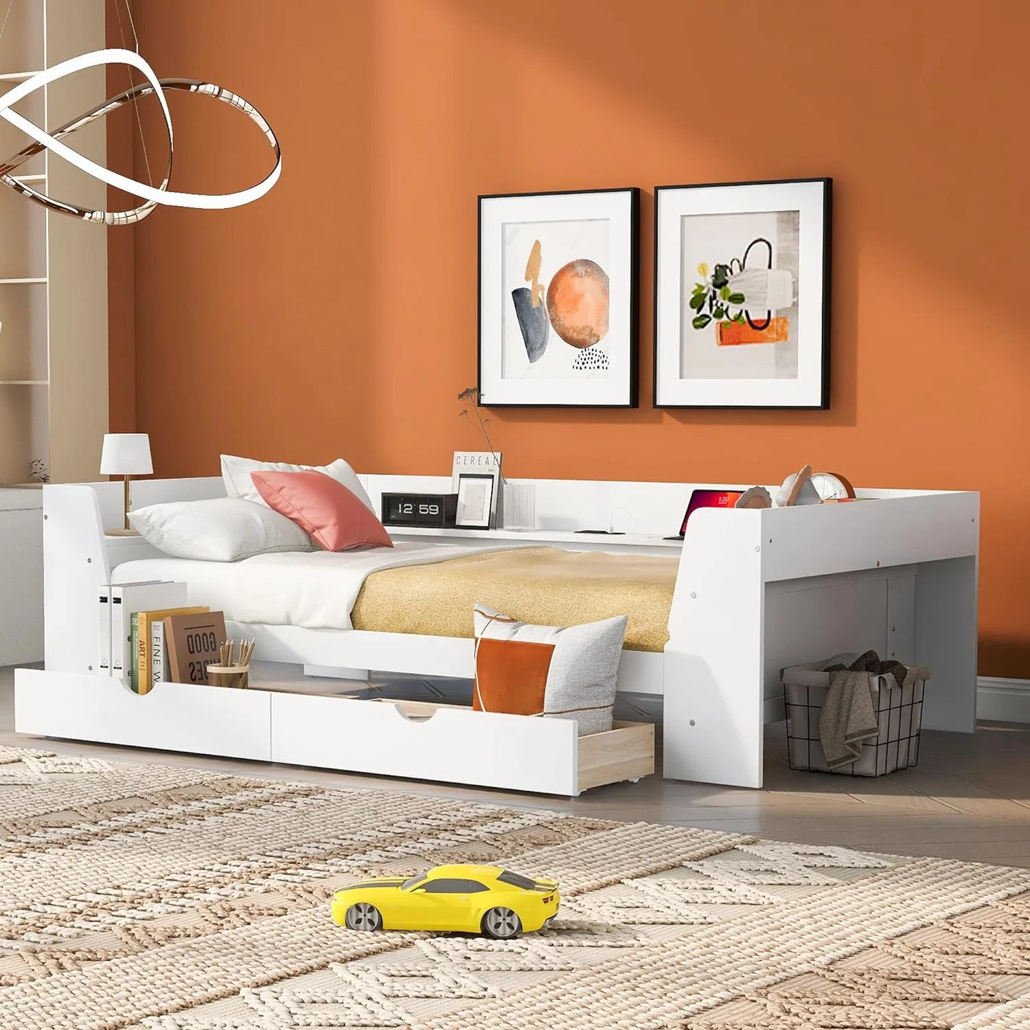 Size Daybed With Shelves, Drawers And Built-In Charging Station, White (, White)