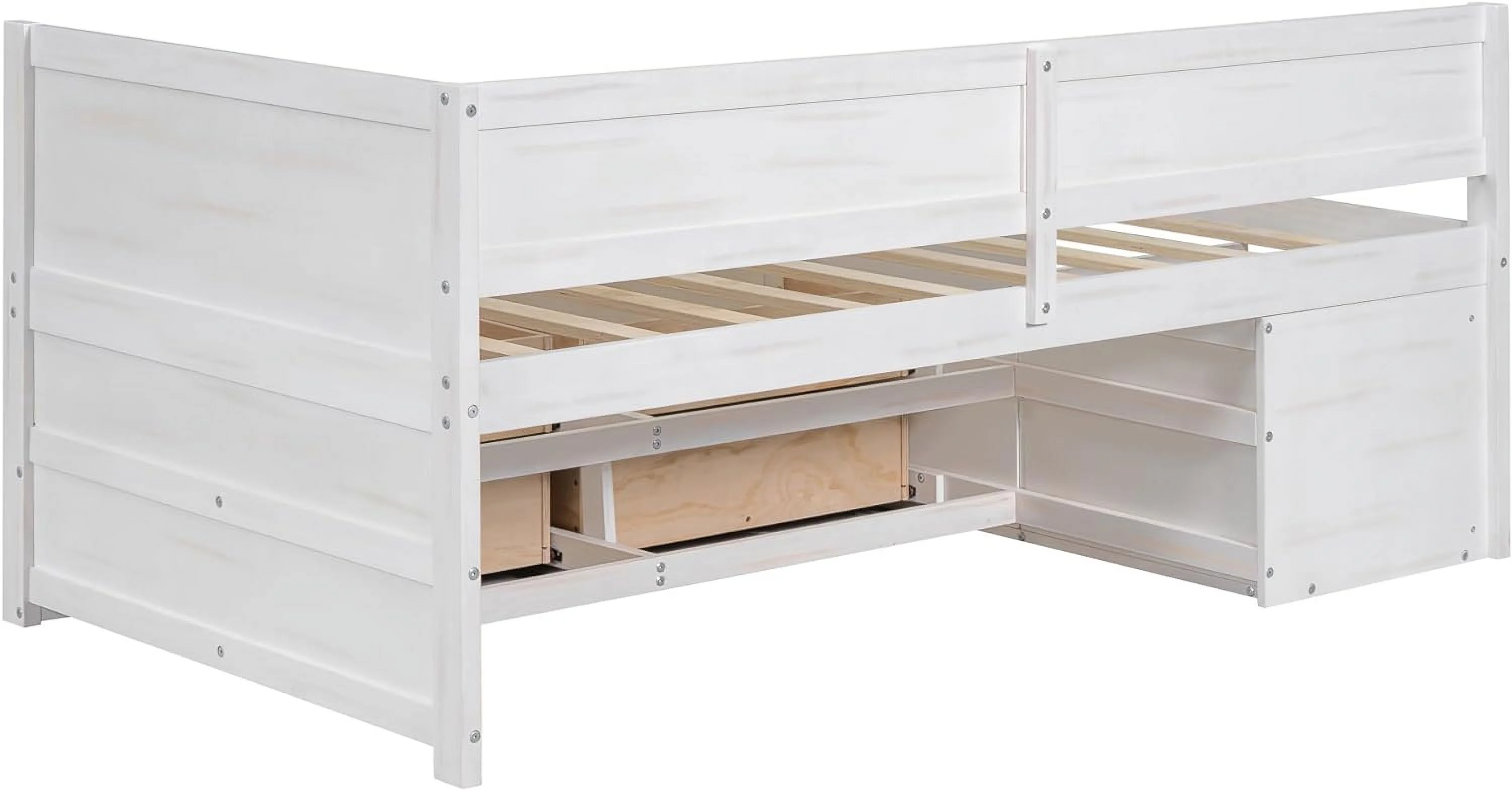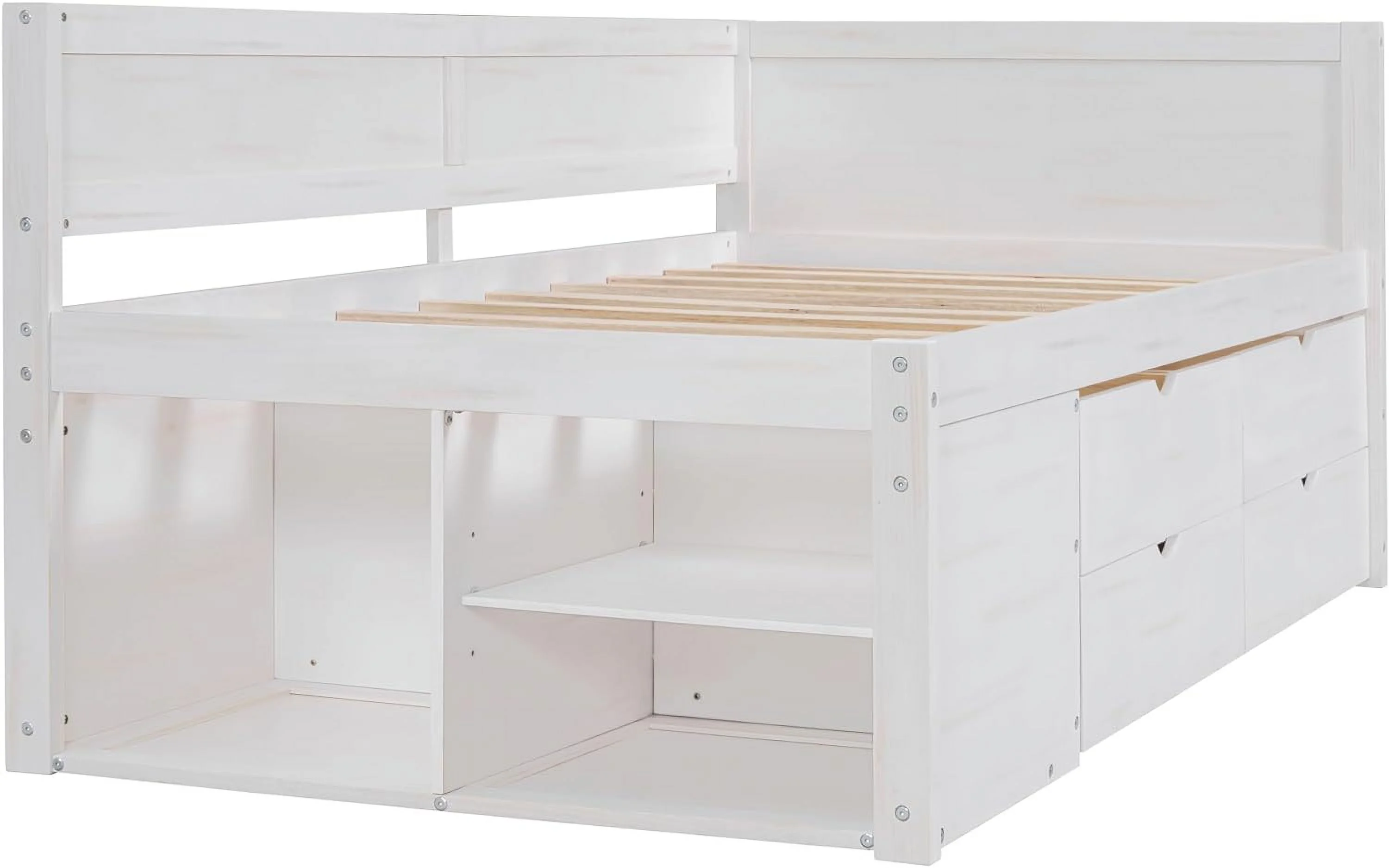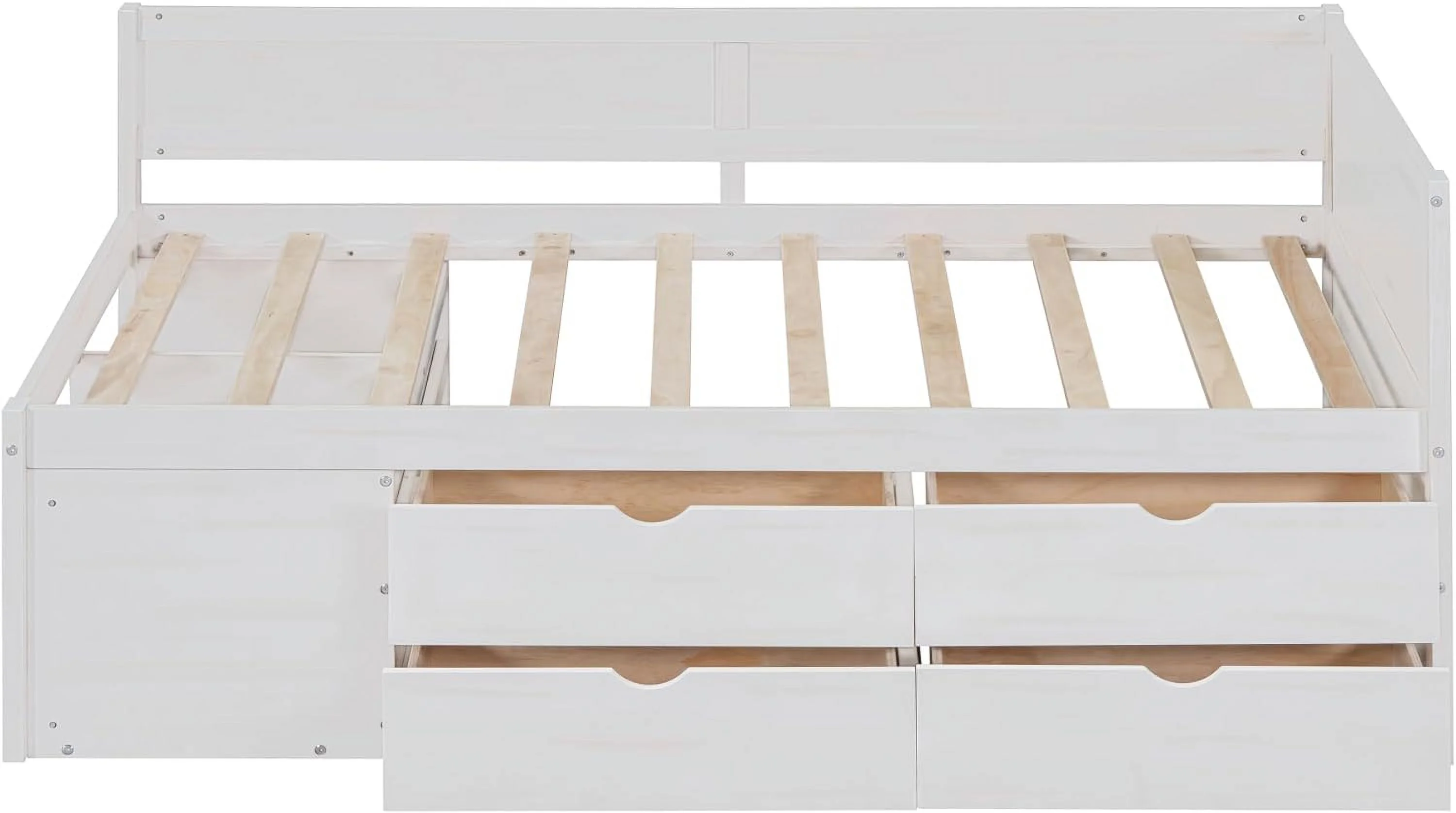 Size Daybed With 4 Pull-Out Drawers Drawers Ad 3 Fuctioig Shelves, Woode Day Bed Frame With Storage,o Box Sprig Required,White