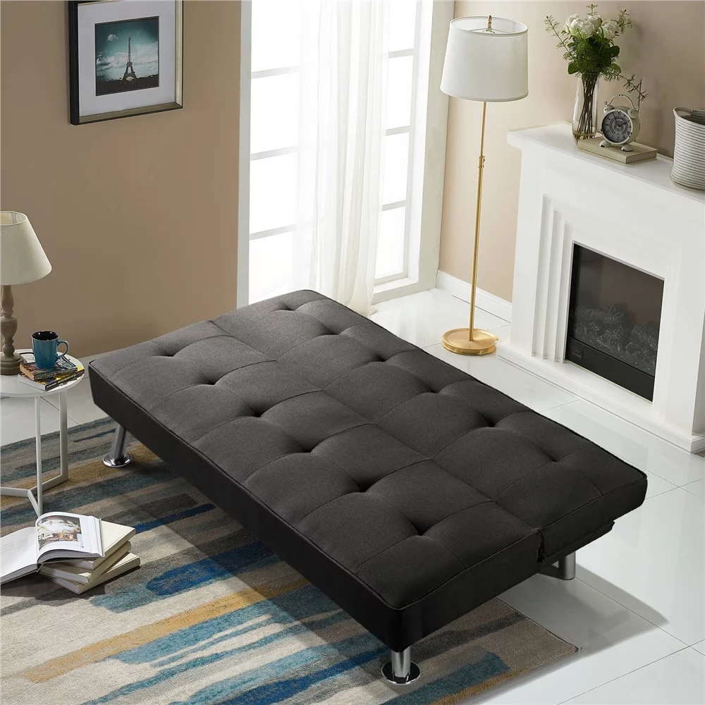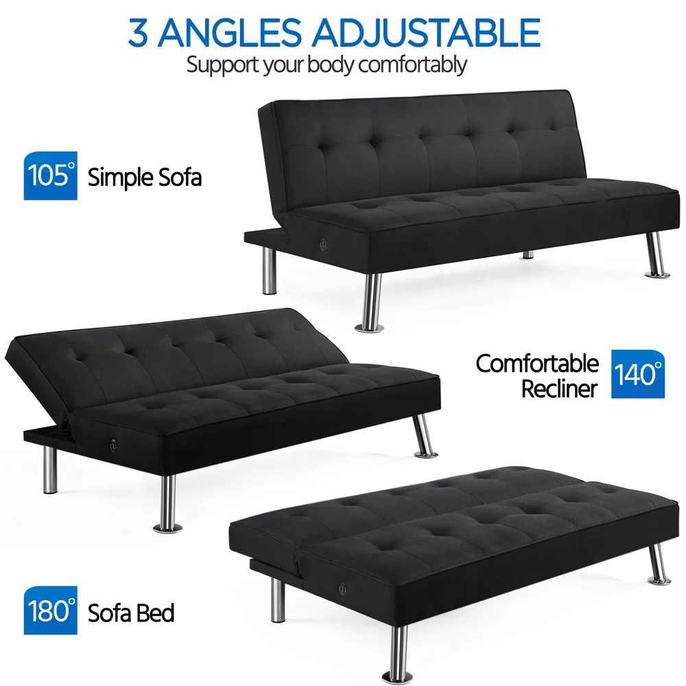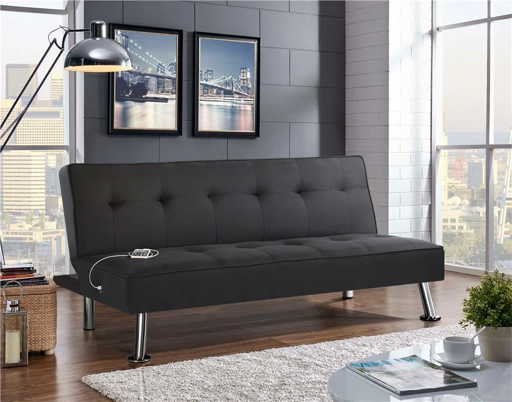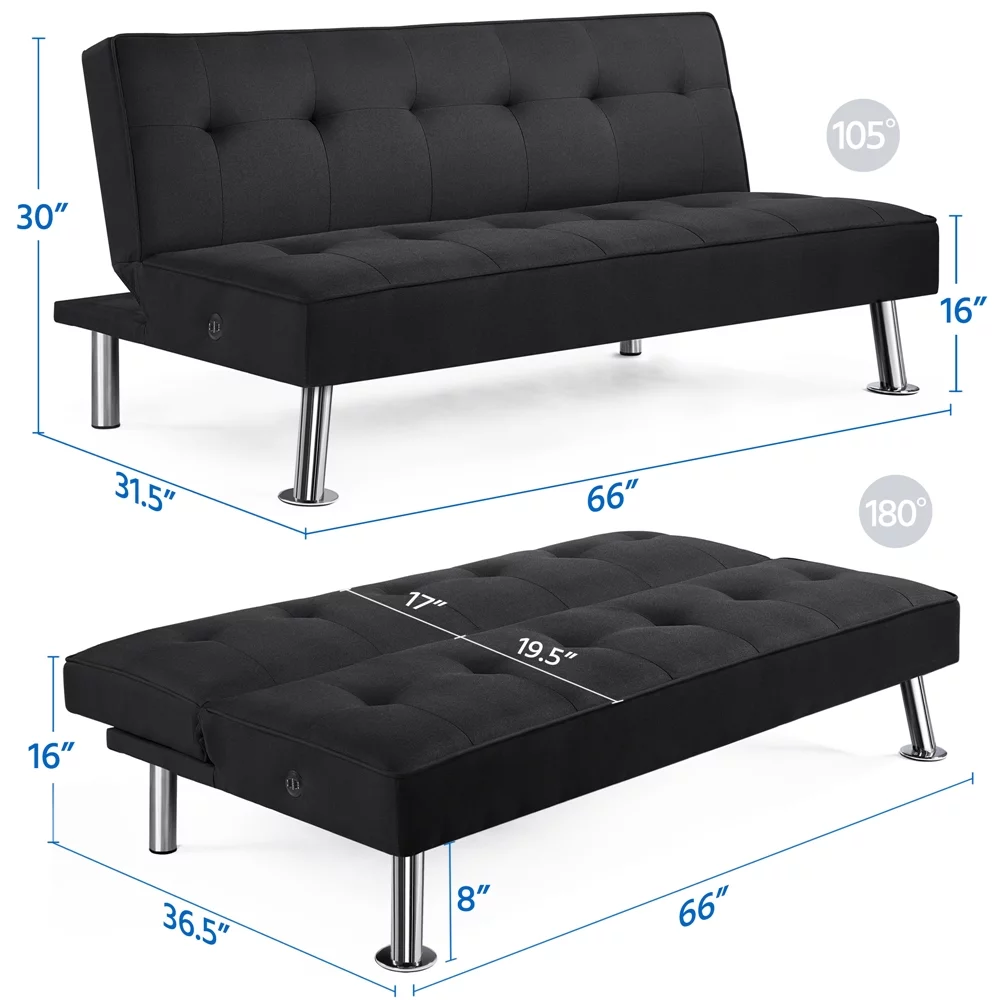 Yaheetech Convertible Futon Sofa Bed w/ USB Ports, 772lb Weight Limit, Black
