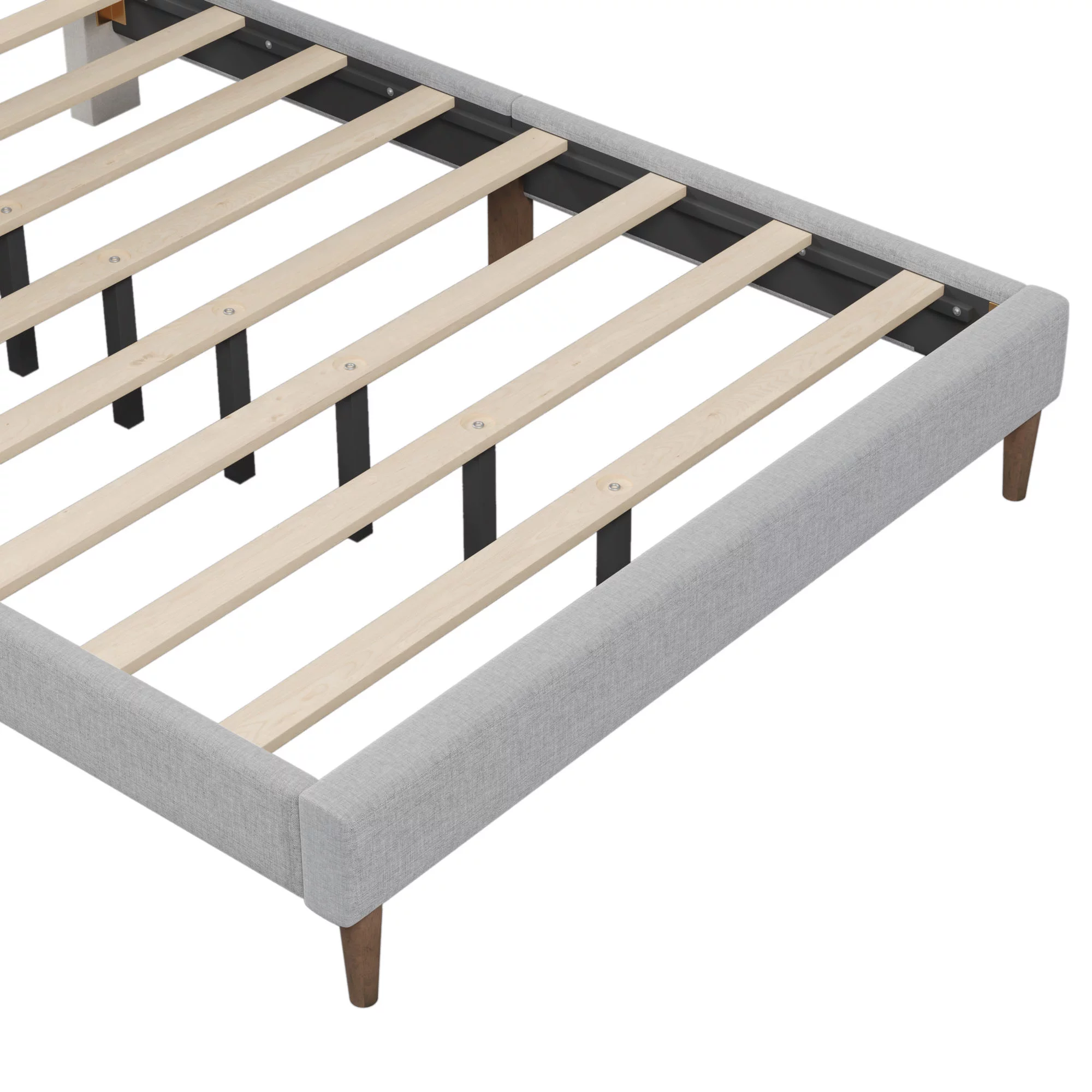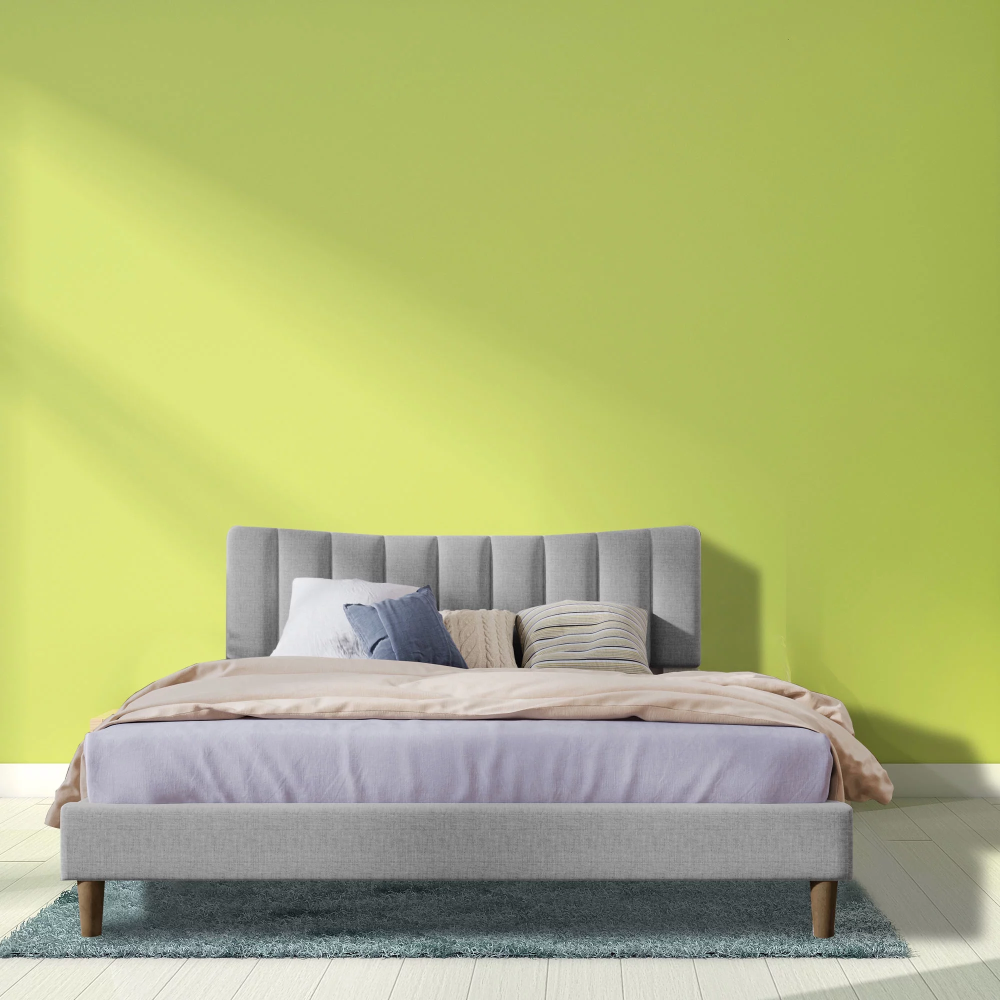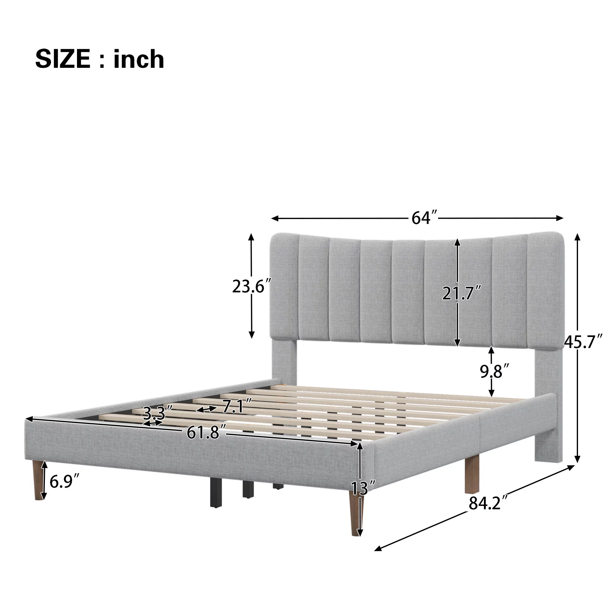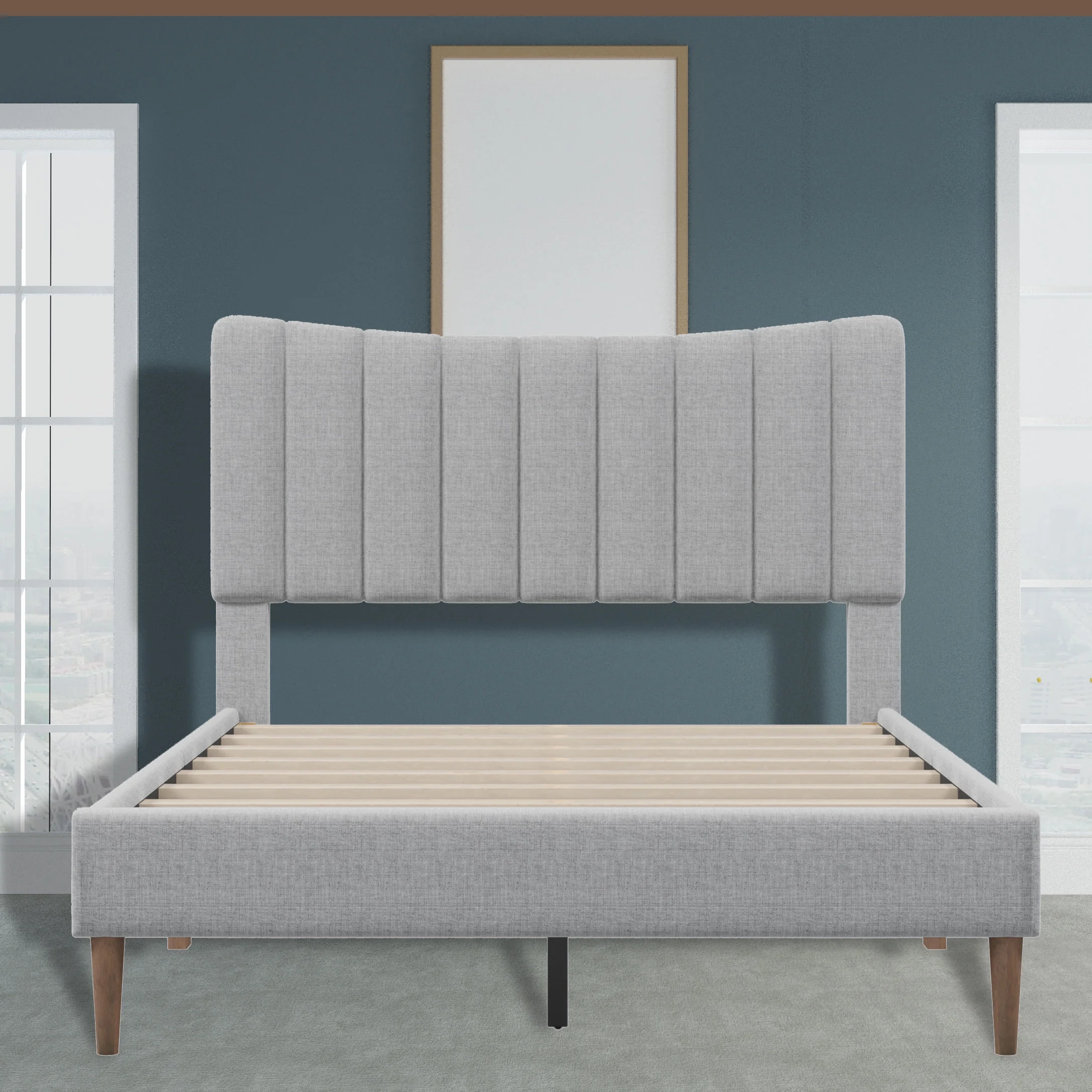 Upholstered Platform Bed Frame with Vertical Channel Tufted Headboard, No Box Spring Needed, Queen,Gray