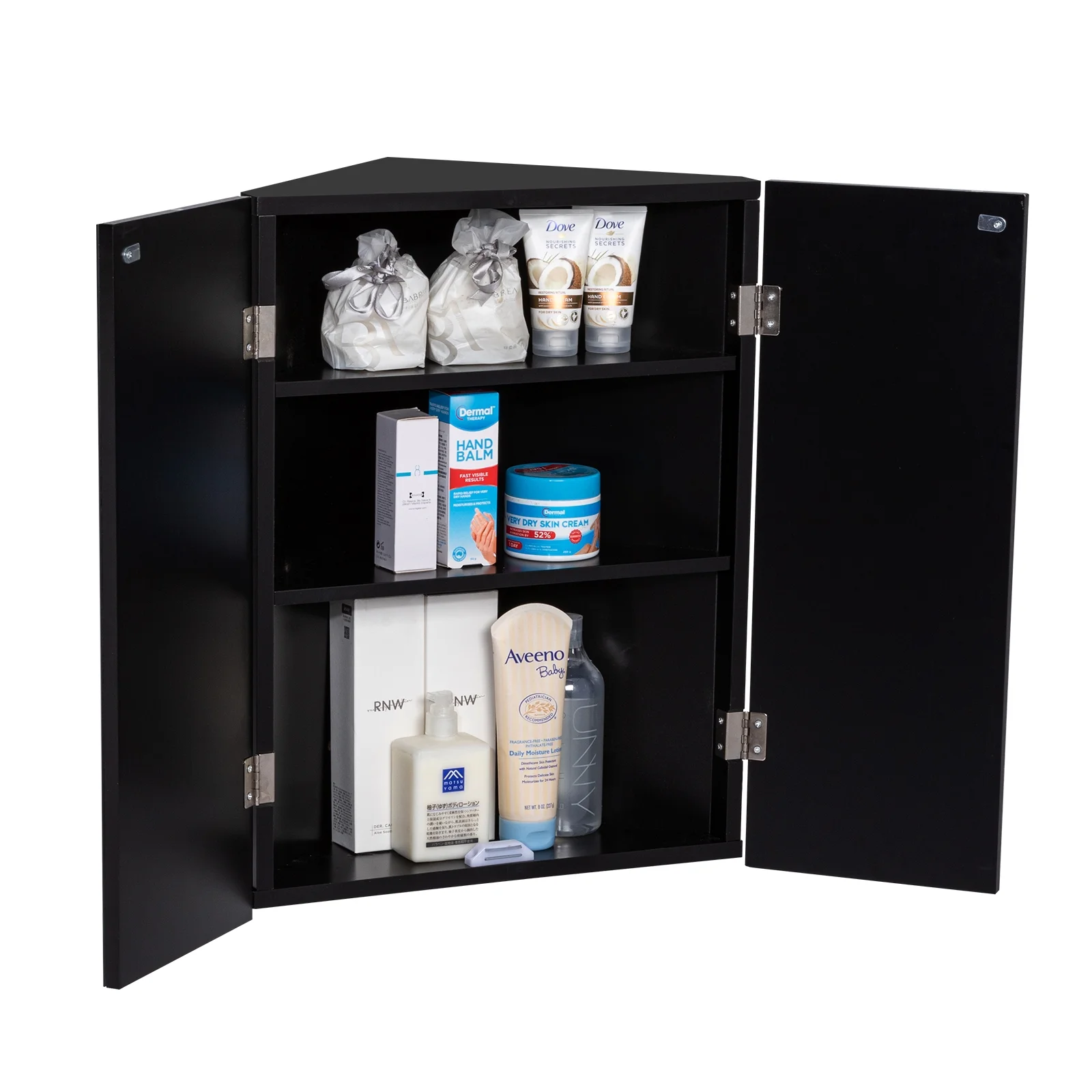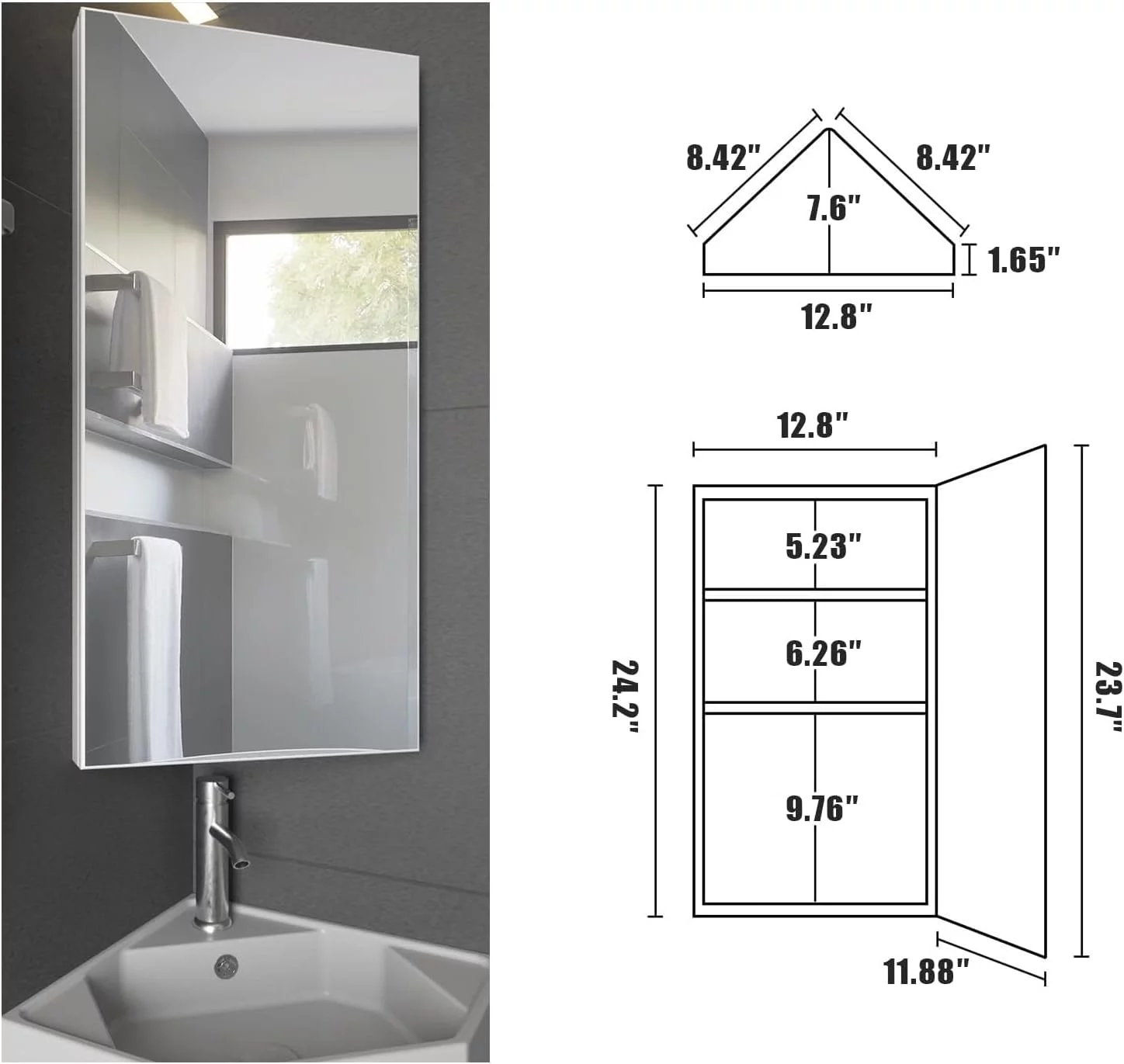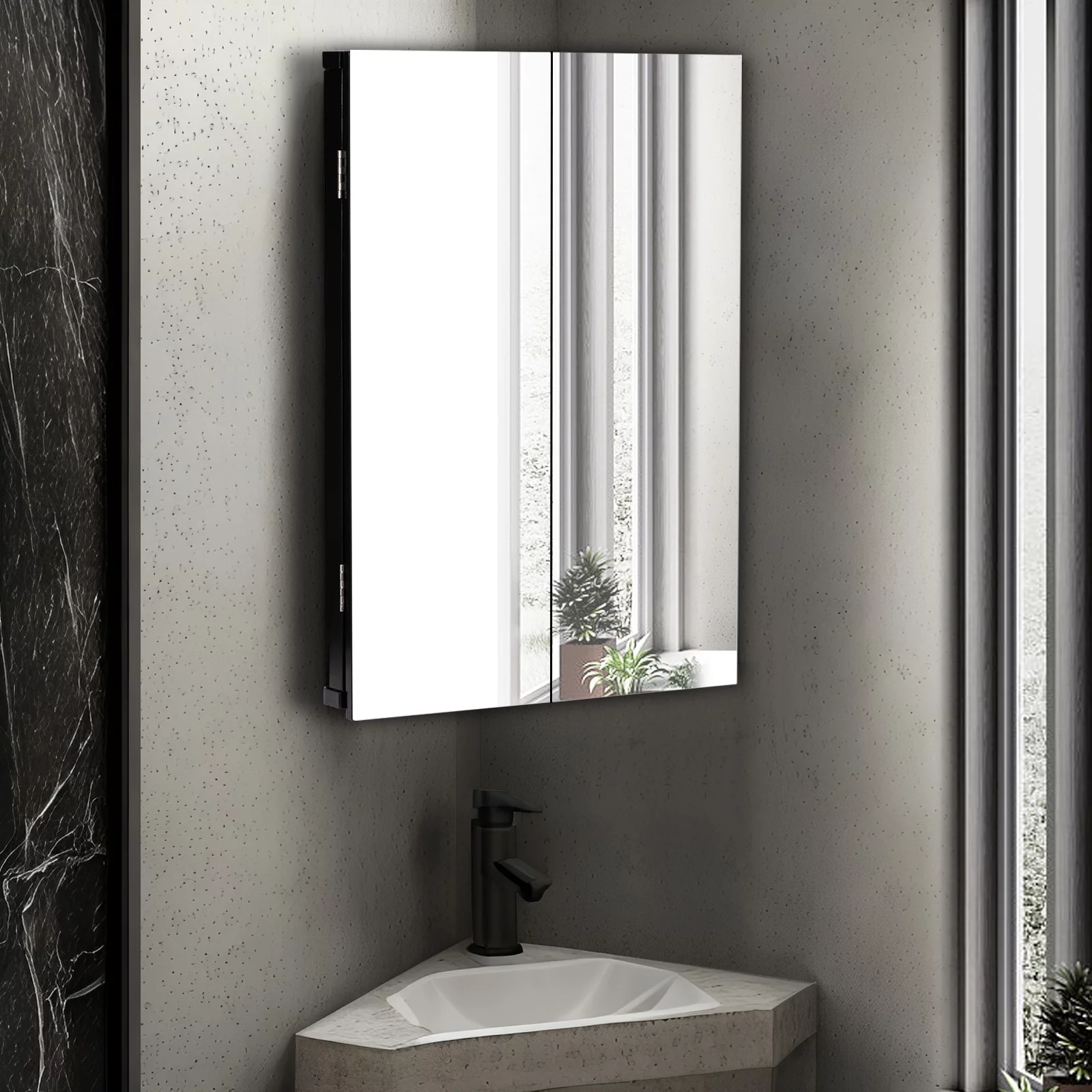 Eclife Rectangle Corner Medicine Cabinet with Mirror Wall Mounted Bathroom Organizer, Black