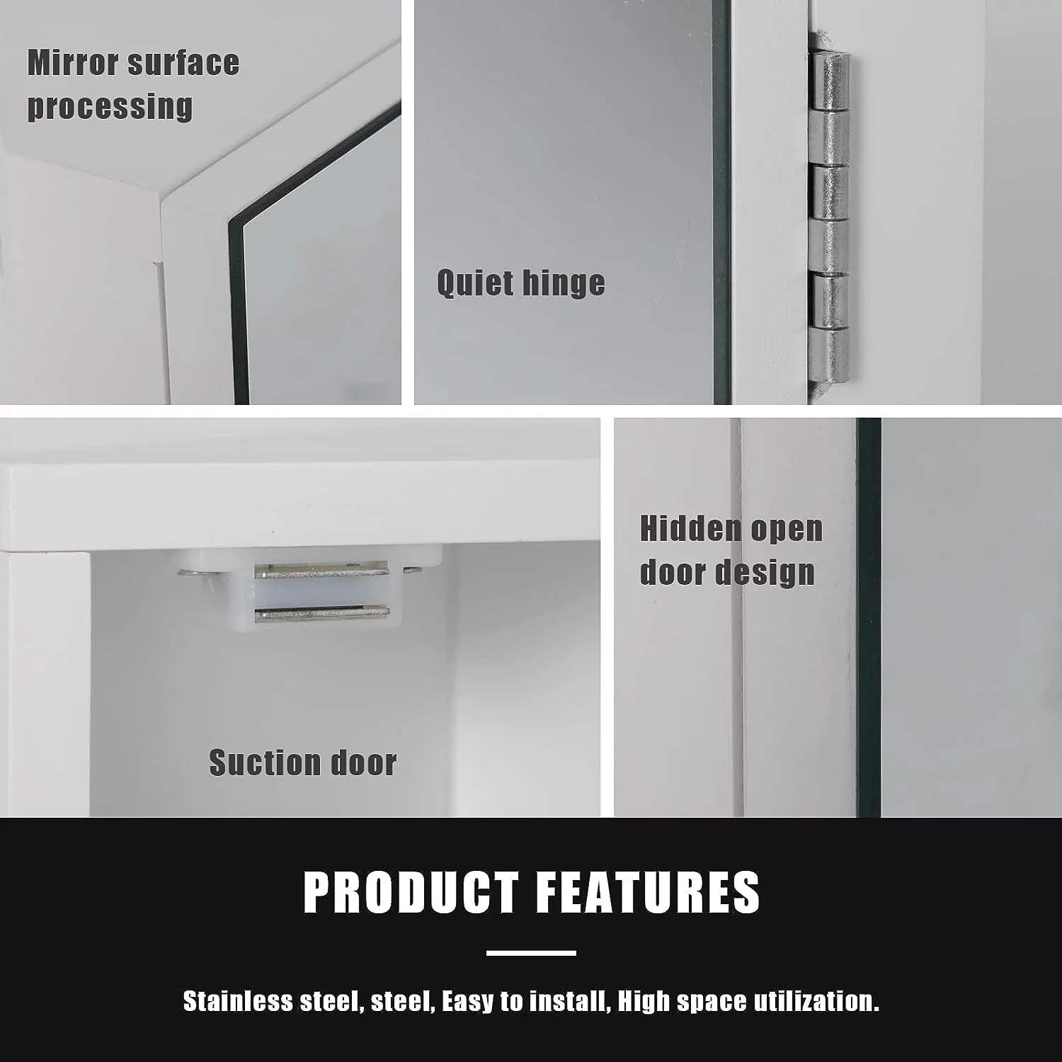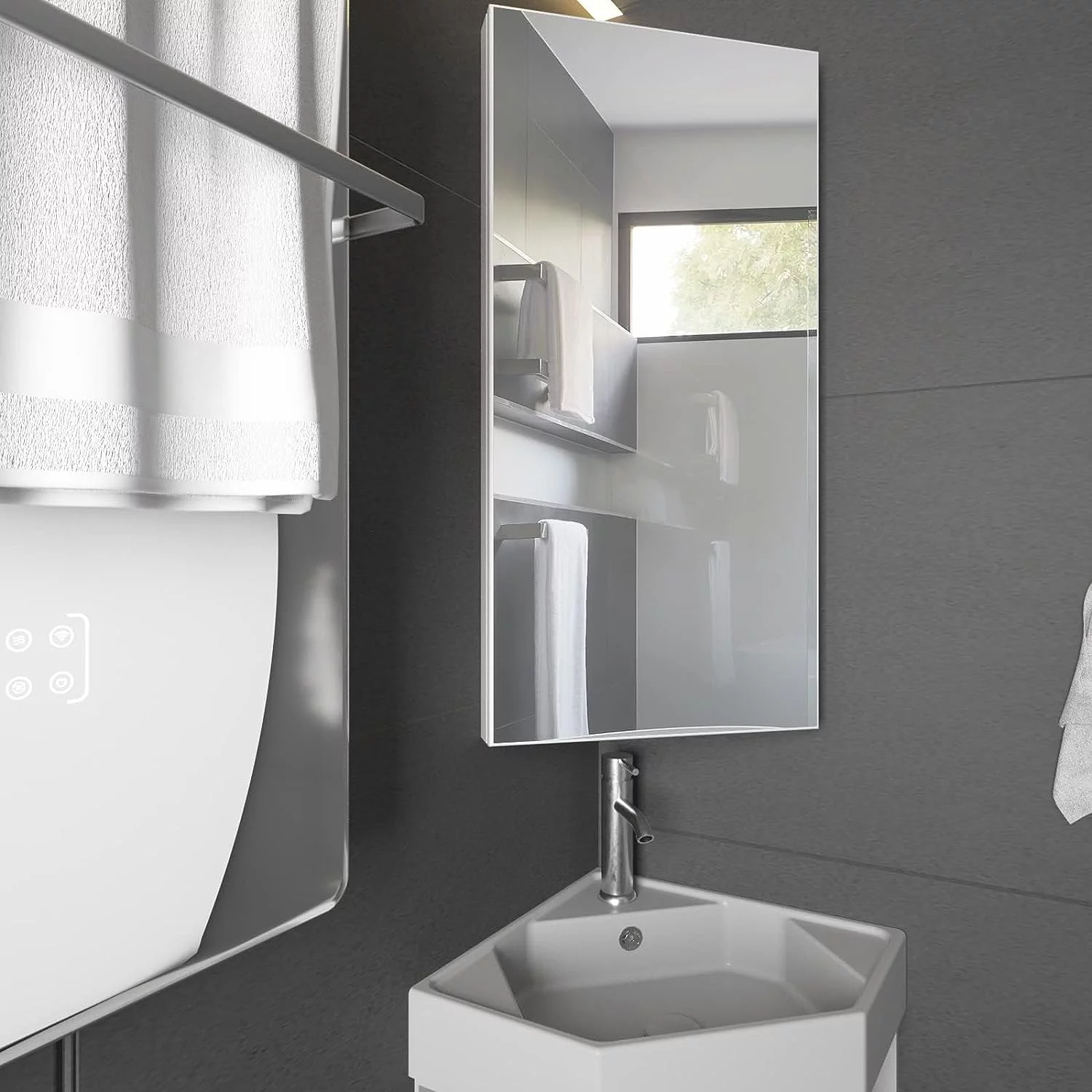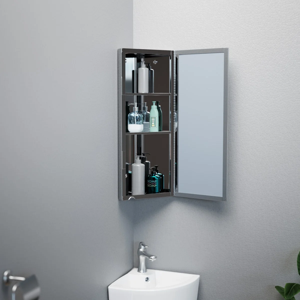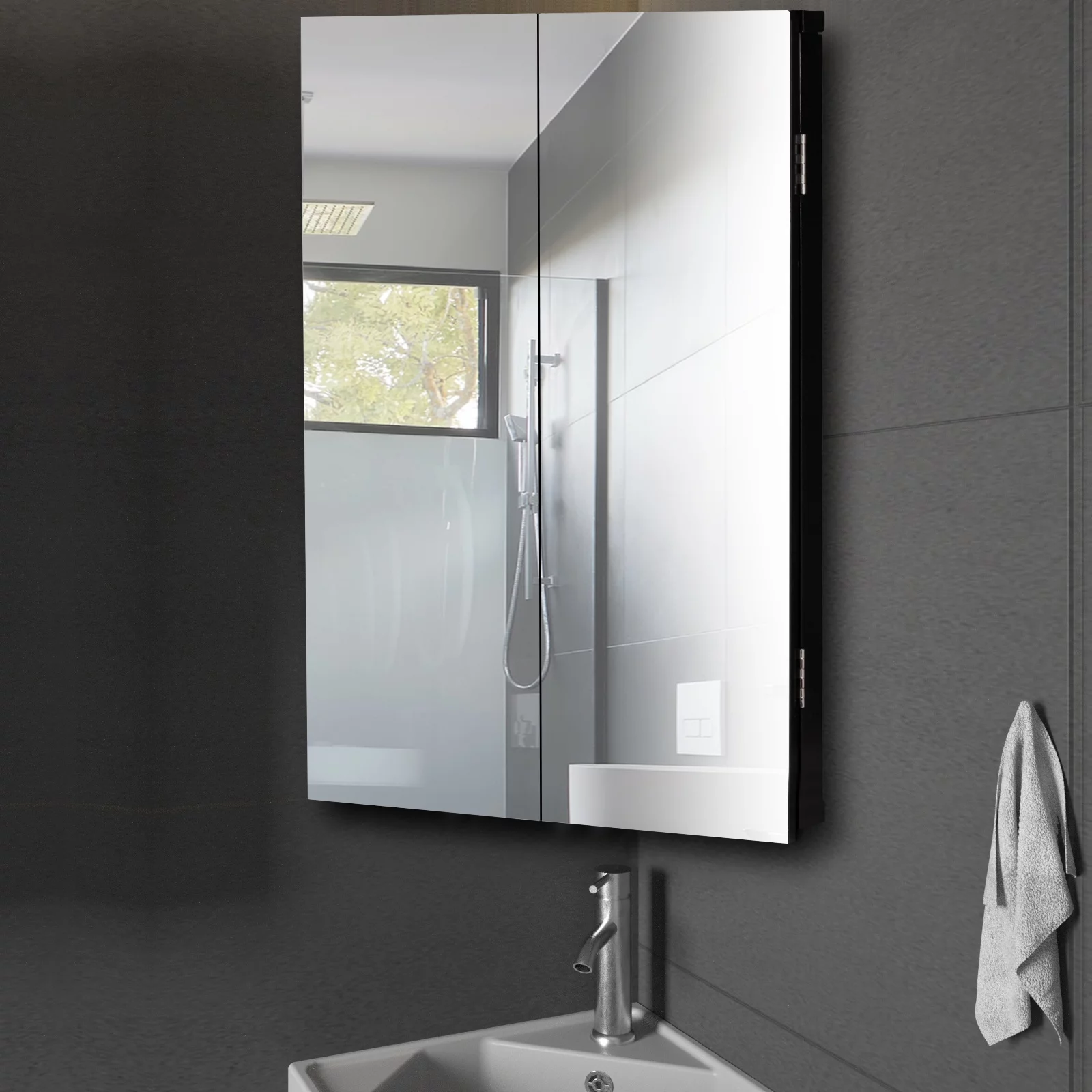 Eclife Rectangle Corner Medicine Cabinet with Mirror Wall Mounted Bathroom Organizer, Black