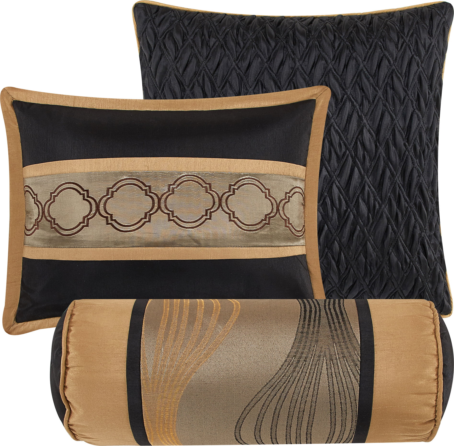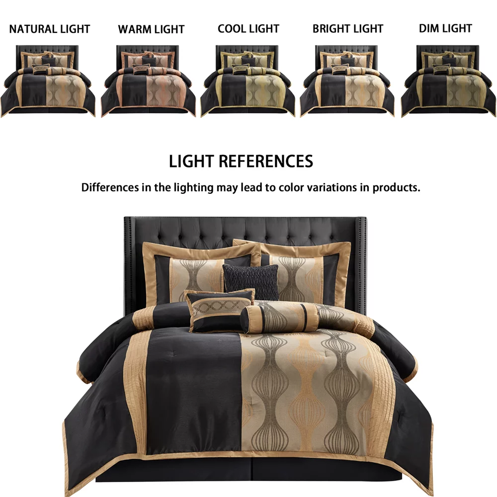 Nanshing Kath 7 Piece Luxury Contemporary Comforter Set, Black Gold, California King
