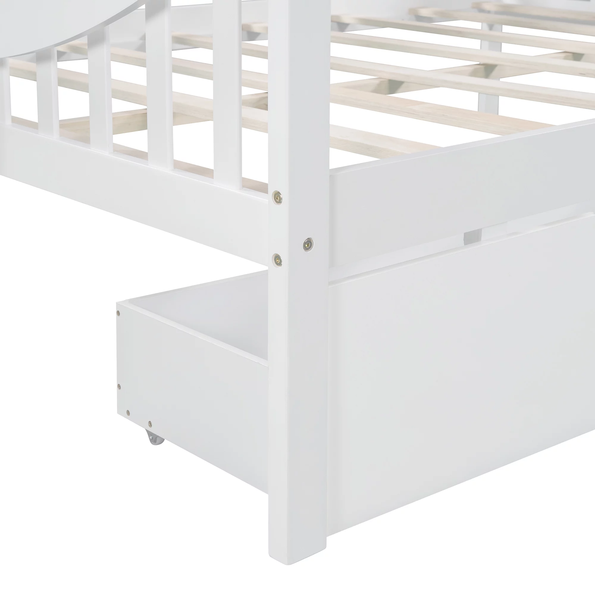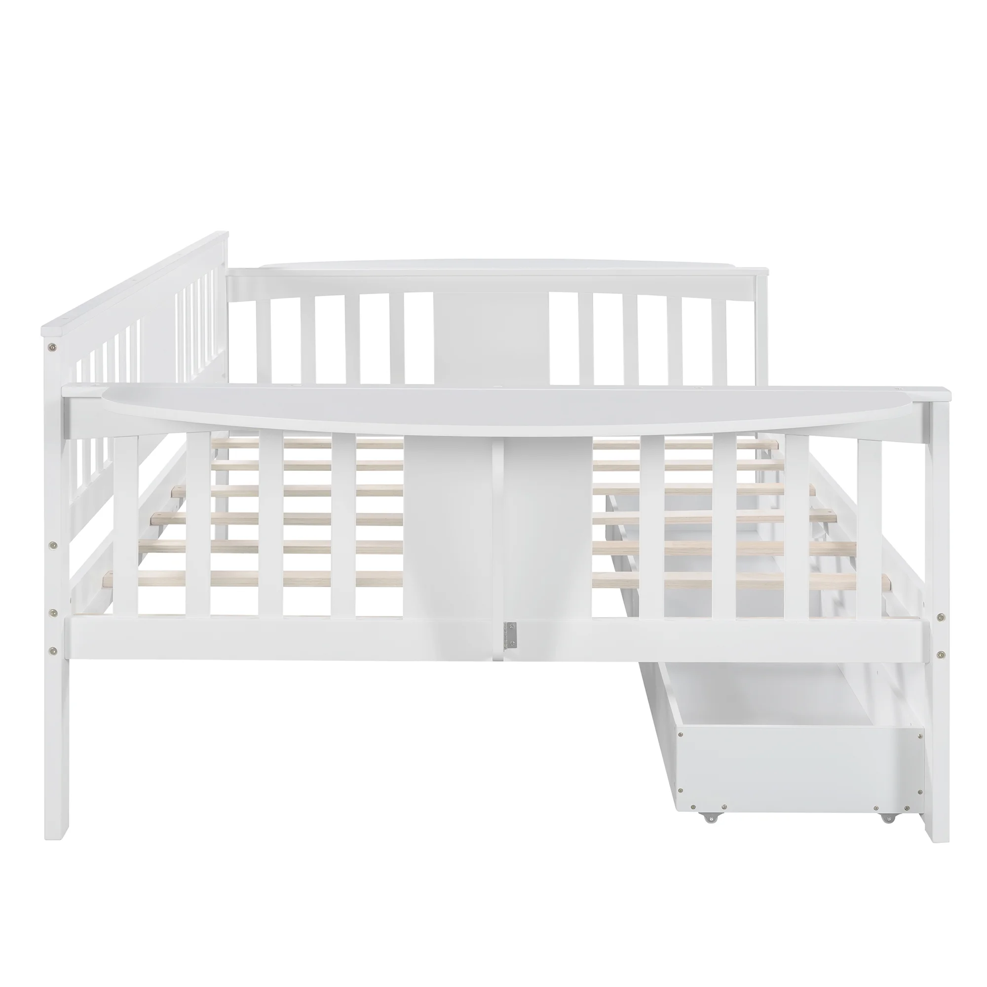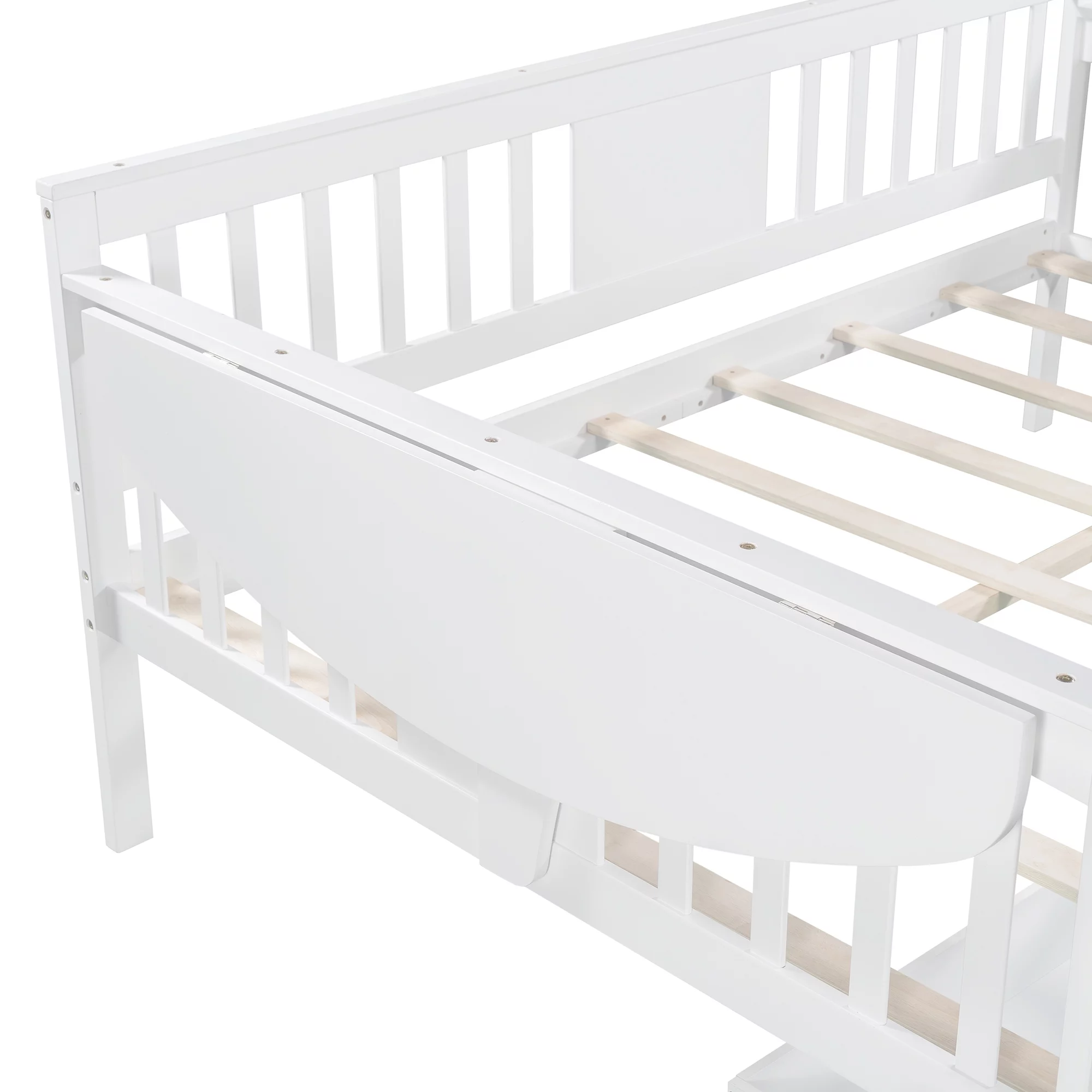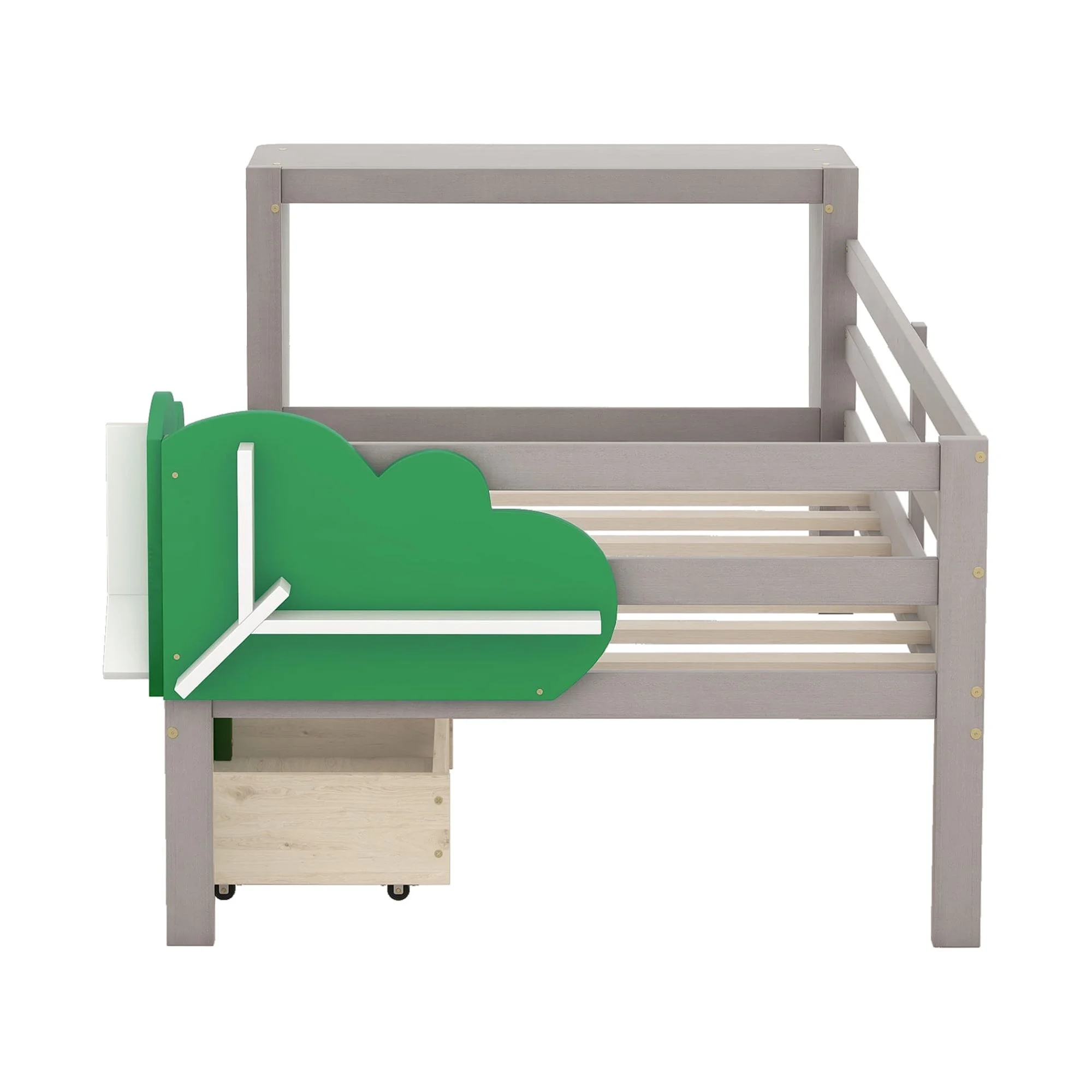 Dawn Whisper Twin Size Daybed with Desk, Green Leaf Shape Drawers and Shelves, White