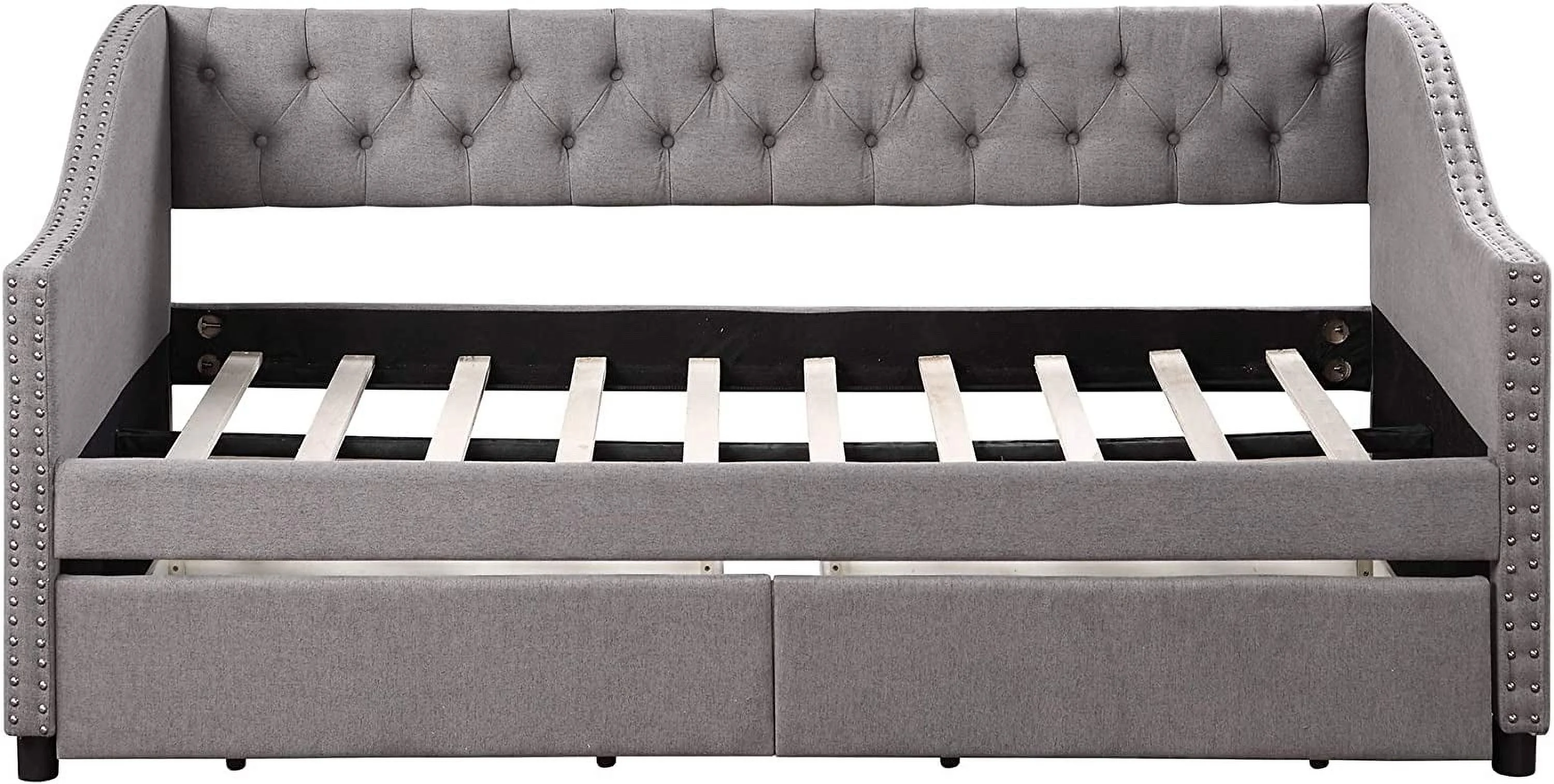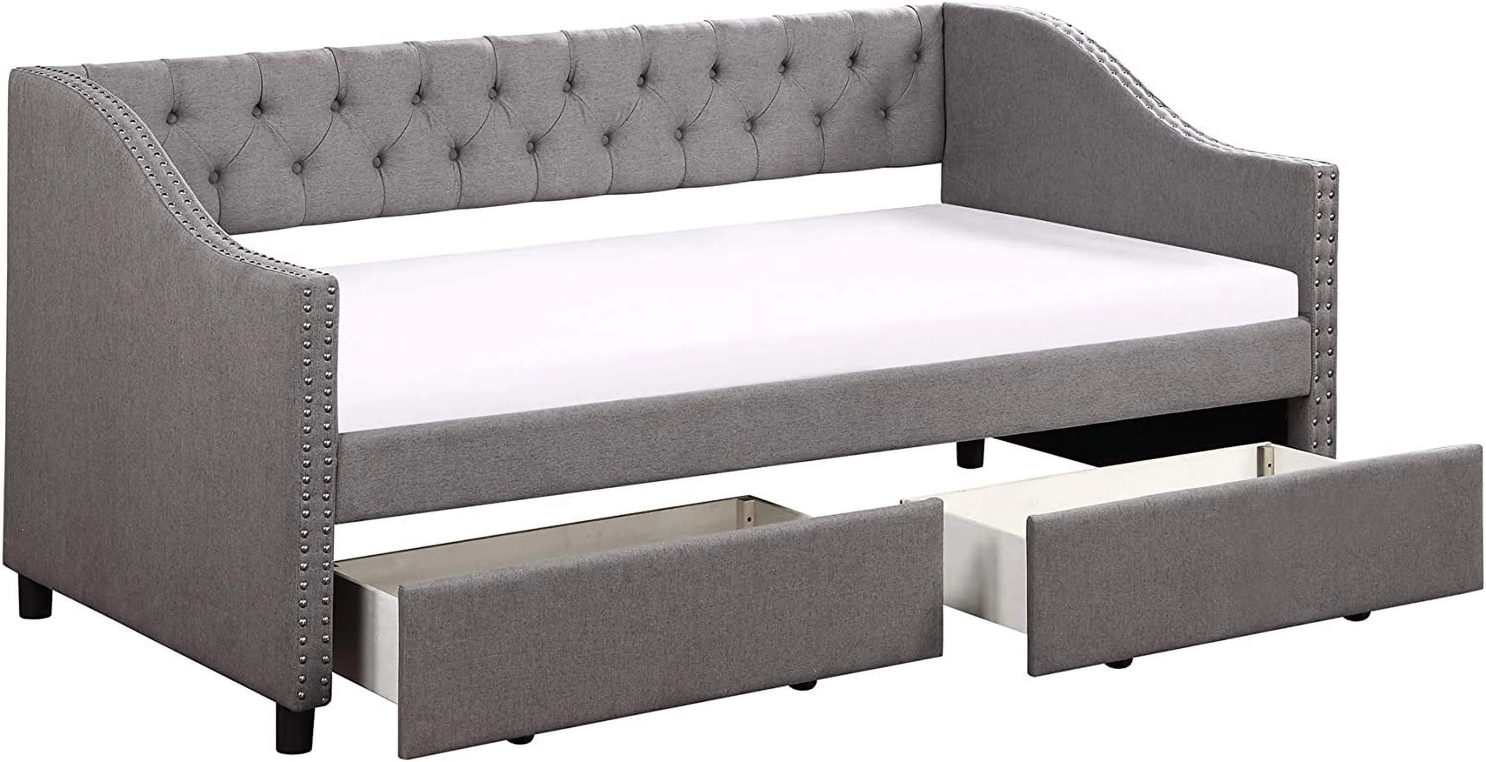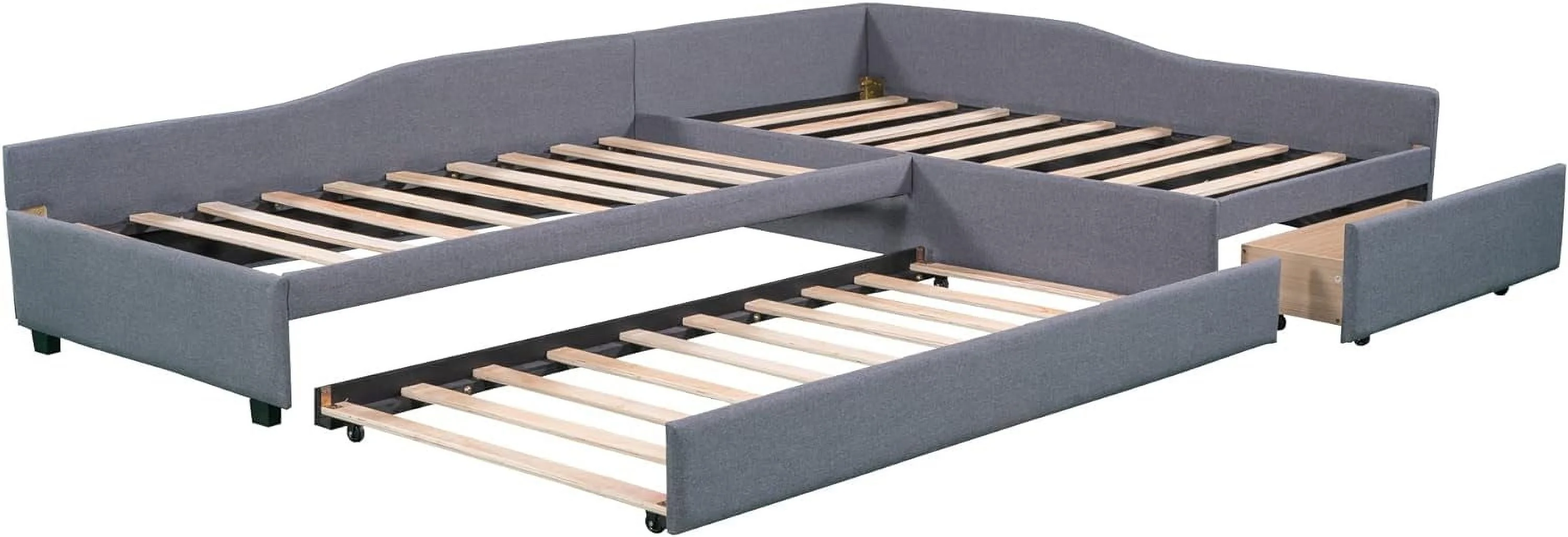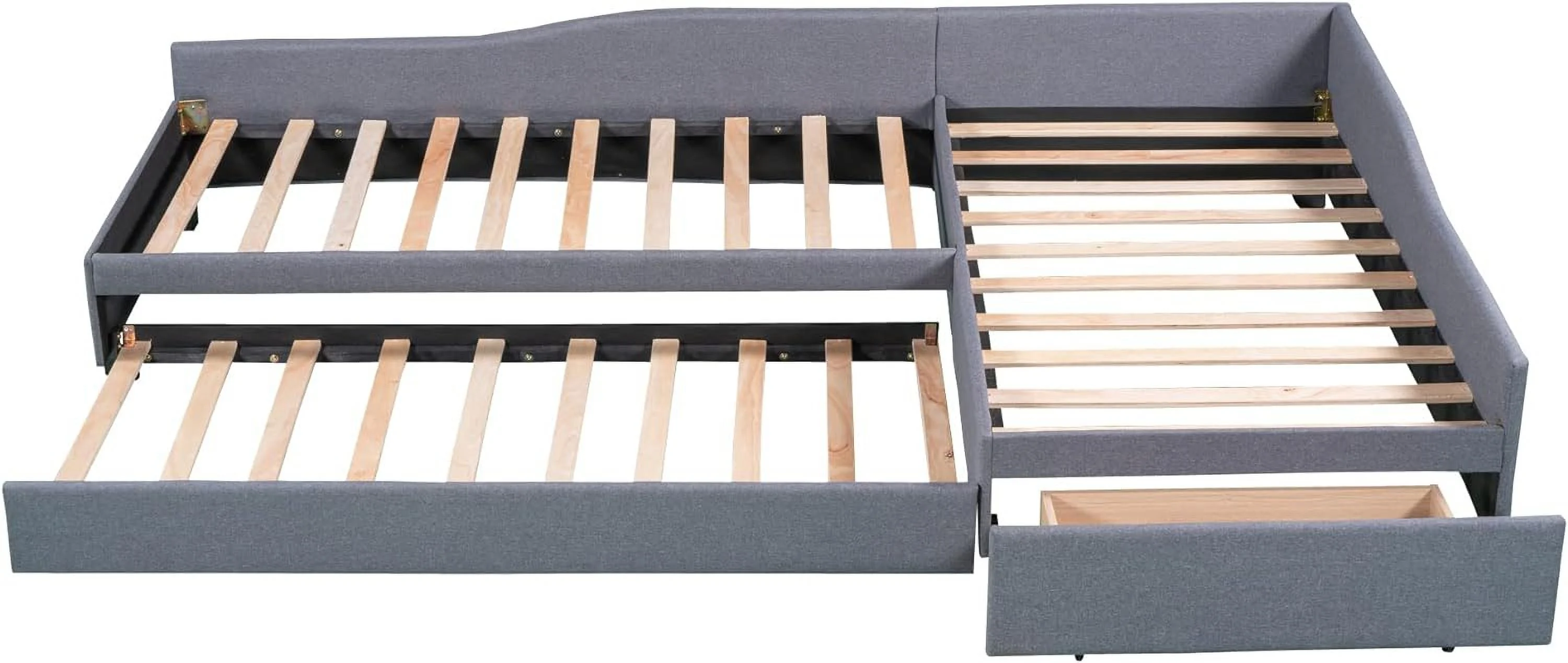 L Shaped Bed Upholstered Size Daybed With Trundle And Drawer, No Box Spring Needed - Gray
