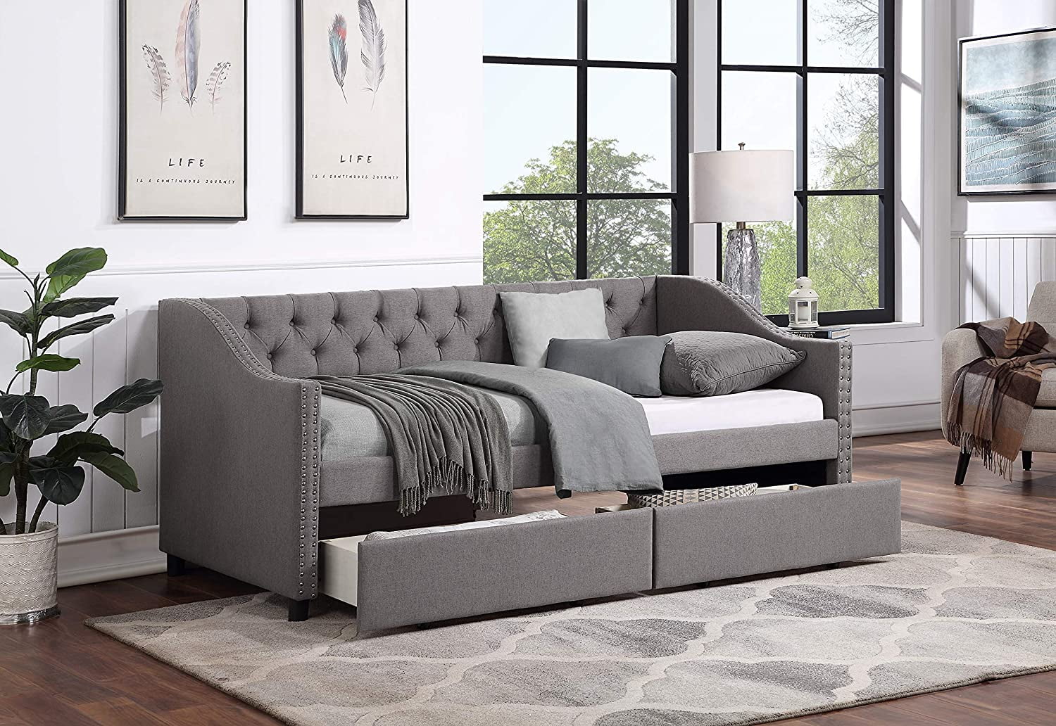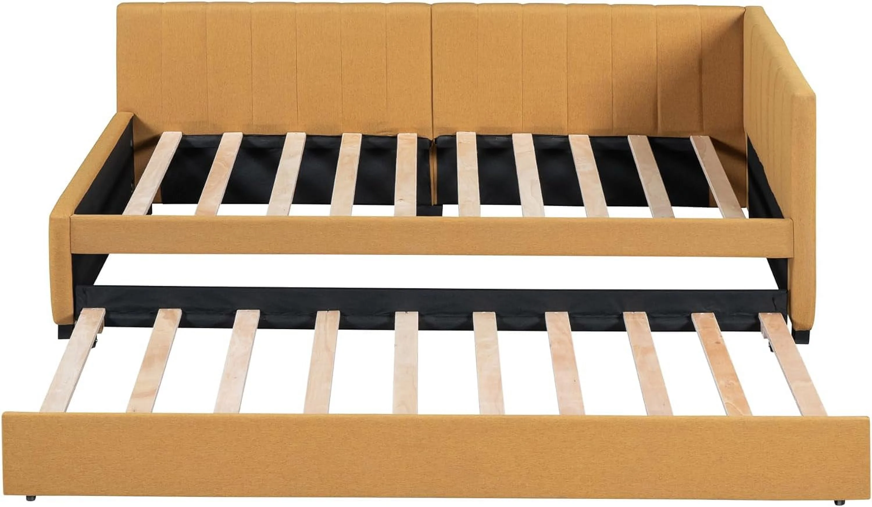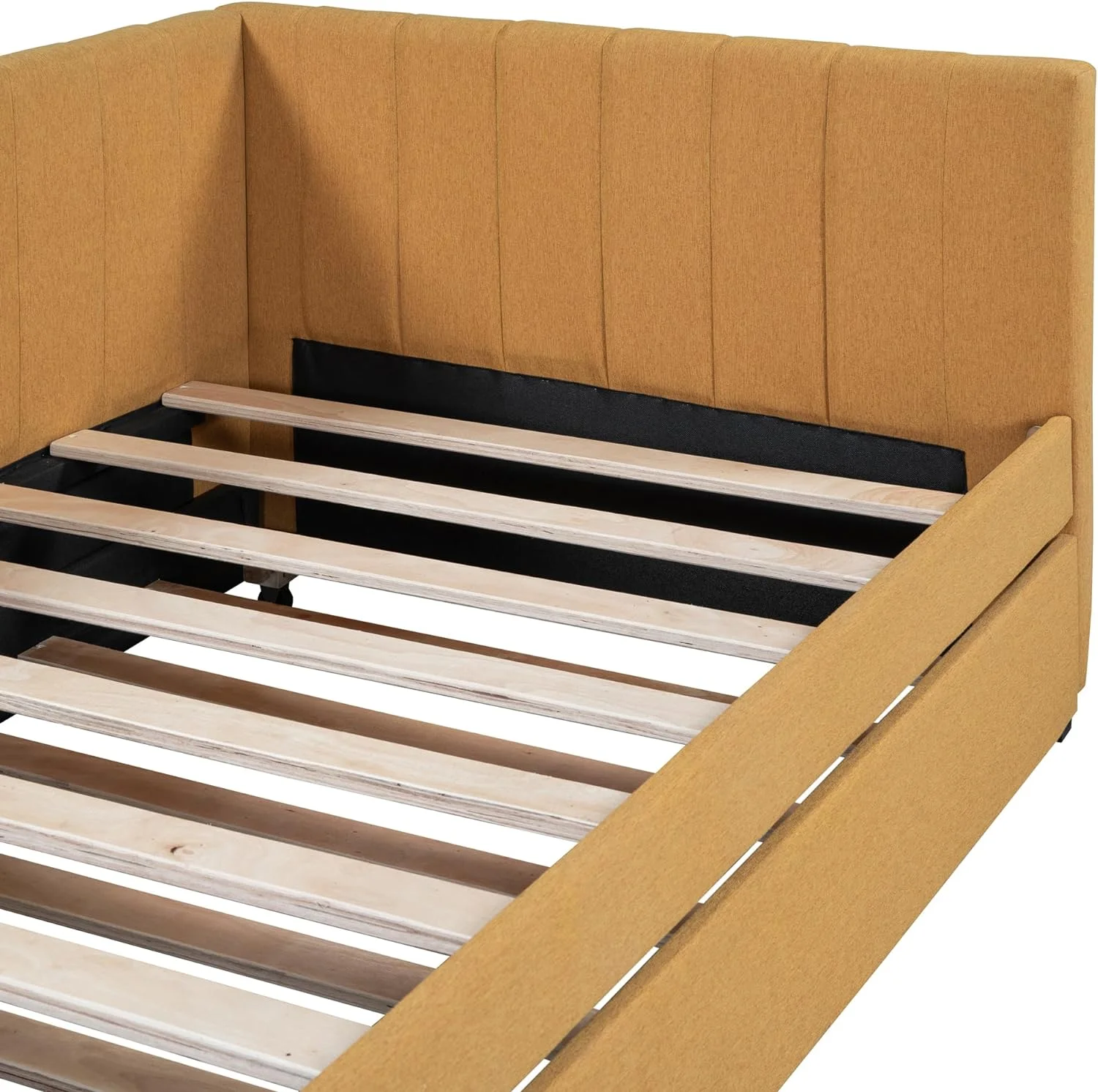 L Shaped Bed Upholstered Size Daybed With Trundle And Drawer, No Box Spring Needed - Gray