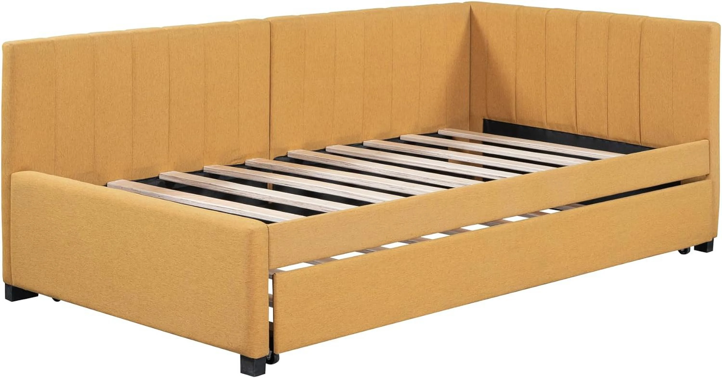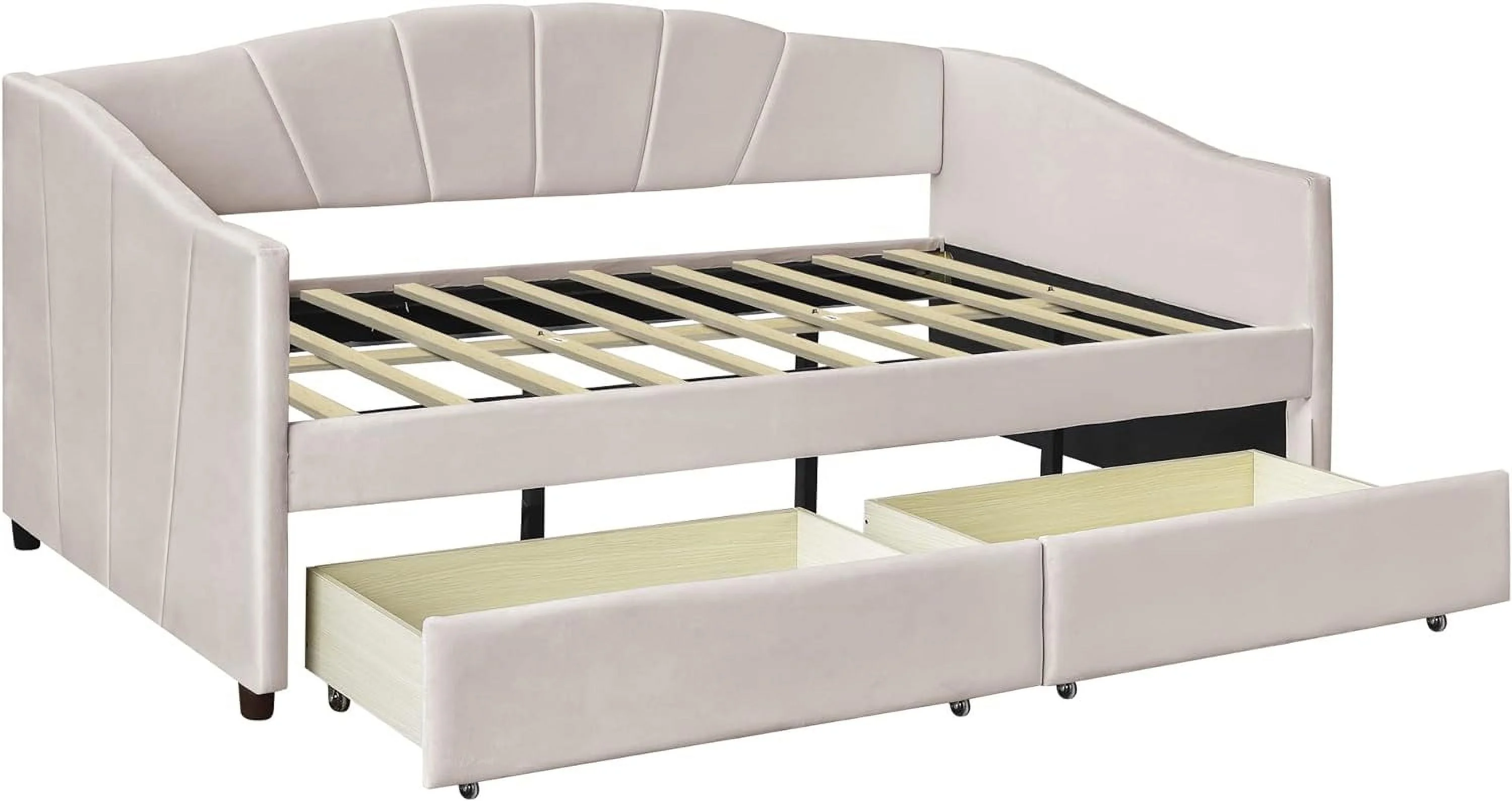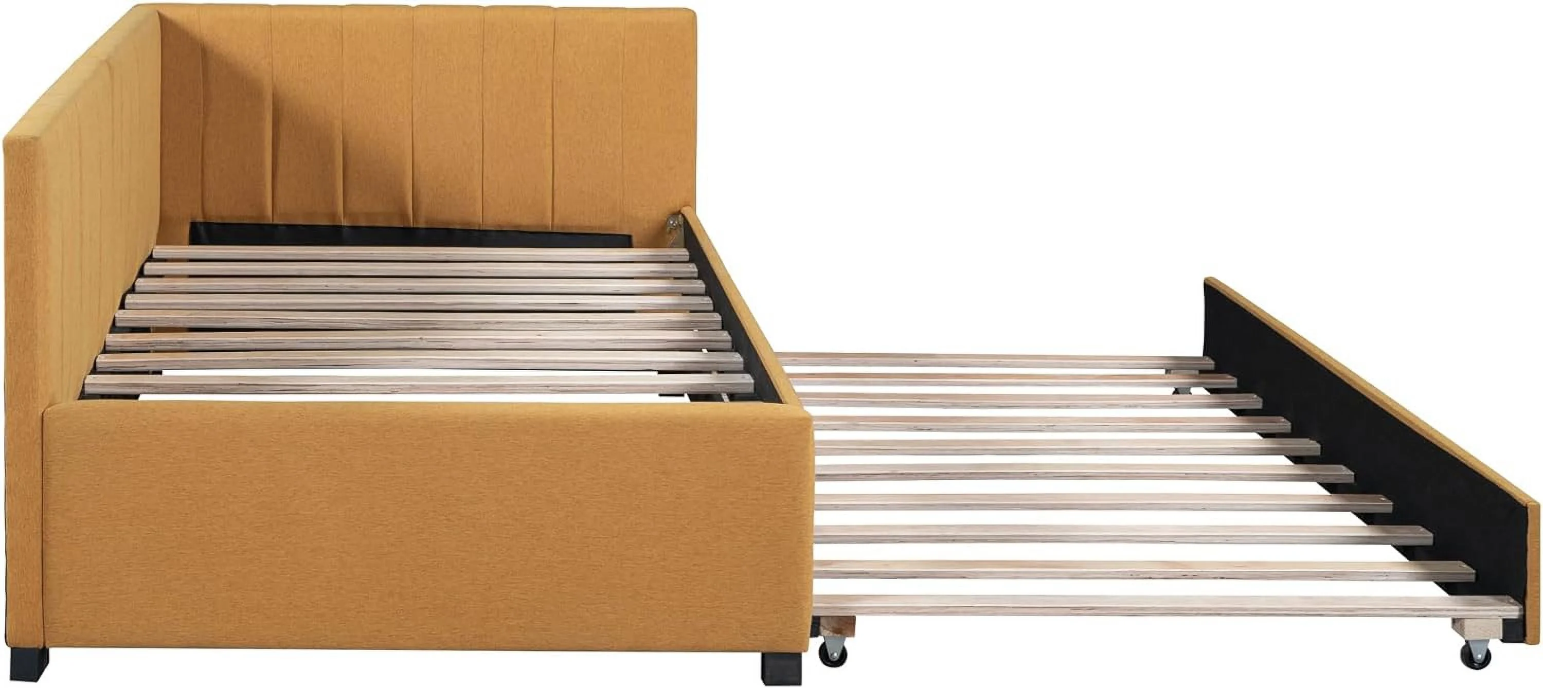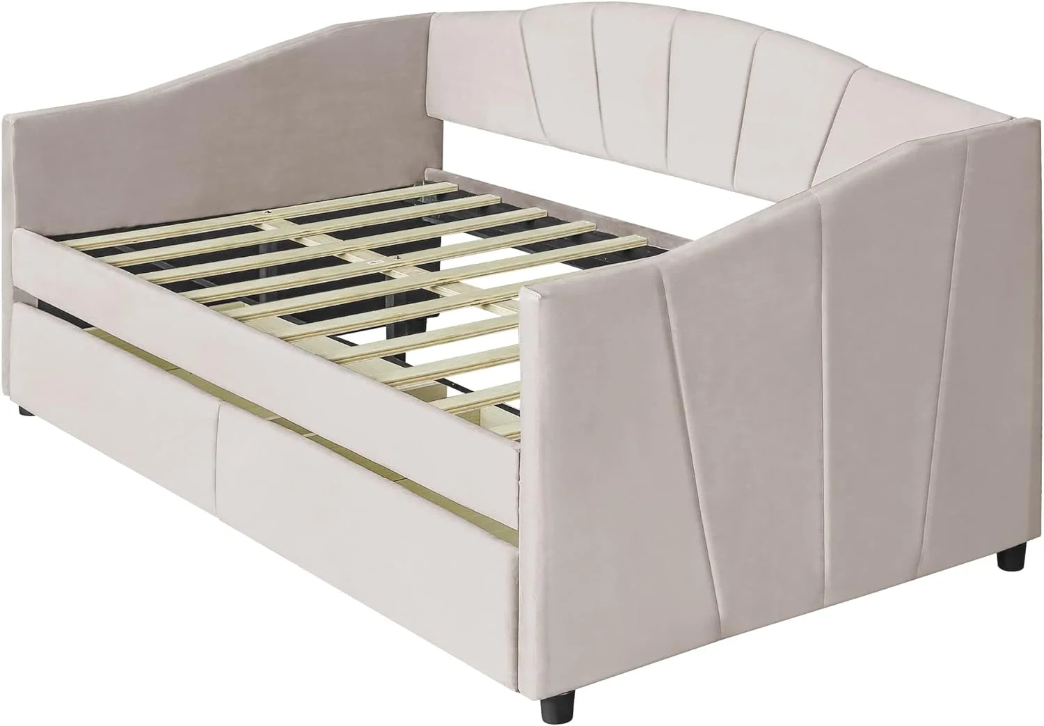 L Shaped Bed Upholstered Size Daybed With Trundle And Drawer, No Box Spring Needed - Gray