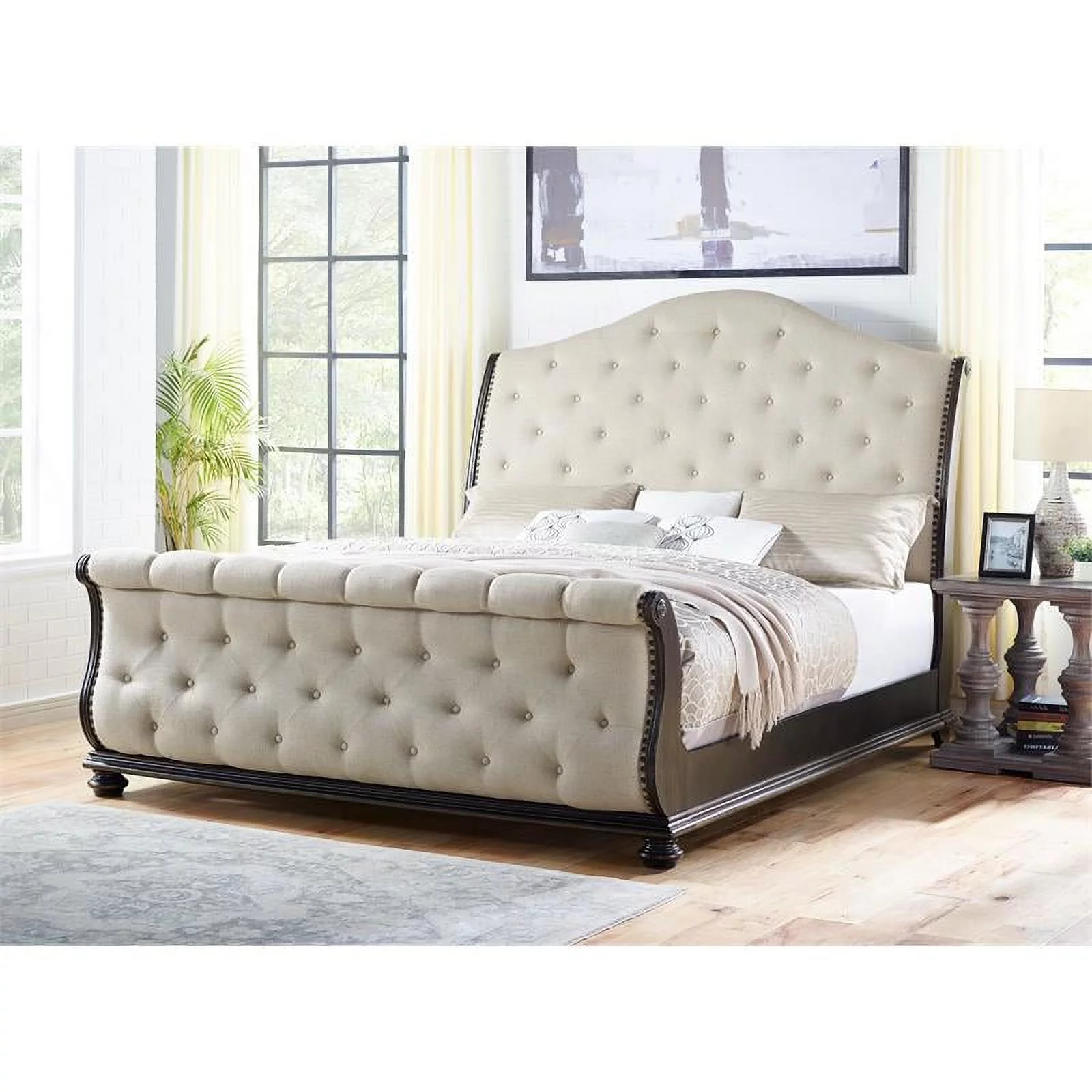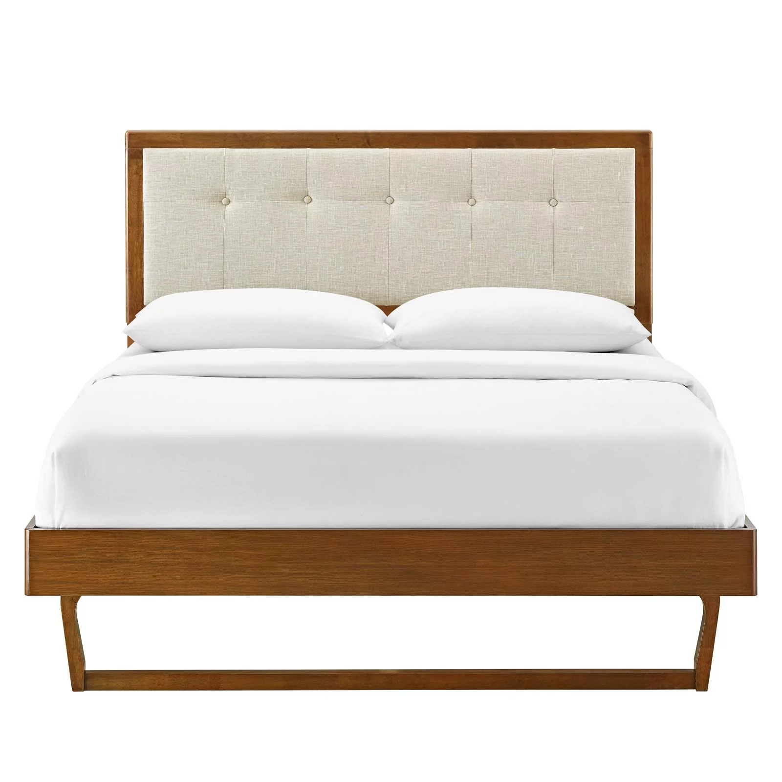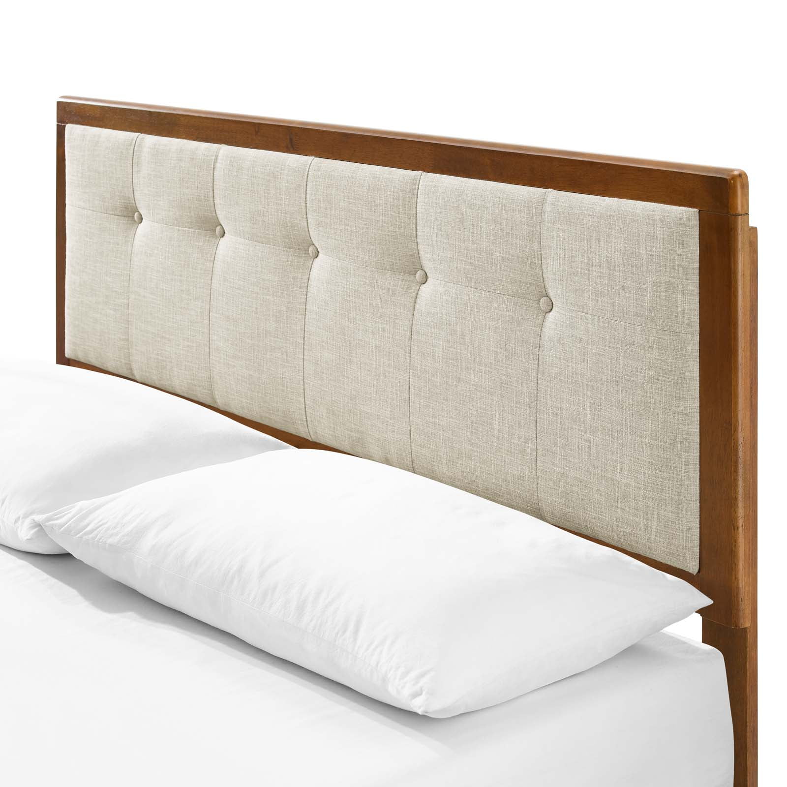Platform Bed Frame, King Size, Wood, Brown Walnut Beige, Modern Contemporary Urban Design, Bedroom Master Guest Suite