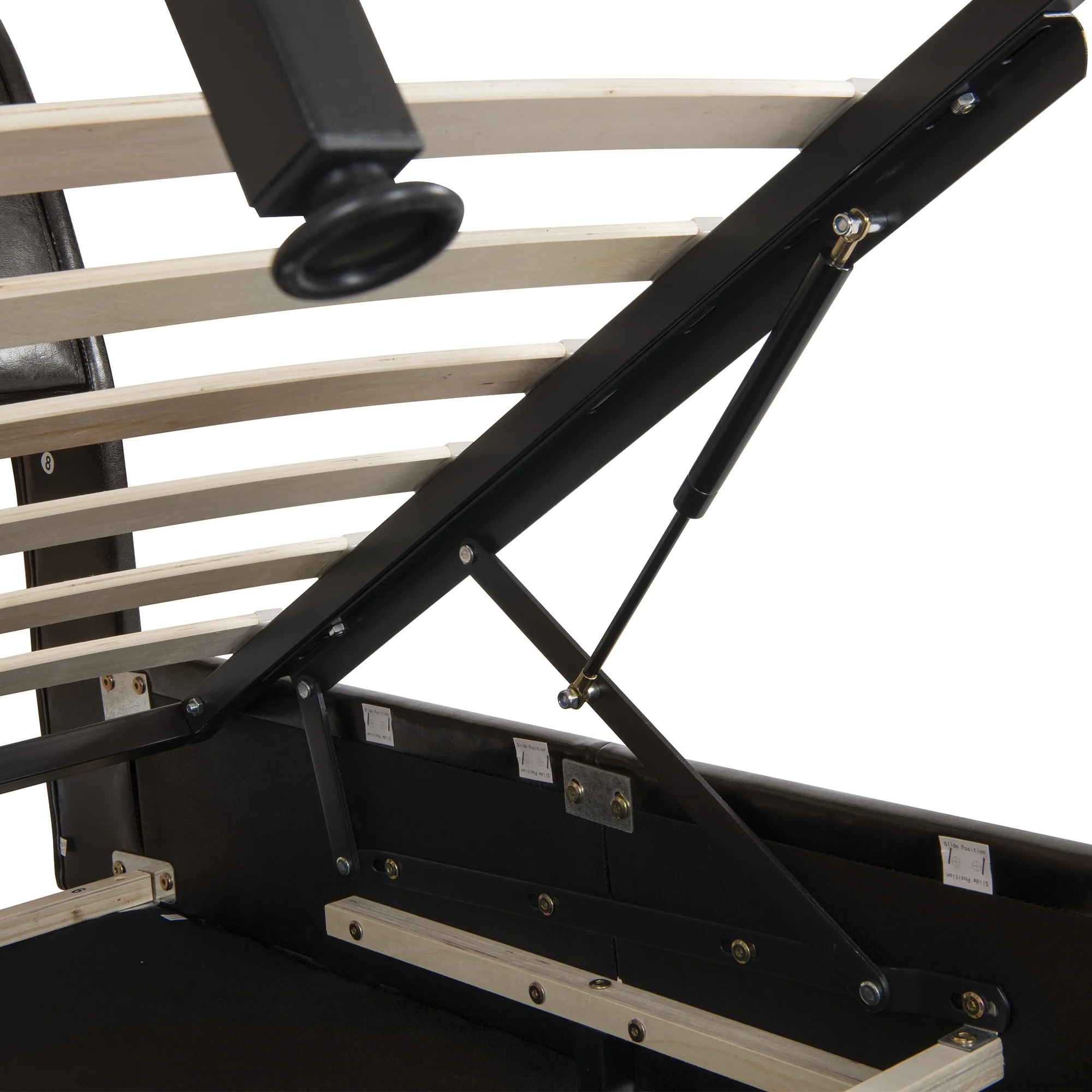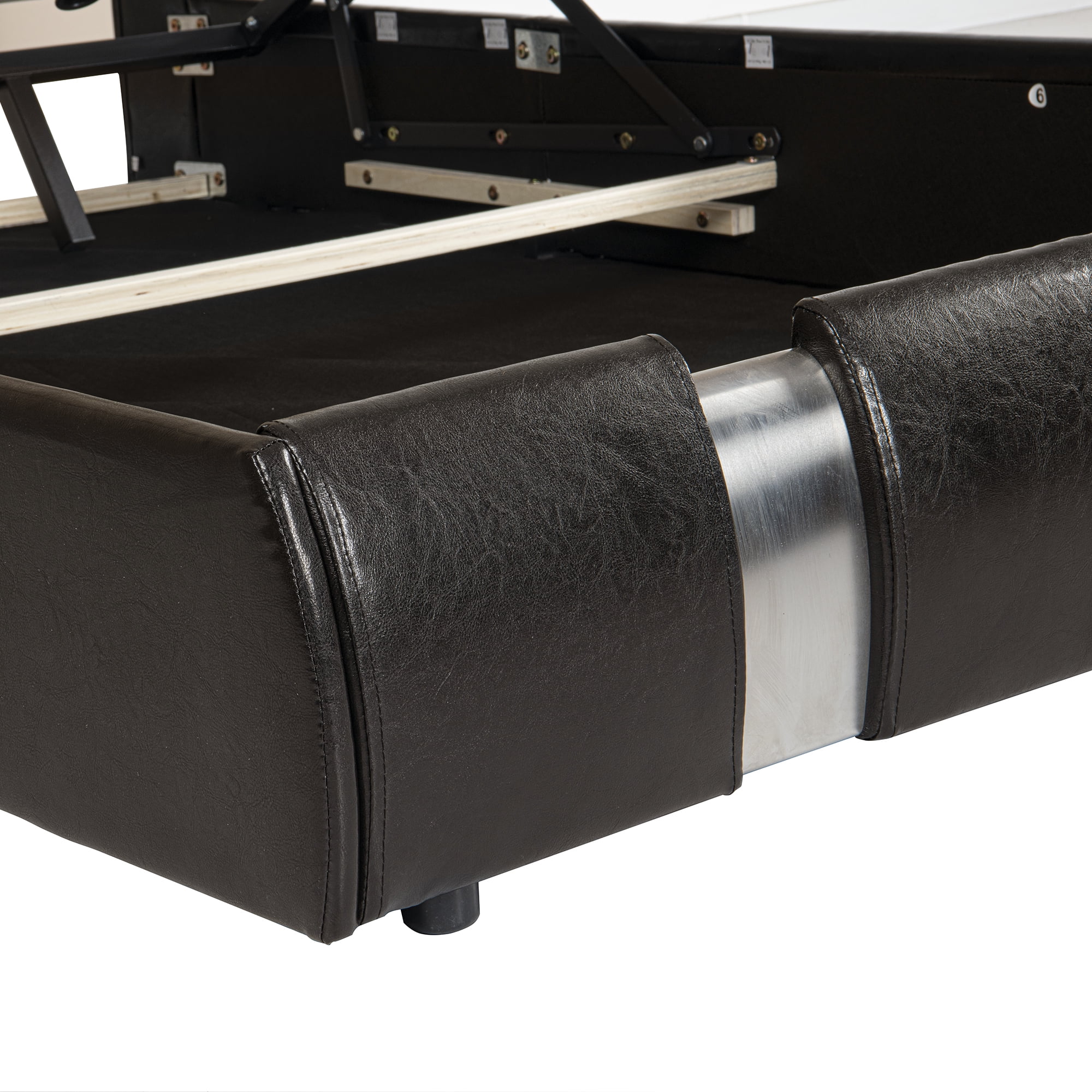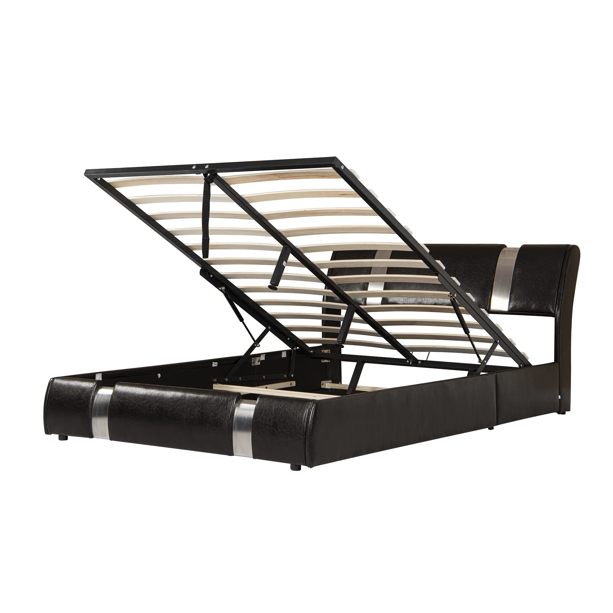 Convenient Lift Up Storage Wood Slats Stainless Steel Sheet Full Size Bed Frame - No Box Spring Needed - Easy Assembly