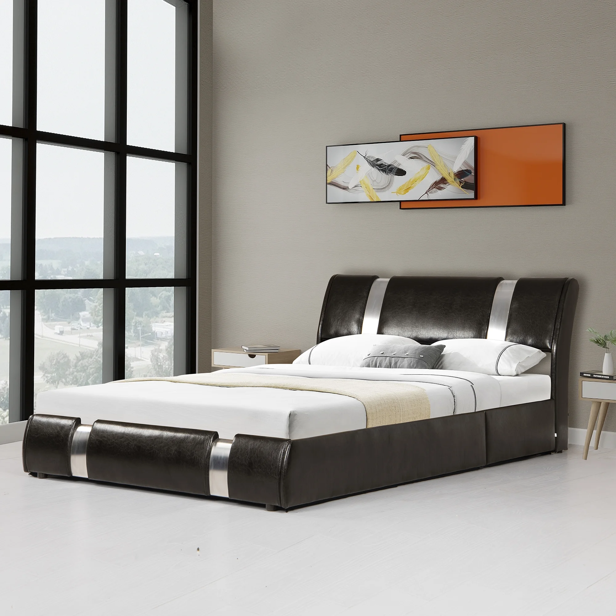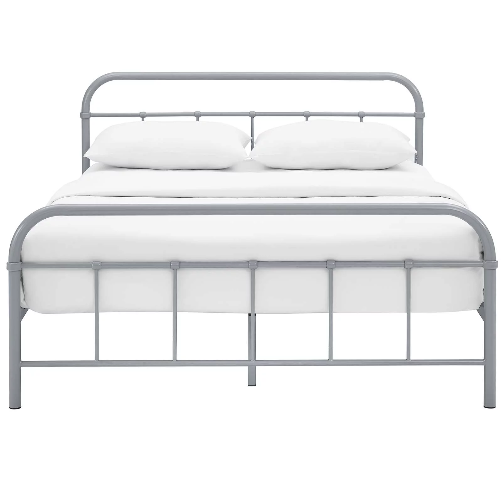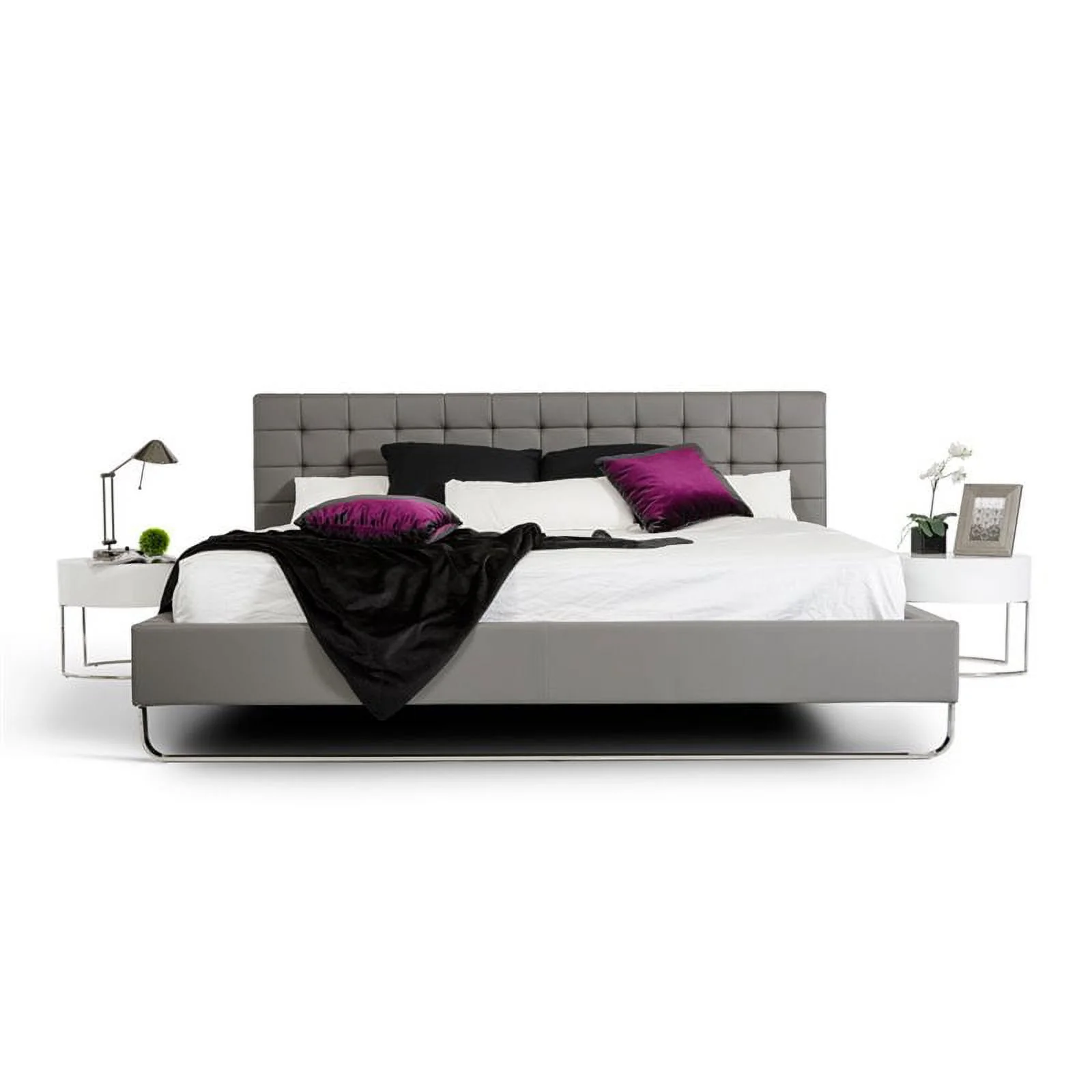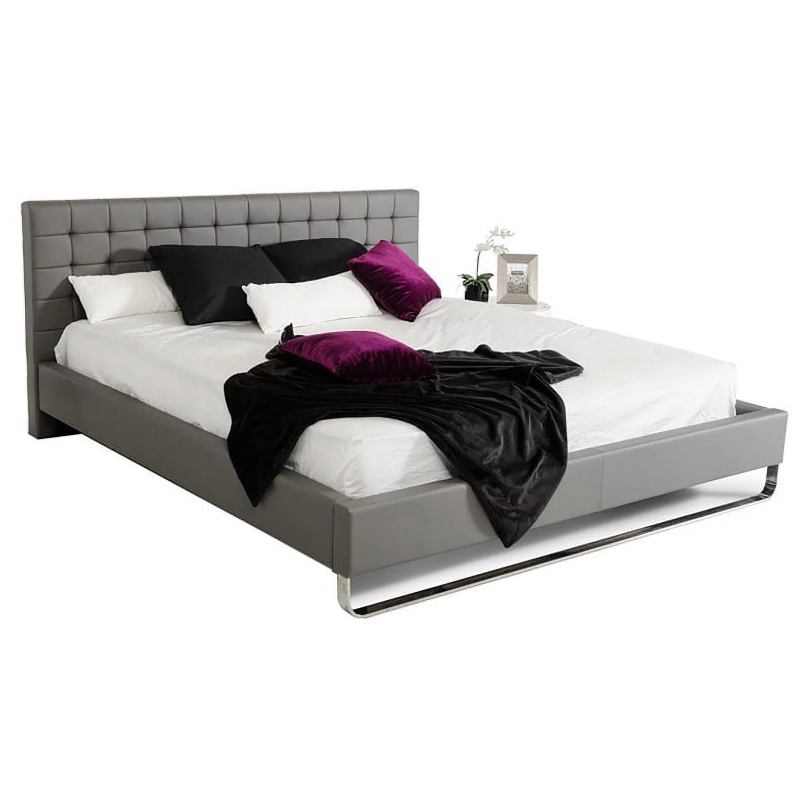 Modrest Gemma 68x89" Modern Faux Leather & Stainless Steel Queen Bed in Gray