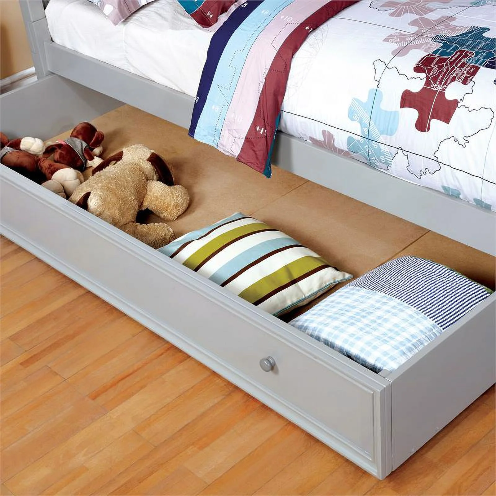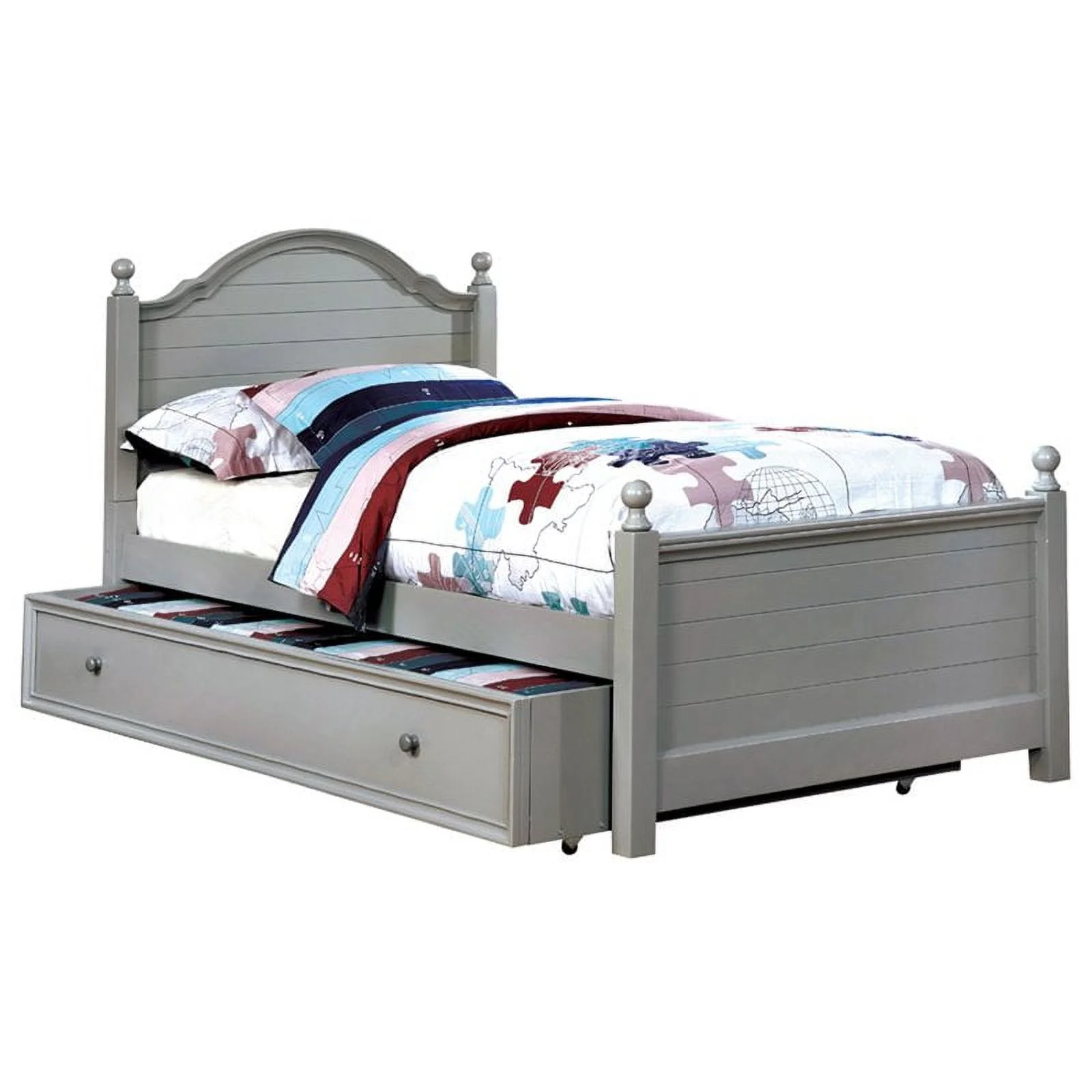 Furniture of America Cedric Wood Panel Kids Twin Bed with Trundle in Gray