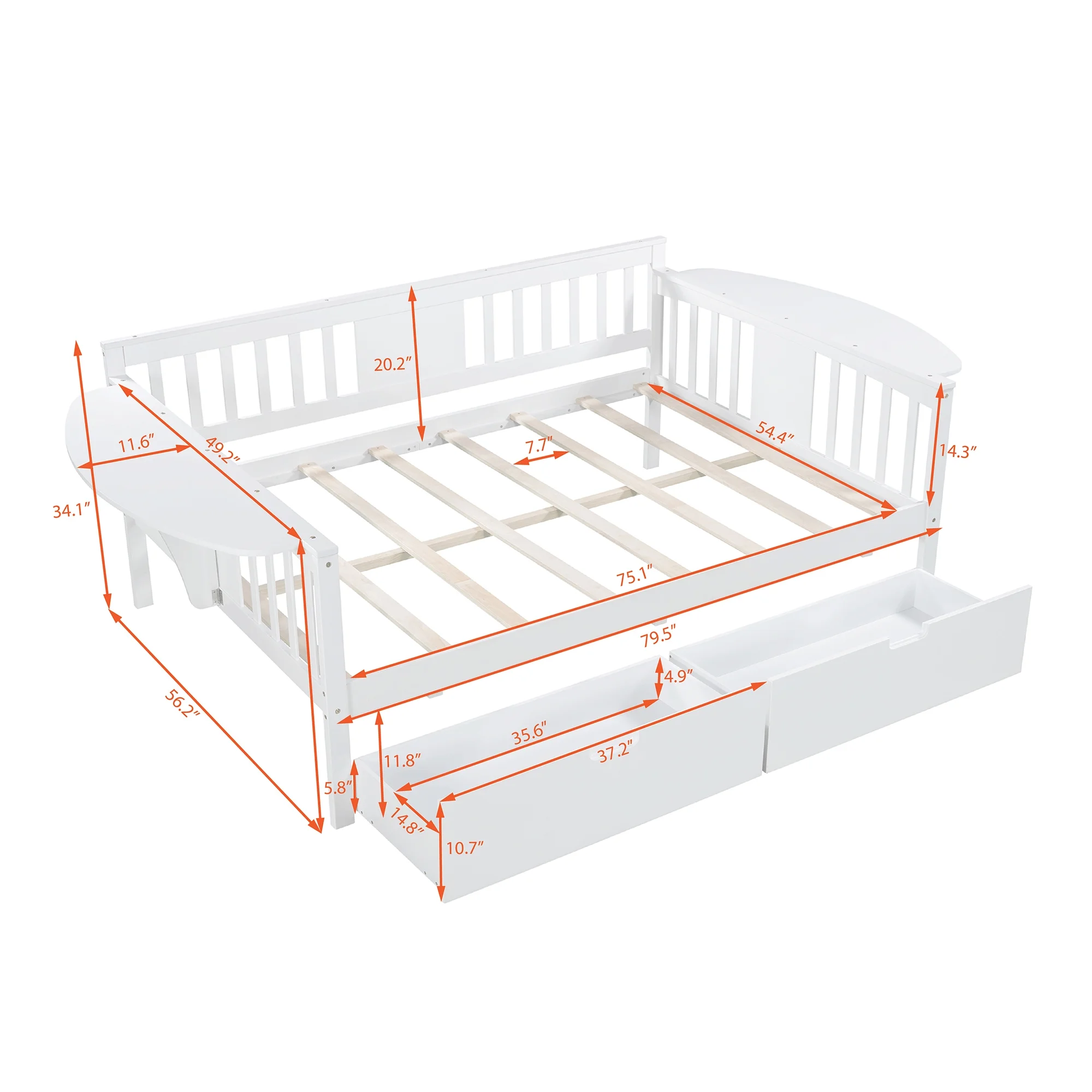 CQSXDA Twin Size Daybed with Desk, Green Leaf Shape Drawers and Shelves, White