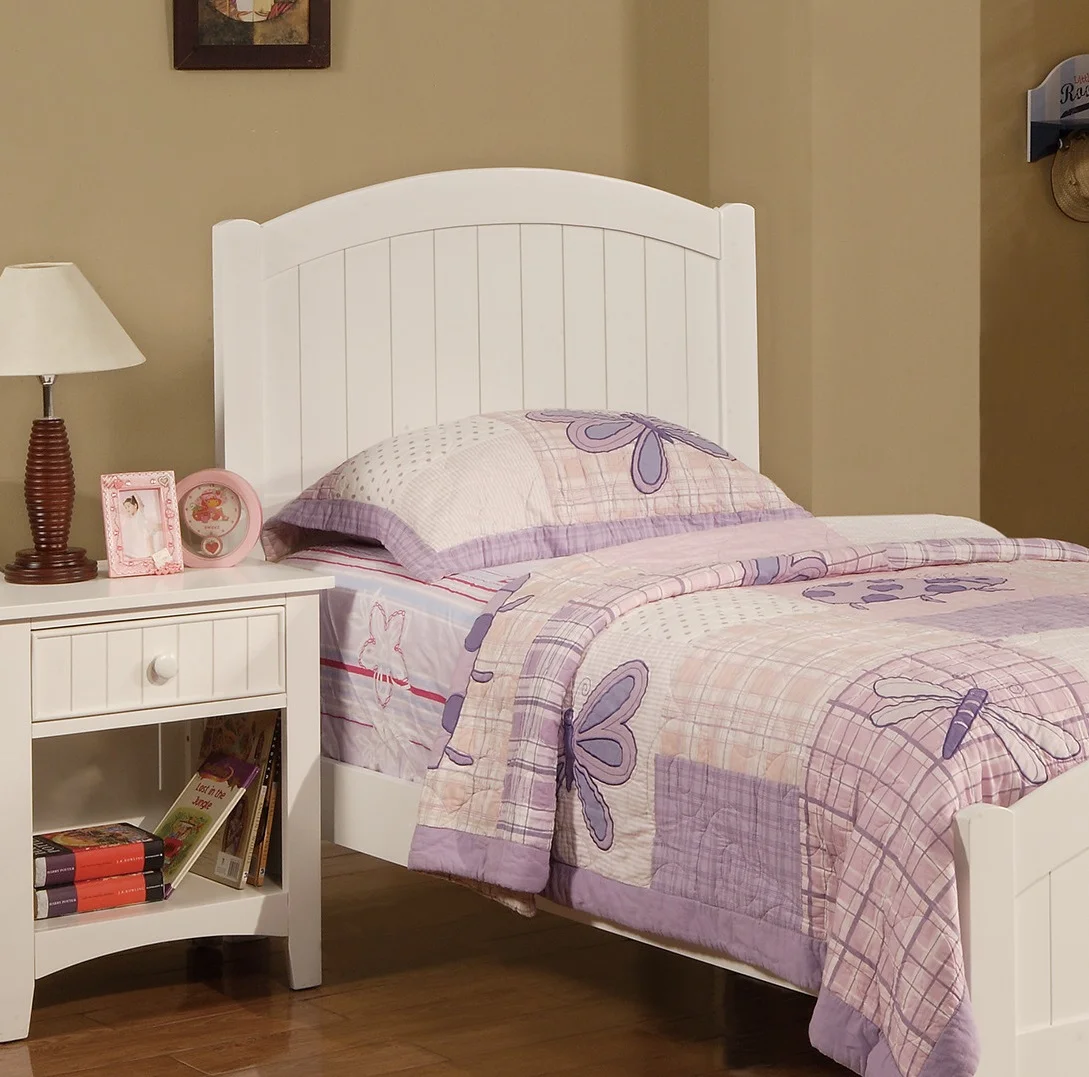 1pc Beautiful White Finish Twin Size Youth Panel Bed Wooden Master Bedroom Furniture