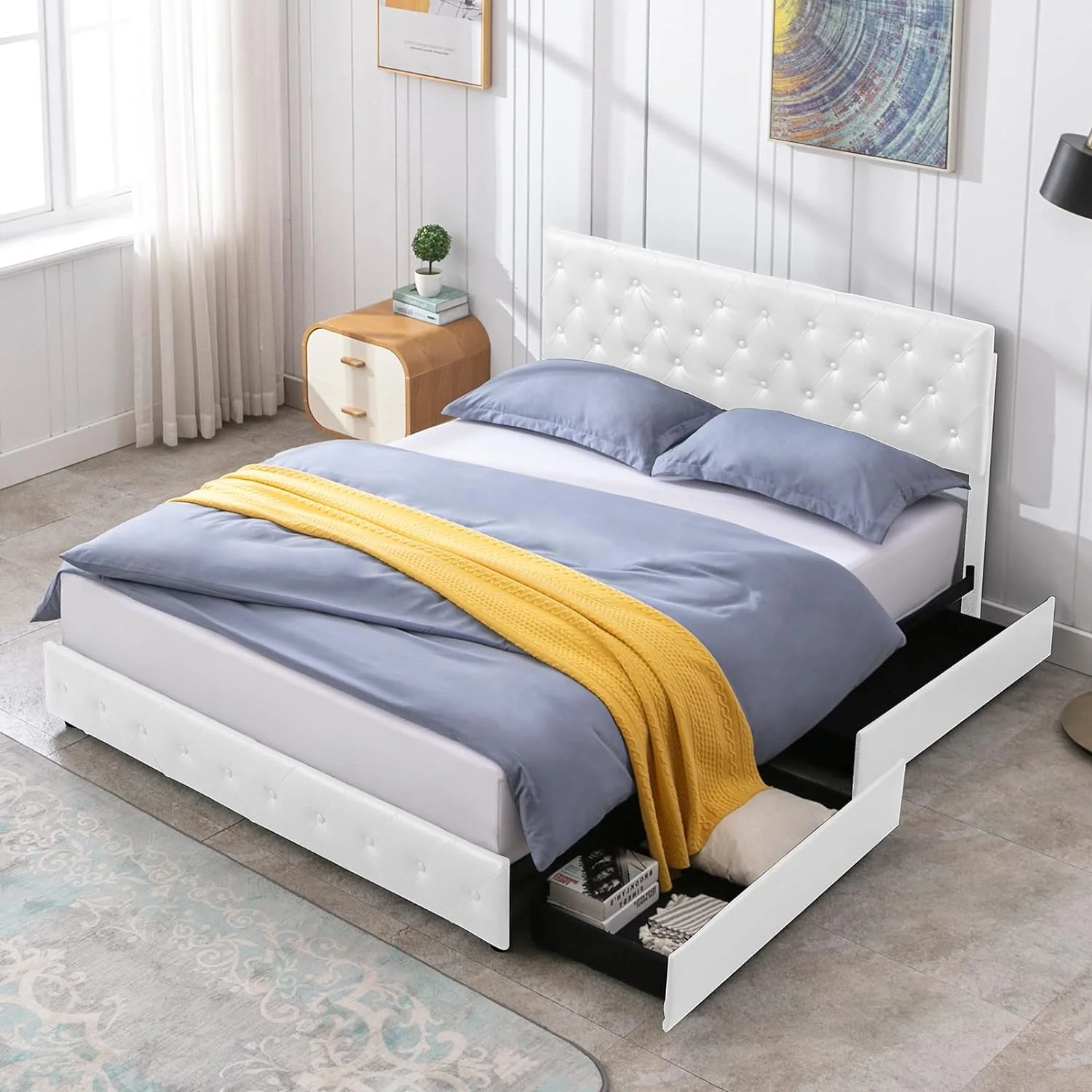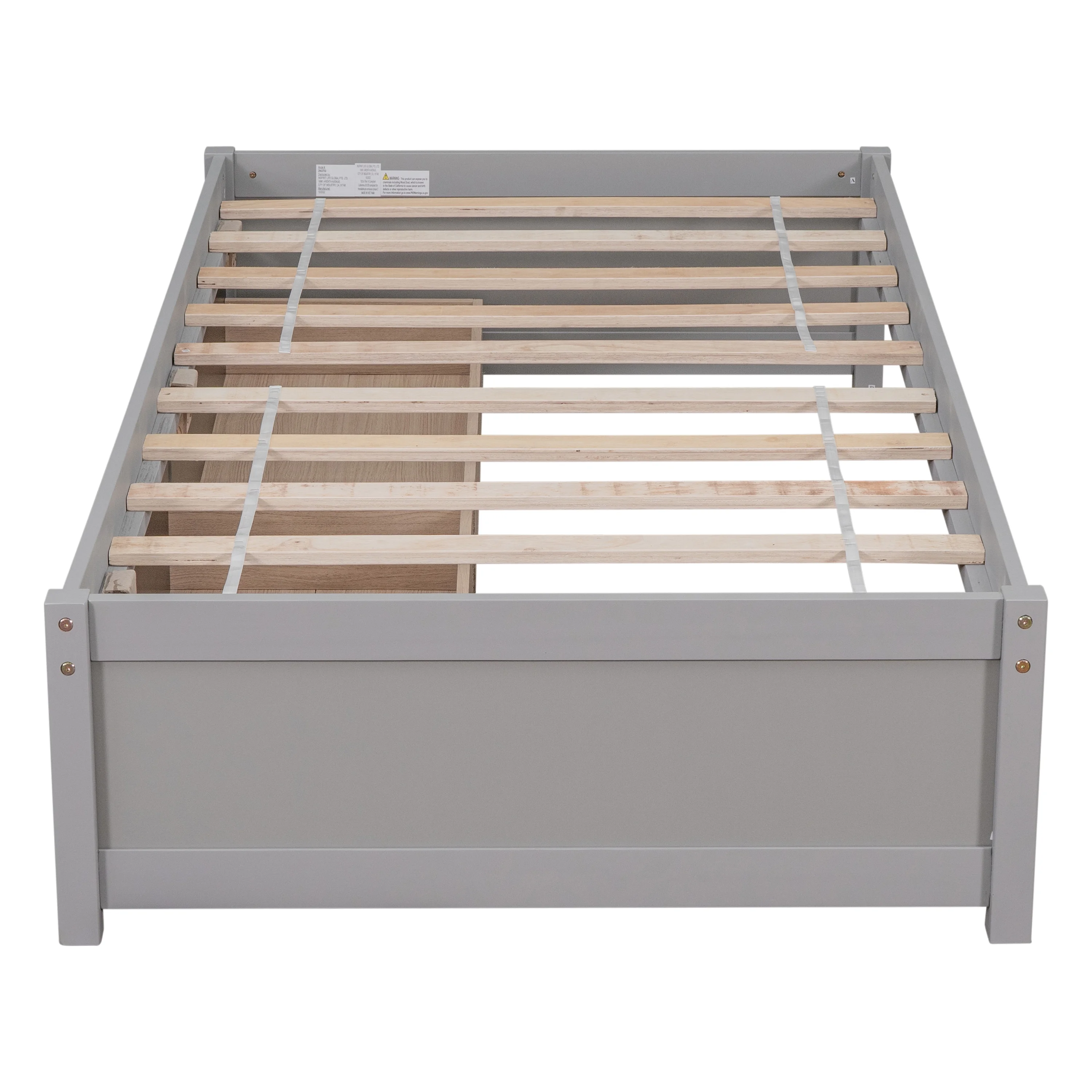 Dcenta Twin Size Bed w/ Trundle Slats White Pine Plywood Kids Youth Bedroom Furniture